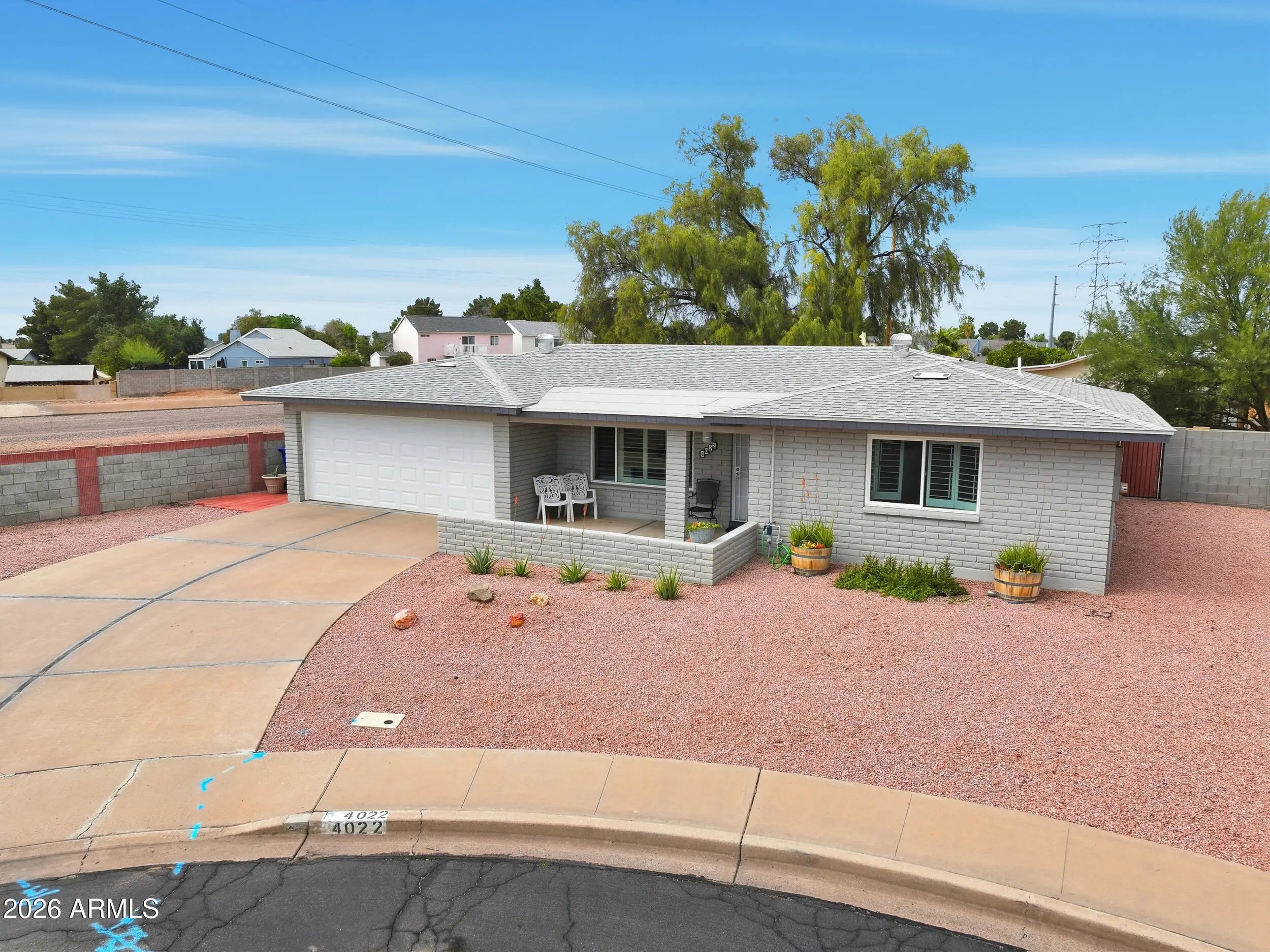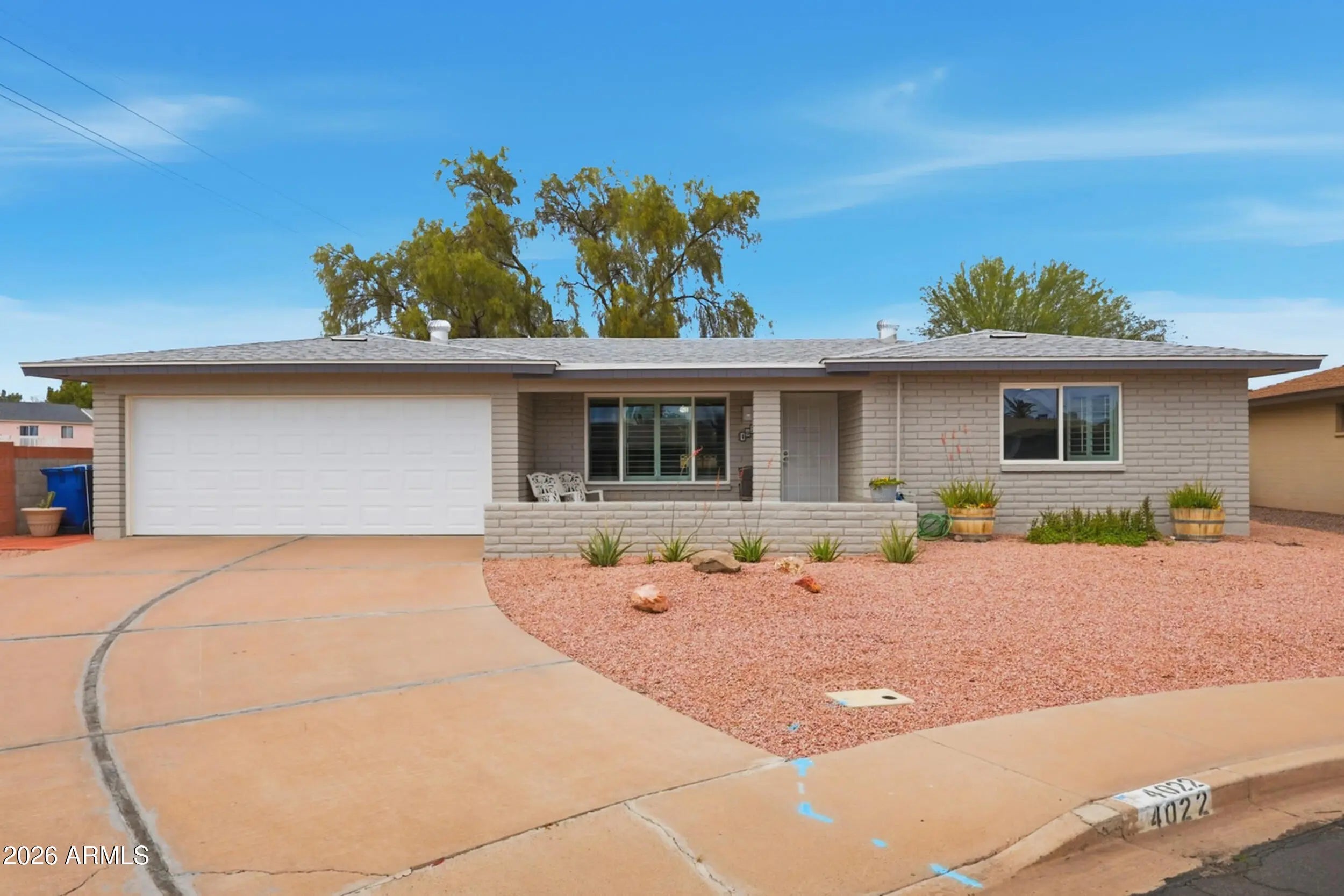 Discover the active lifestyle in Sunland Village, a premier 55+ Golf Community! Situated on a peaceful cul-de-sac, this popular 300 Model offers 2 bedrooms, 2 baths, and a 2-car garage. The home feels fresh and modern with newer interior and exterior paint, recessed lighting, ceiling fans, and dual-pane windows. Enjoy ultimate peace of mind with major updates already complete: Roof (2020), HVAC (2018), and Water Heater (2022). Cook in style with sleek stainless steel appliances, or relax in the spacious Arizona Room, featuring a mini-split for year-round comfort. Step outside to the covered patio where a full block wall ensures total privacy. It is the perfect blend of community fun and a private retreat!