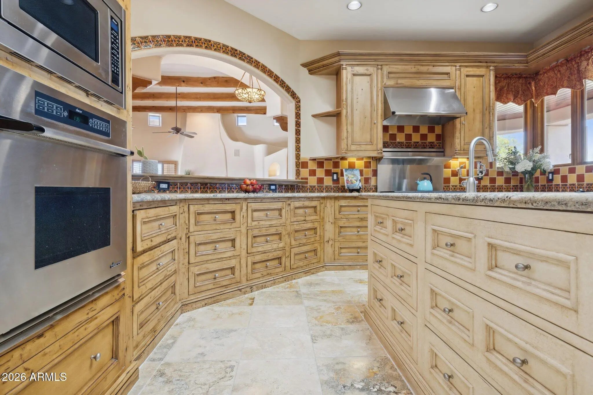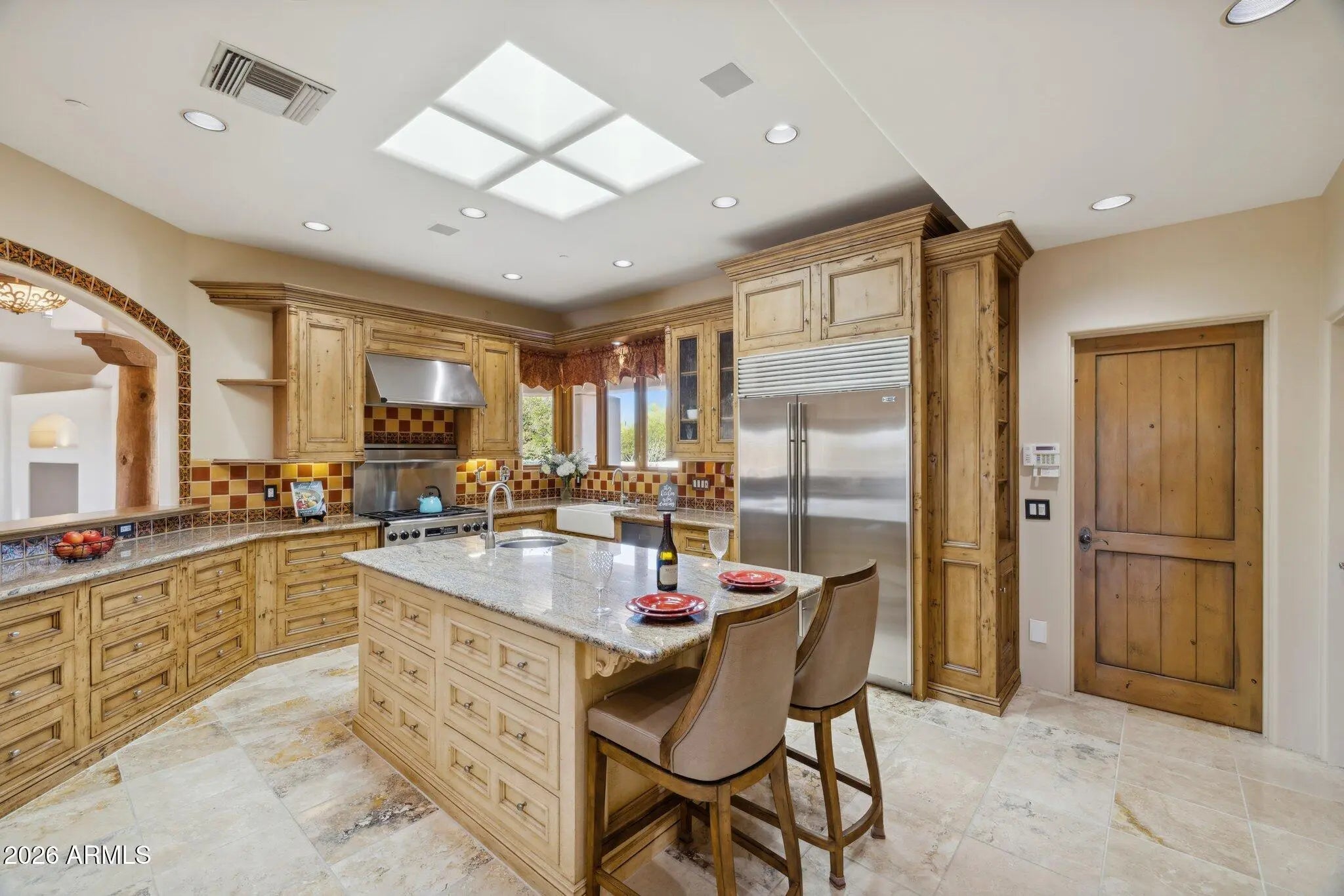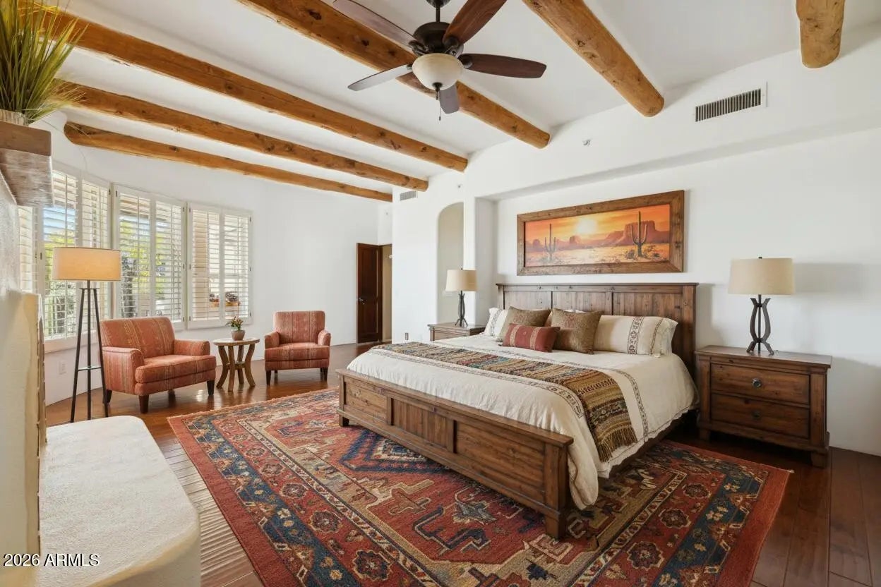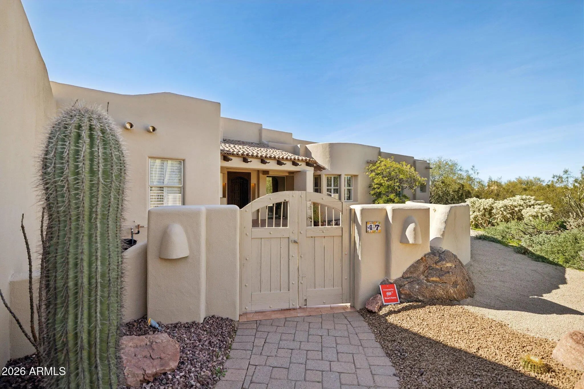 Nestled on an expansive 1.1-acre interior lot within the prestigious guard-gated enclave of Sincuidados, this striking 3,811-square-foot estate redefines luxurious desert living. Sweeping, unobstructed vistas frame the dramatic Southwest landscape from every window, creating a daily spectacle of sunrises, sunsets, and starlit skies that feels like a private nature show. Thoughtfully designed for both comfort and sophistication, the residence offers four generously appointed bedrooms, three and a half bathrooms, and a very private office space. A connecting Zen den links the serenity of the primary suite with the kitchen and main living areas, while a spacious 4 car garage provides room for vehicles, & desert adventure toys. Rich wood & elegant travertine flooring flow throughout infusing each room with a warm, timeless ambiance that beautifully complements the home's authentic Southwest architectural character. The result is a refined yet inviting interior that feels both grand and effortlessly livable with unobstructed views of Lone Mountain with 3 hiking trails. At the heart of the home, the spectacular gourmet chef's kitchen serves as a true culinary sanctuary. Handcrafted Rysso-Peters custom cabinetry, luxurious granite countertops, and a premium stainless steel appliance suite including Sub-Zero, Dacor, and Asko combine high design with everyday functionality. A professional-style six-burner gas range, dual ovens, recessed microwave, and convenient pot filler elevate every meal from simple weeknight dinners to elaborate entertaining. Wine enthusiasts will savor the 90-bottle Sub-Zero wine chiller, seamlessly integrated into the custom cabinetry to create a showpiece worthy of any serious collector. Four distinctive fireplaces, each adorned with artistic tile accents, are thoughtfully positioned throughout the home to encourage intimate gatherings and quiet moments. One graces the expansive primary suite, wrapping the space in soft, ambient glow on cool desert evenings Across the main living areas, these fireplaces add layers of texture, character, and warmth, transforming the residence into a sanctuary that feels uniquely personal in every season. The outdoor living experience is nothing short of resort-caliber, blurring the line between home and private desert retreat. A sparkling pool with tranquil waterfall creates a soothing soundscape, inviting you to lounge, entertain, or simply unwind beneath the open Sonoran sky. An architectural spiral staircase rises to an elevated rooftop deck, where endless desert horizons and vast night skies provide a dramatic backdrop for sunset cocktails, stargazing, or unforgettable evenings with guests. Set within Sincuidados, one of North Scottsdale's most coveted guard-gated communities, residents enjoy a rare blend of privacy, natural beauty, and refined amenities, with expansive one-plus-acre lots, protected Sonoran Desert landscape, community hiking trails, and a clubhouse with tennis and pickleball courts. This is more than a home it is an elevated Southwest lifestyle, seamlessly uniting sophisticated elegance, modern convenience, and the timeless allure of the desert in an extraordinary Sincuidados estate.