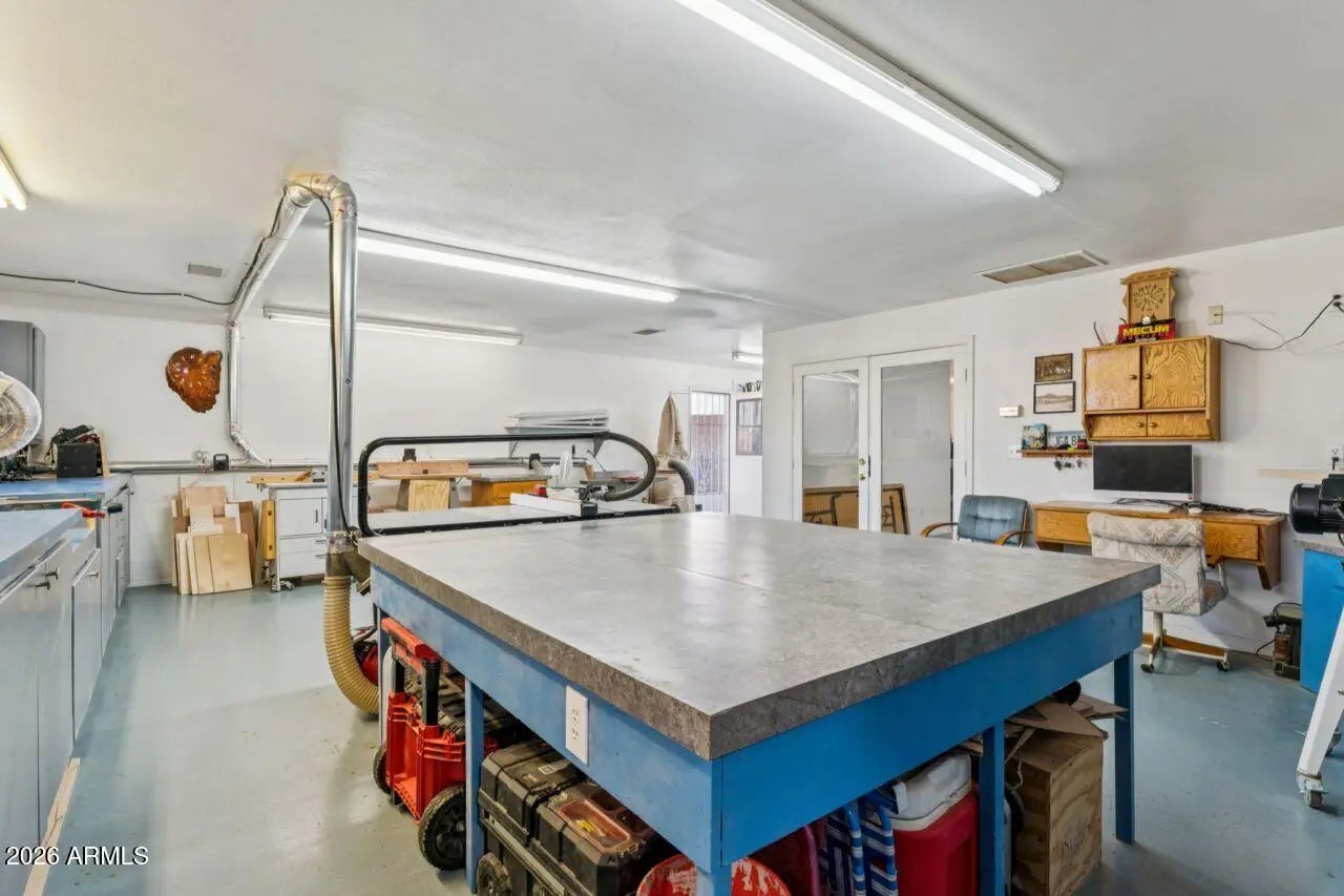 SHOWSTOPPER REMODEL WITH WORKSHOP — A RARE OPPORTUNITY YOU DON'T WANT TO MISS! Welcome to 1038 E Friar Ave, Apache Junction—a truly unique, fully remodeled property offering 2,442 sq. ft. of living space on a ¼-acre lot, designed for comfort, versatility, and craftsmanship. Homes with this level of quality, upgrades, and usable space are rarely available. This exceptional home features 3 bedrooms including TWO primary suites and 4 bathrooms (including the garage bath), ideal for multi-generational living or hosting guests. The 2½-car garage offers added flexibility, with the half bay currently set up as a home gym (equipment included). The interior showcases thoughtful upgrades throughout: fresh interior and exterior paint, a spacious living room and dining area, oak base -boards, solid 6-panel oak doors, and wood blinds in every room. The beautifully remodeled kitchen is both functional and inviting, featuring handcrafted soft-close oak cabinetry, granite countertops, a breakfast bar, eat-in kitchen, and new black stainless steel appliances. PLEASE NOTE: Flooring to be replaced in kitchen, dining, guest bath, office laundry room. Additional square footage was professionally added to the west side and rear of the home, creating a more expansive and functional layout. Major system upgrades provide peace of mind, including new roof (2023), HVAC (2020), two hot water heaters, updated electrical panels and amps, and new soffit and fascia throughout the entire home. One of the standout features is the attached, climate-controlled workshop located behind the garage heated and air-conditioned, making it a true woodworker's dream. Workshop equipment may be purchased separately on a bill of sale, and the space also offers excellent potential for conversion into additional living, hobby, or flex space. The property is fully enclosed by an extra-high block wall, offering privacy and security rarely found. This is a tastefully executed remodel that blends quality craftsmanship with endless possibilities. Once you see this home, you'll fall in love.
