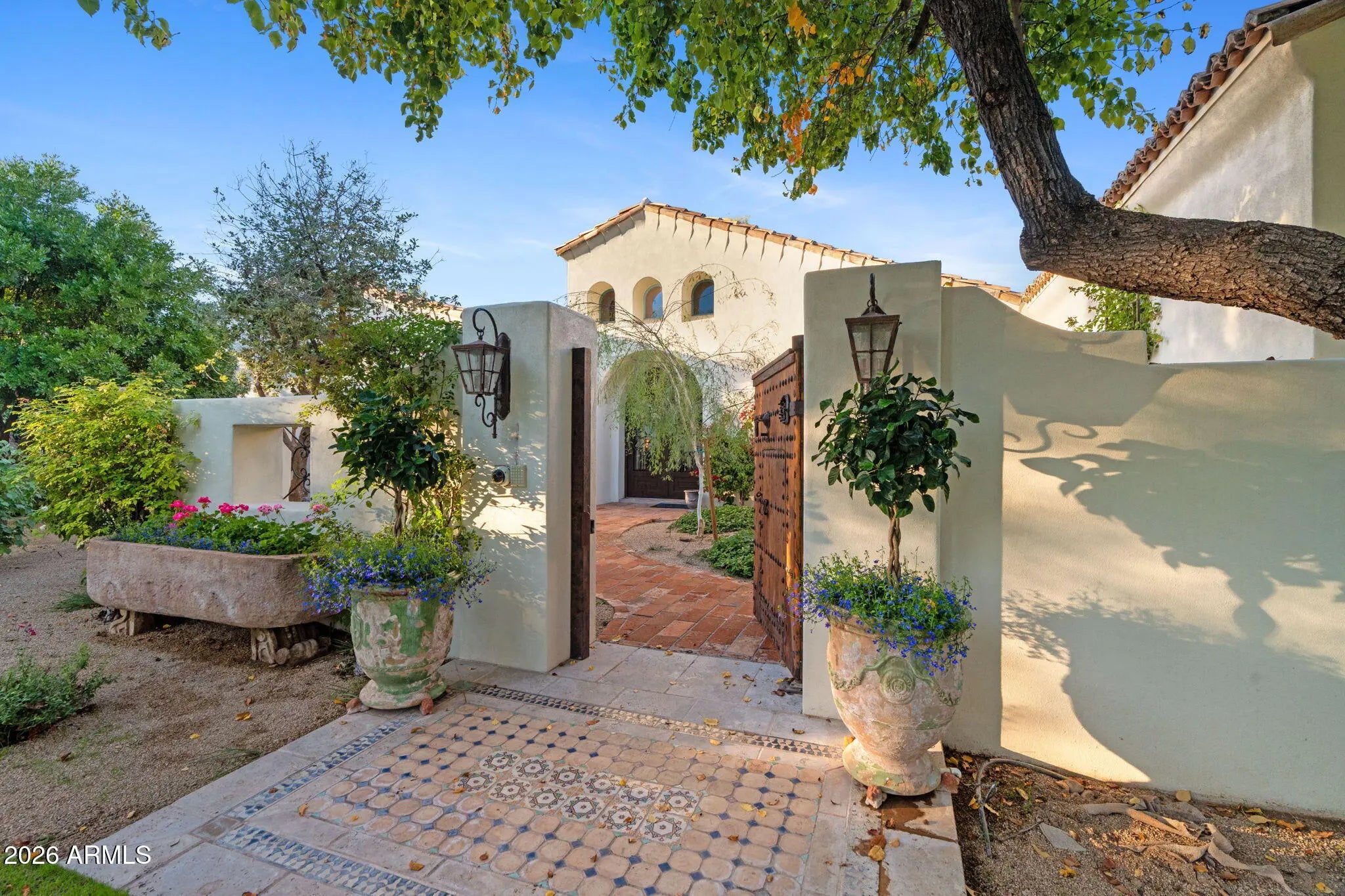 Inspired by the timeless estates of Santa Barbara, this exceptional PV residence sits along the fairways of Cmbk Country Club and was reimagined by renowned architect Catherine Hayes and renovated by GM Hunt. The 5,526 sq ft main home features hand-troweled plaster walls, dramatic beamed ceilings, arched passages, and expansive windows framing golf course views. Elegant living and dining spaces are ideal for entertaining, while a chef's kitchen anchors the home. The residence offers three en-suite bedrooms and a richly appointed office/library w/ custom cabinetry and French doors. A charming 1,196 sq ft two-bedroom guest house with full kitchen mirrors the home's classic style. Lush lawns, rose gardens, and a ramada with outdoor kitchen complete this serene golf course retreat culinary excellence and known to have hosted celebrated chefs. Box-beam ceilings crown the inviting eat-in space, while thoughtful layout and bespoke finishes make it as functional as it is beautiful. The main 5526 sqft residence offers three en-suite bedrooms along with an en-suite office/library, providing both privacy and flexibility. A charming 1,196 sqft, two-bedroom guest house with a full kitchen mirrors the home's Santa Barbara aesthetic and provides an ideal retreat for guests or extended stays. Outdoors, the property unfolds into a series of enchanting garden momentslush lawns, blooming rose gardens, and intimate, secret spaces tucked throughout the grounds. A generous ramada with an outdoor kitchen and fireplace anchors the backyard, perfectly positioned to enjoy the tranquil golf course backdrop. Tucked away on a quiet, private street with no road noise, the setting offers exceptional privacy and serenity. This is a soulful, elegant estate where craftsmanship, warmth, and setting come together in perfect harmonyan extraordinary opportunity on one of Camelback's most coveted streets.