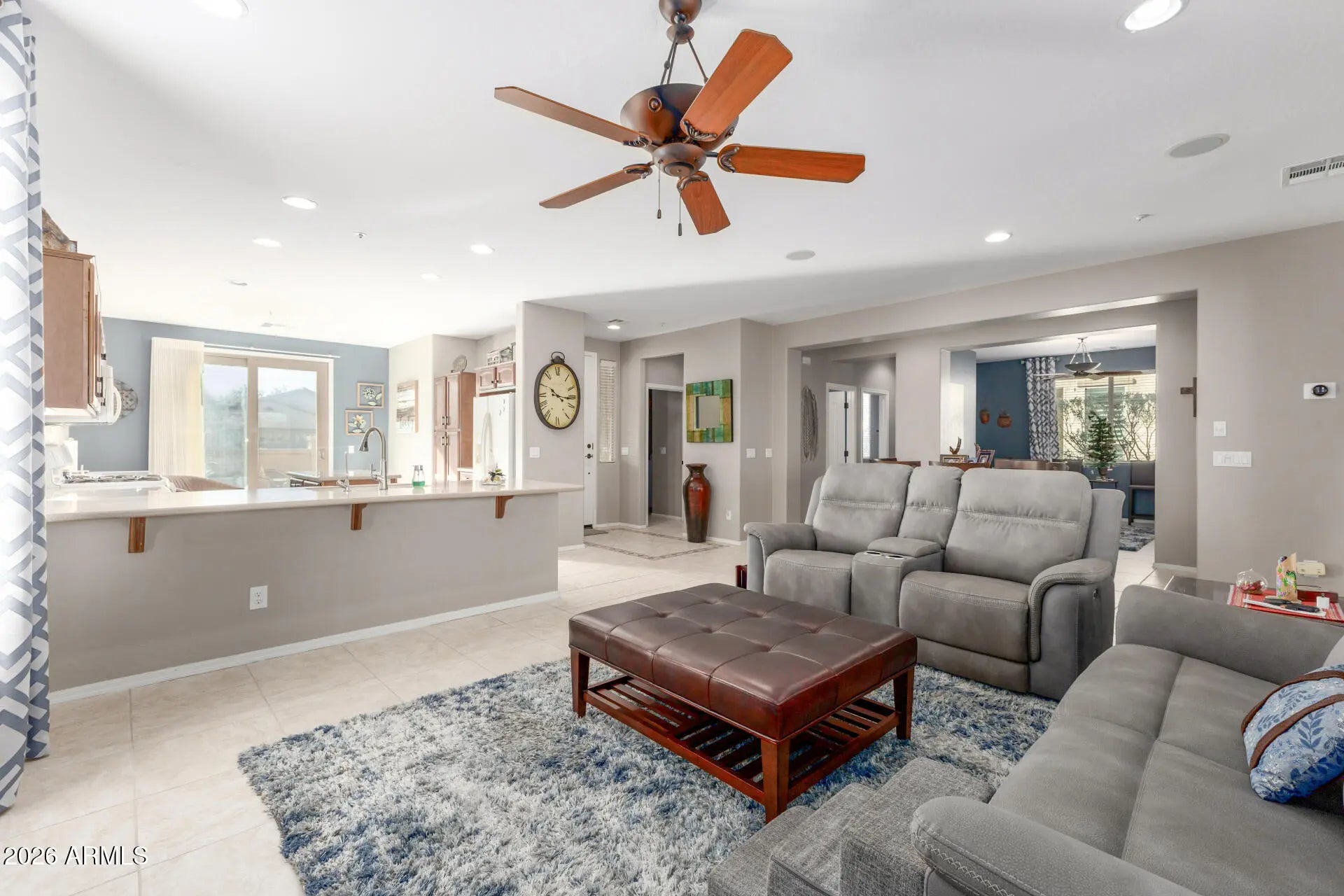 This beautiful 2-bedroom, 2-bath home w/ a versatile den/office offers a spacious greatroom floorplan filled w/ natural light. Featuring tile in all the right places & ceiling fans throughout, the home welcomes you through a charming courtyard w/ direct access to the breakfast nook. The eat-in island kitchen has a gas range, under-cabinet lighting, breakfast bar & pantry. The owner's suite provides a peaceful retreat w/ a linen press, dual vanity, spacious shower & walk-in closet. Outside, enjoy a low-maintenance rear yard w/ large covered patio. Practical upgrades include a water softener, RO system & newer HVAC. Furnishings are also available! Located in the premier Trilogy resort community, you'll enjoy elite amenities inc. shopping, dining & entertainment. Welcome home!