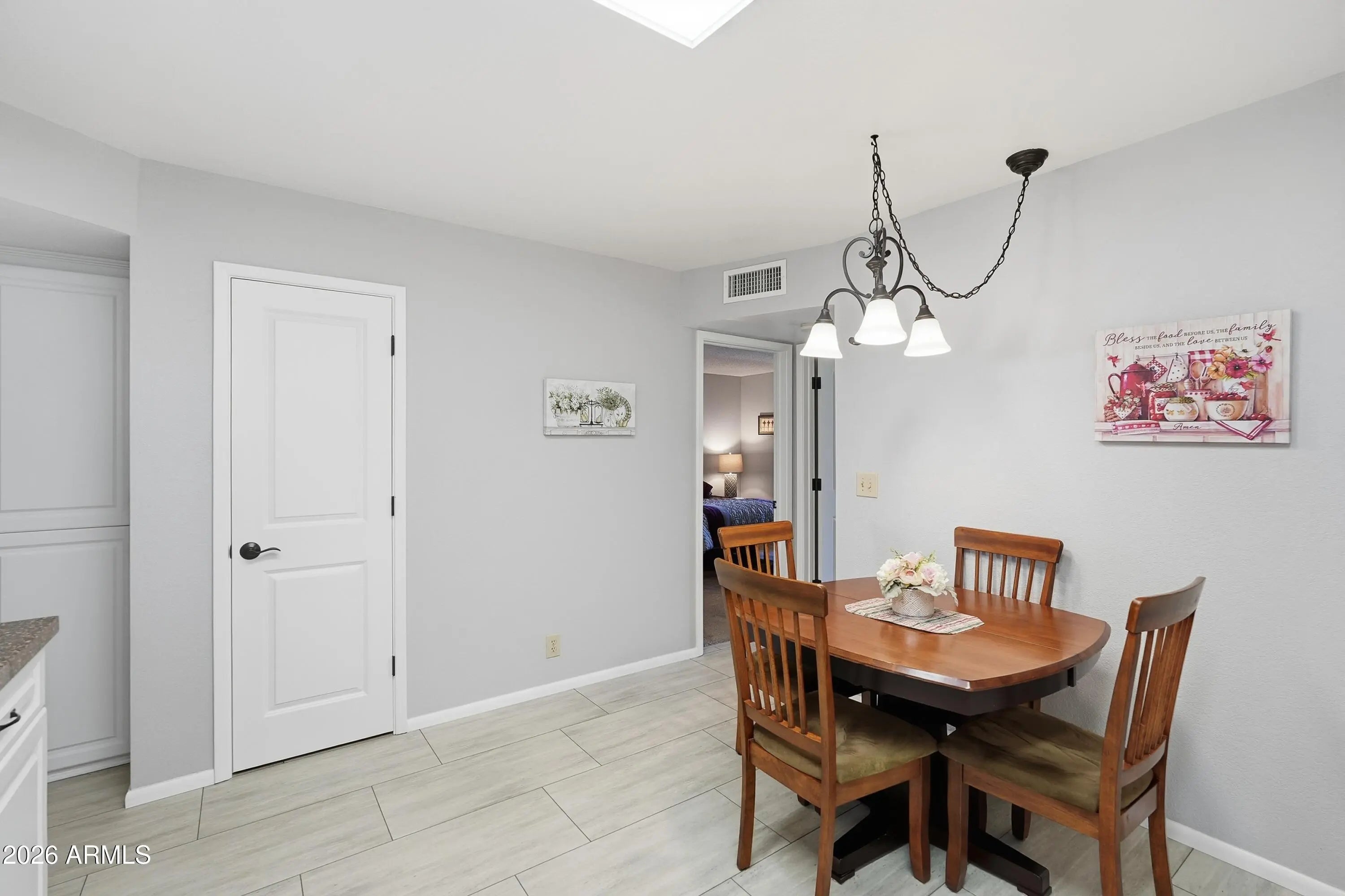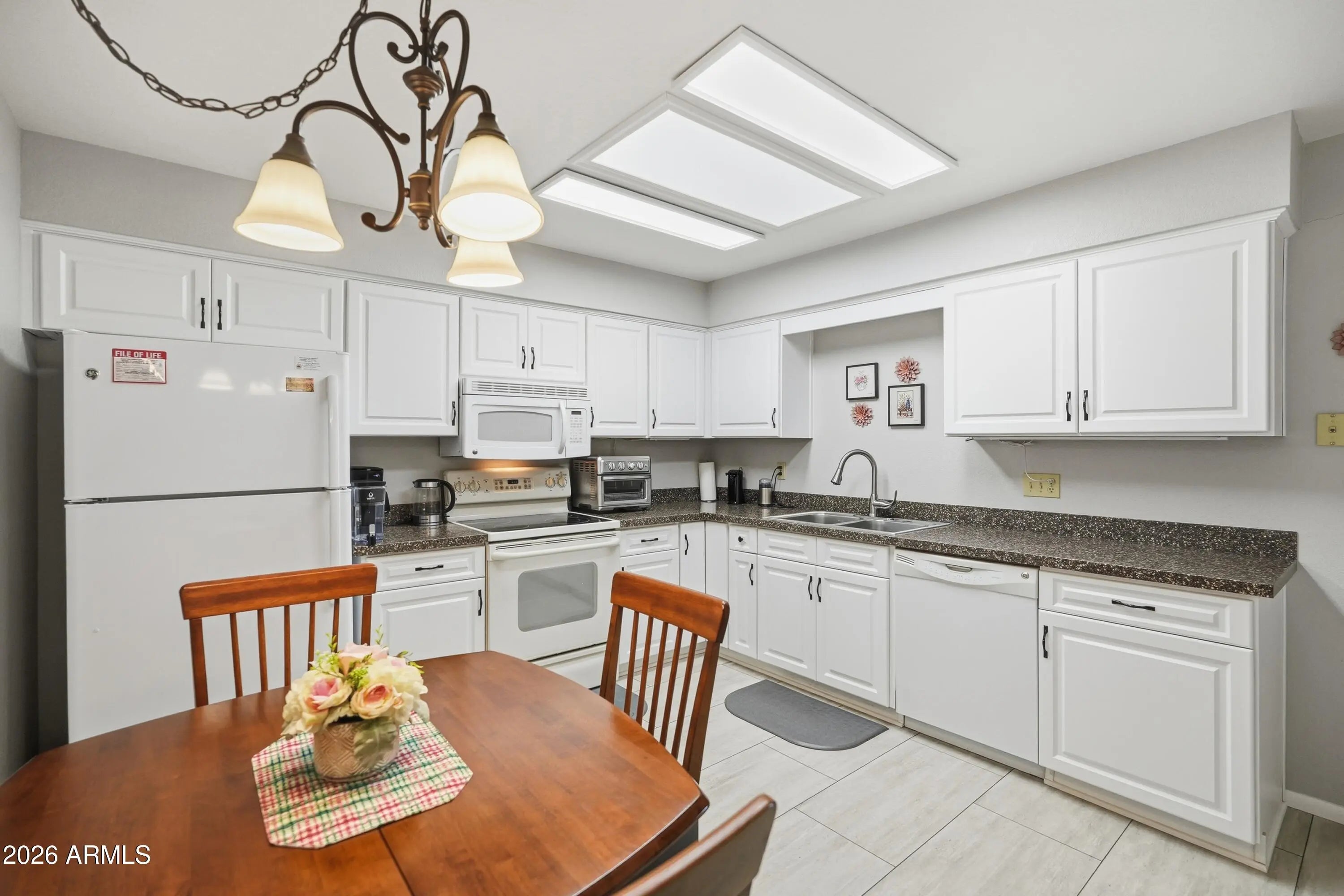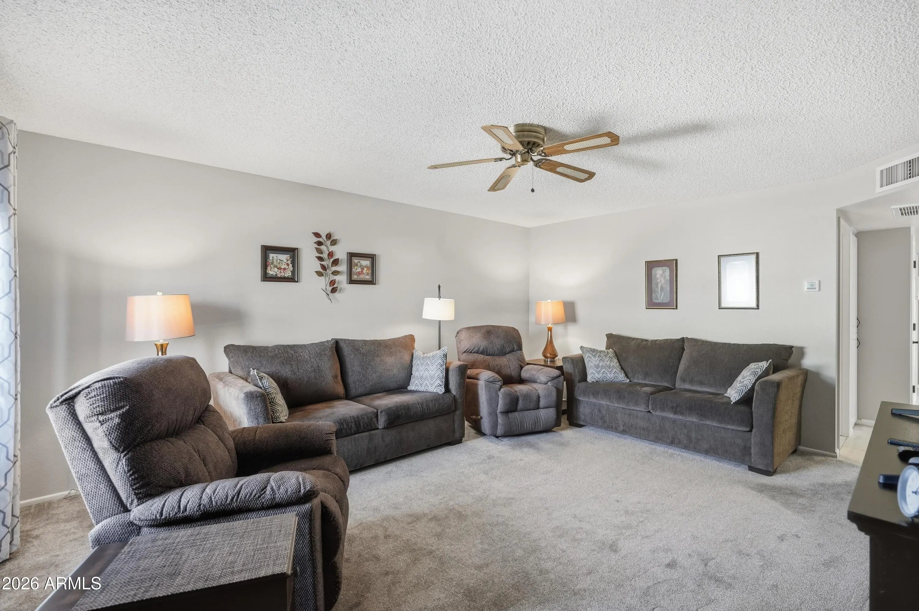 Just bring your toothbrush! This updated, fully furnished 2-bedroom, 2-bath condo is the perfect opportunity to enjoy the lock-and-leave Arizona lifestyle. Start your mornings with coffee on the charming north-facing front patio and unwind in the afternoons on the spacious, private south-facing back patio with views of the lush grassy common area—ideal for relaxing or outdoor dining. Inside, the bright and open living room flows seamlessly into the kitchen, which features an eat-in dining area for casual meals. The primary suite offers a private bathroom with walk-in shower and a generous walk-in closet. The versatile second room is currently set up as a multi-use space with a Murphy bed, office area, and closet, making it ideal as a guest room, home office, or second bedroom. This room opens directly to the sunny back patio, enhancing indoor-outdoor living. Washer, dryer, appliances and all furniture stay with the condo; it's all ready for you and making it easy to enjoy the SVE Life. Located in Sunland Village East, residents enjoy low annual HOA fees and an abundance of amenities truly an adult playground. Please note: the association does not allow pets.