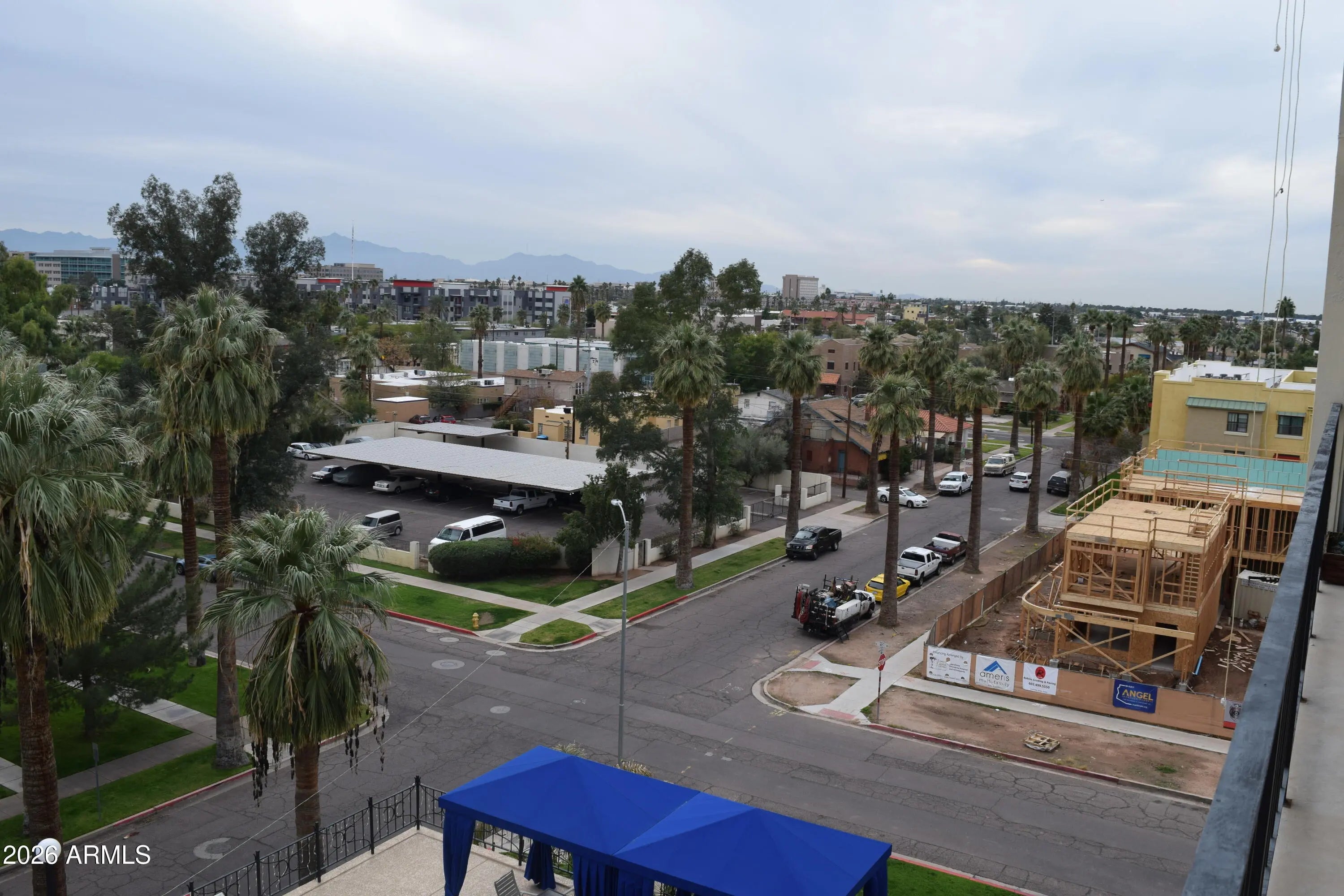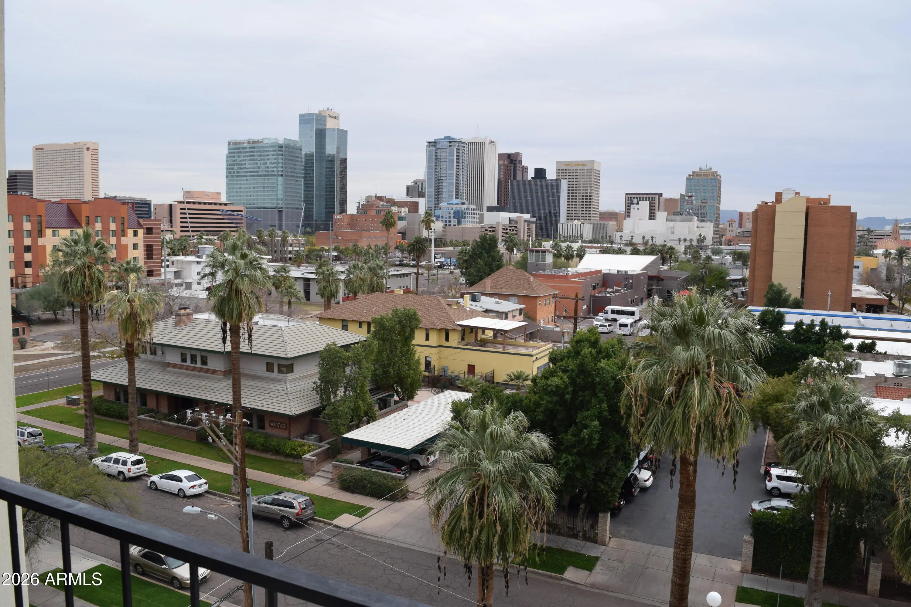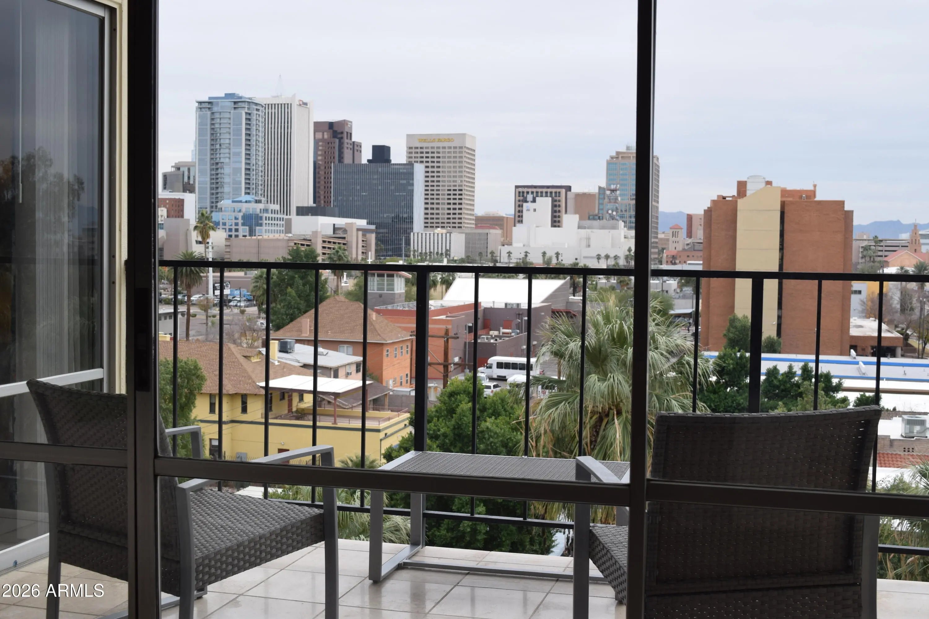 Stunning views in this 6th floor condo overlooking the pool below. Roosevelt historic district is one of the hottest neighborhoods in central Phoenix. The open floor plan is ''Loft style'' with no walls separating the living area from the bedroom. IT IS NOT A STUDIO. Travertine floors thru-out, full travertine shower, upgraded bath fixtures, granite counters and European style cabinets. Two-tone paint, upgraded light fixtures and all LED lighting TV swivels to bedroom Truly a turn-key residence for full time or ''lock-n-leave''.Watch the planes go to and from Sky Harbor and listen to the church bells on Sunday morning from your balcony. No other mid-century hi-rise like this in downtown. Furniture avail at no additional cost. Includes 1 covered parking space. Value priced for quick sale.