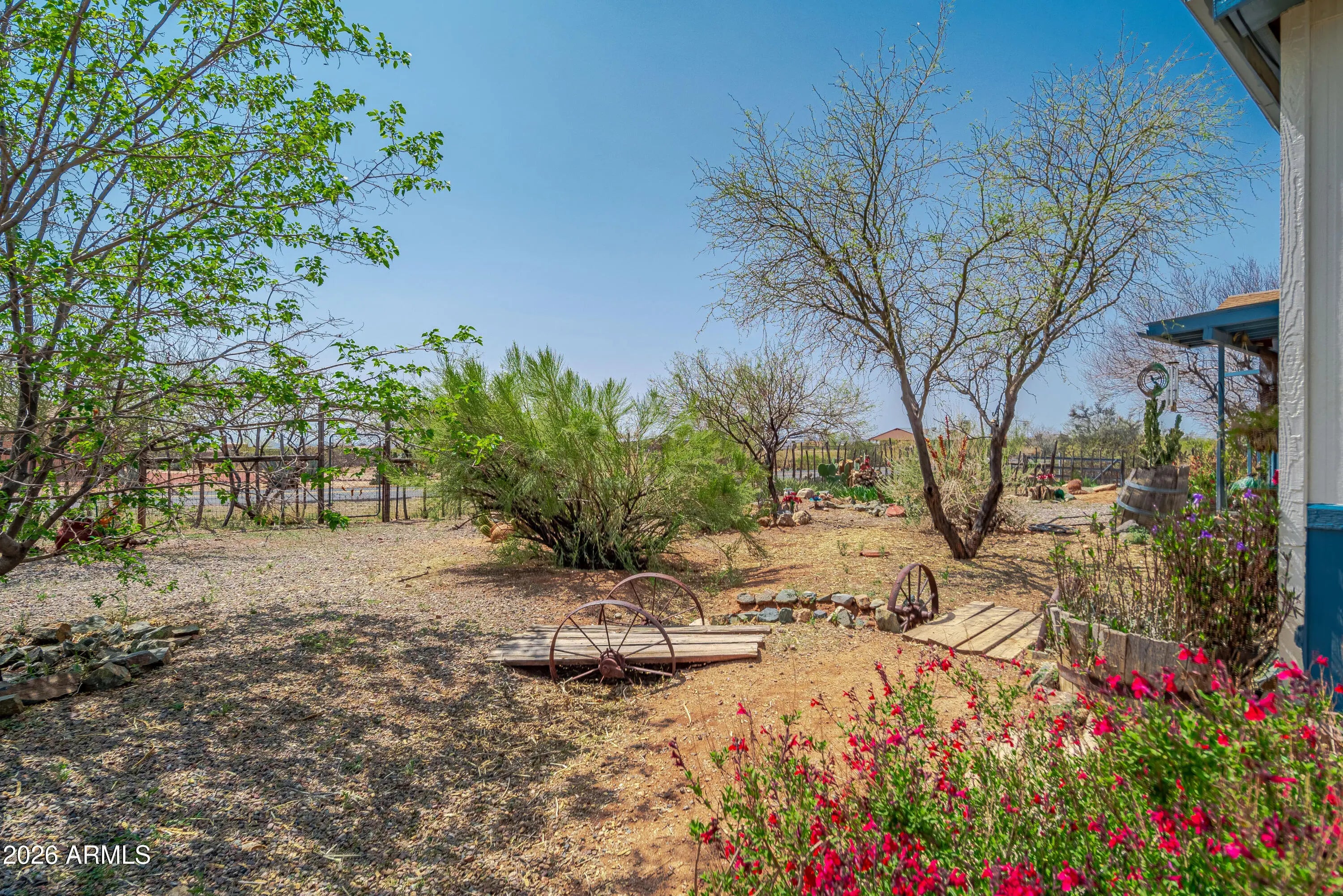 Two homes for the price of one!. 3 bed(1783sqft). Welcome to a Gardener's Haven! Vaulted ceilings bring comfort to your living rm & family rm, complete w/ fireplace. The kitchen is set up w/ island, new cabinets, & the right amount of charm. Enjoy an office or craft room & relax on covered porches. The master suite includes a step-in shower w/ a garden tub. A split floor plan. Outdoor enthusiasts will love the raised garden beds, grapevines, & fruit trees. Dual entrances, dual carports, & owned solar add convenience. Plus, four storage units provide ample space. Owned Solar. Experience the perfect blend of comfort w/ nature in this serene retreat—ideal for gardeners & those seeking tranquility. This property is complemented by a separate 1/1-Casita (441sqft, propane).