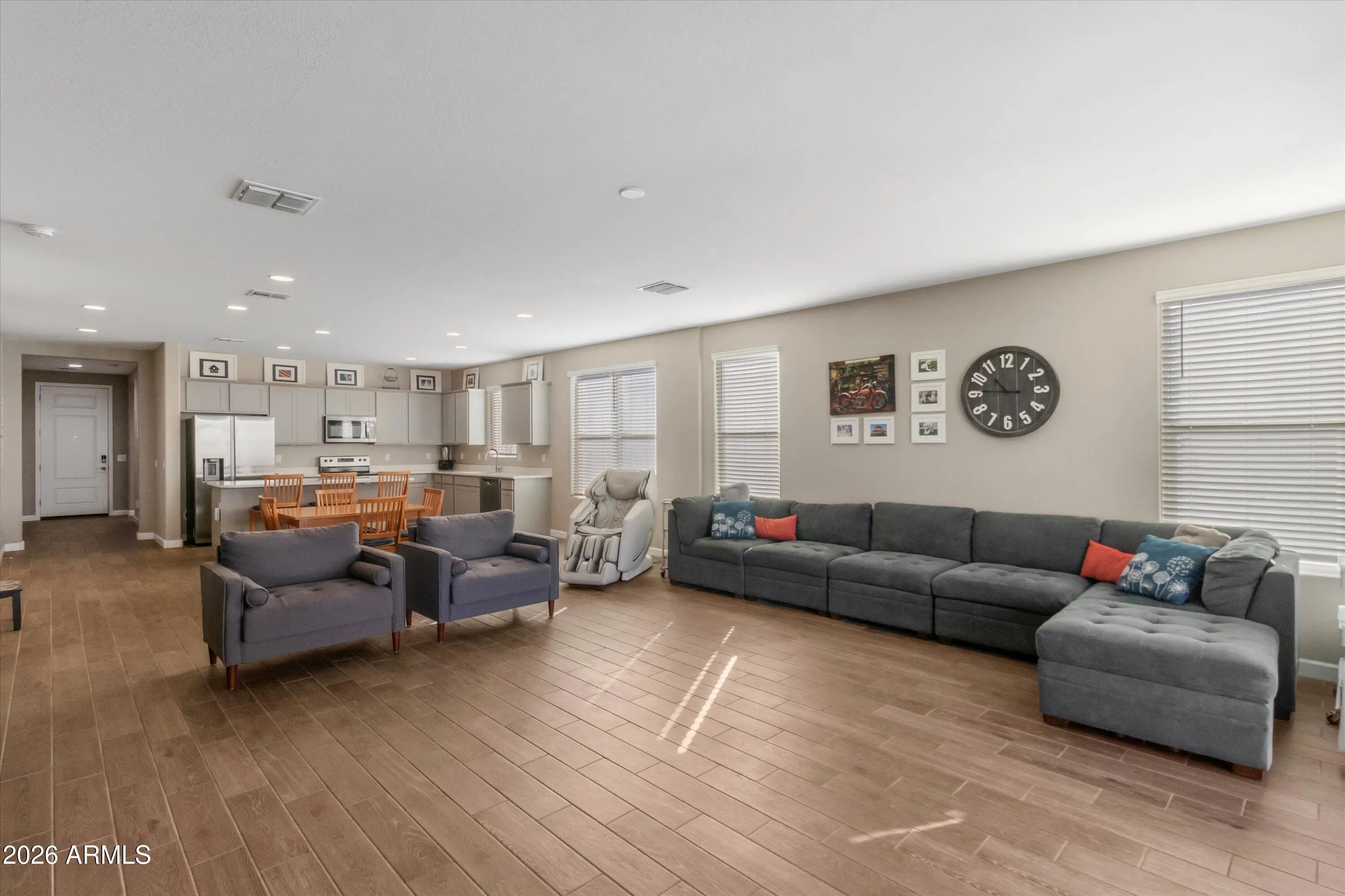 Construction completed in early 2022, this well-maintained 3-bedroom, 2.5-bath home offers 2,050 sq ft of modern, functional living space. The open-concept layout is filled with natural light and designed for everyday comfort and easy entertaining. A true highlight is the finished backyard with low-maintenance turf and pavers, perfect for relaxing or hosting, and already complete for the next owner to enjoy. The 3-car tandem garage provides added storage or flexible space for vehicles, hobbies, or a home gym. Contemporary finishes, energy-efficient construction, and thoughtful design throughout make this home truly move-in ready in a growing Laveen community.
