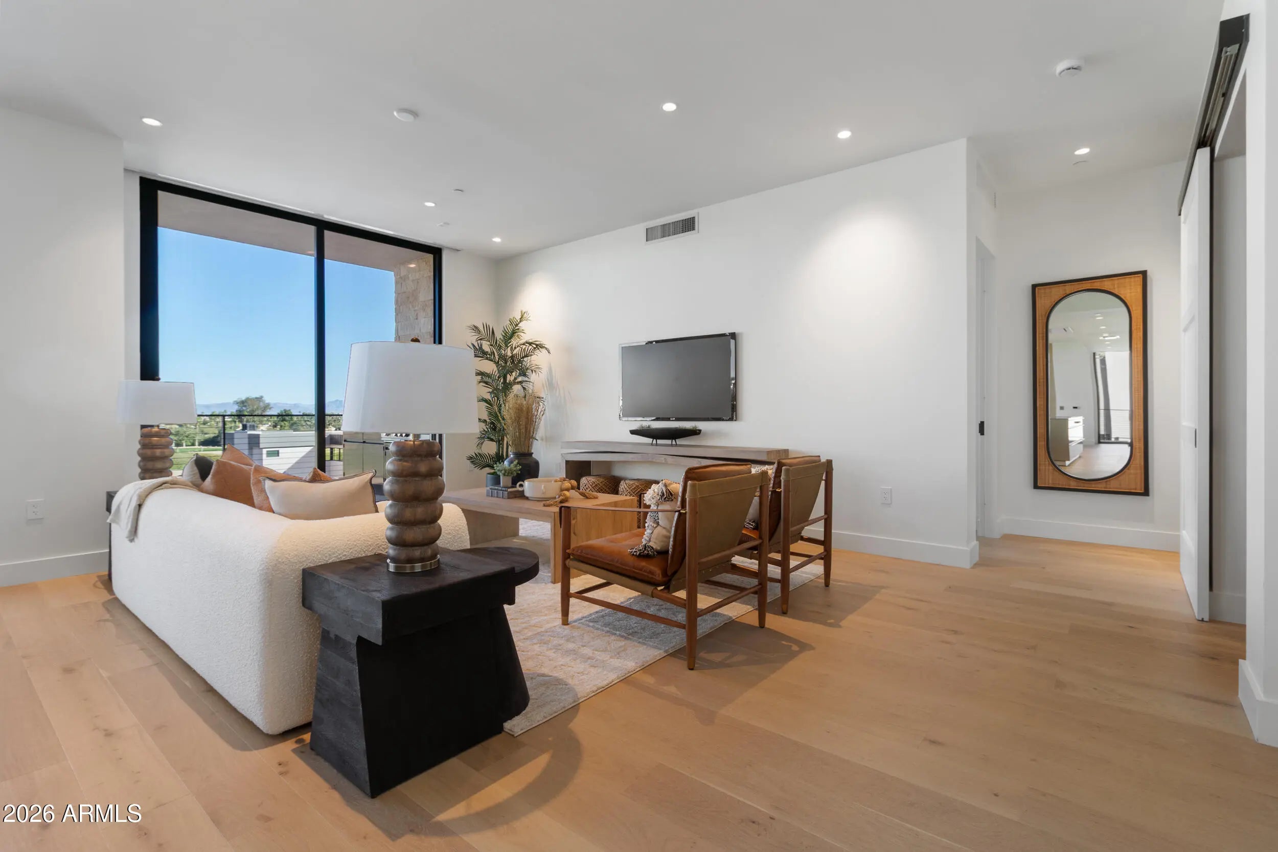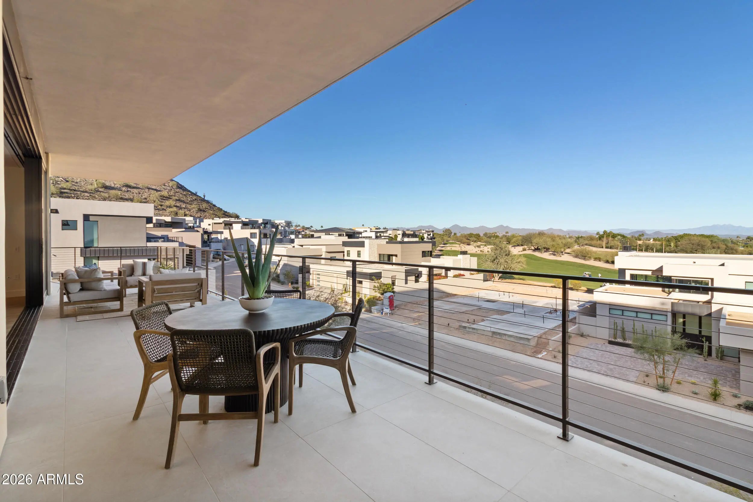 Set against the dramatic backdrop of Camelback Mountain, with expansive views of the McDowell Mountains, discover a private residential enclave adjacent to The Phoenician Resort—one of Arizona's most celebrated luxury destinations. Welcome to The Ascent Camelback Residences. Designed by Nelson Architects and Vallone Interior Design, this home is defined by its 1,100 sq. ft. east-facing wraparound terrace, where sweeping 180° mountain views elevate Arizona indoor/outdoor living to its highest expression. Spanning 3,141 sq. ft. of living space, the residence offers 3 bedrooms, an office/den, and 4 baths, showcasing the finest finishes, including Bulthaup kitchens, Provenza wood floors, Sub-Zero and Wolf appliances, Waterworks fixtures and automated Lutron shades. Soaring 10-foot ceilings and multi-slide telescoping glass doors that seamlessly extend the indoor living space, create an effortless connection to the wraparound terrace, complete with a built-in BBQ and breathtaking mountain vistas. Residents enjoy private, owner-exclusive access to The Mountain Club, a private retreat featuring a resort-style pool, state-of-the-art fitness center, and elegant social spaces, along with optional privileges at the Phoenician Resort's renowned golf, spa, and dining venues. Together, these offerings create a premier luxury lifestyle immersed in Scottsdale's vibrant dining and entertainment experience.