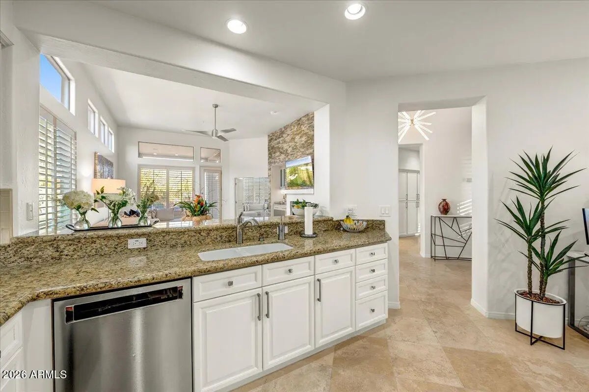 Welcome to Terravita, a premier Golf Course Community in Scottsdale! Beyond the 24-hour guard gate, you'll find world-class amenities-a state of the art fitness center, Tennis & Pickle Ball courts, an incredible restaurant, with a vibrant calendar of events. This stunning turnkey fully renovated home has 2 bedrooms plus den with expansive golf course views, a sparkling pool, 2 car garage. The eat in kitchen and laundry room complete the picture of comfort. It's not just a home; it's a lifestyle in a splendid community.