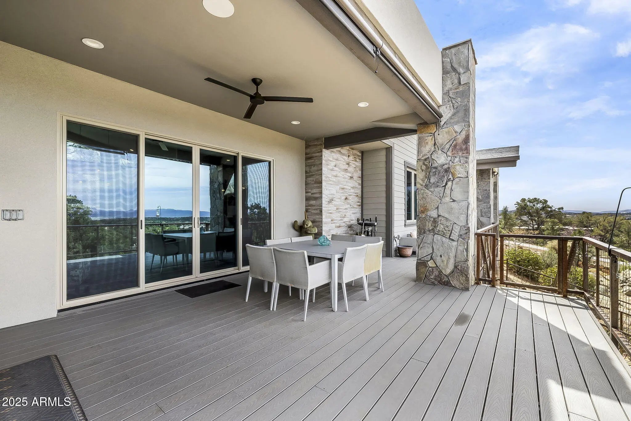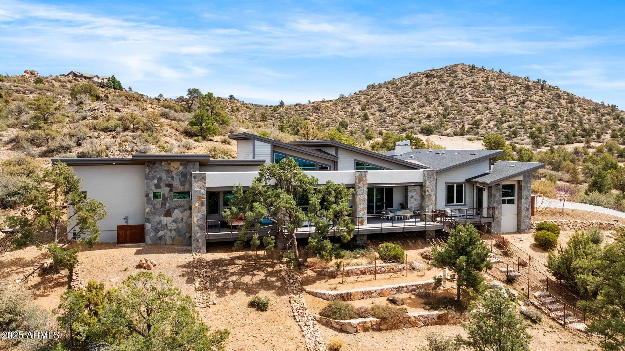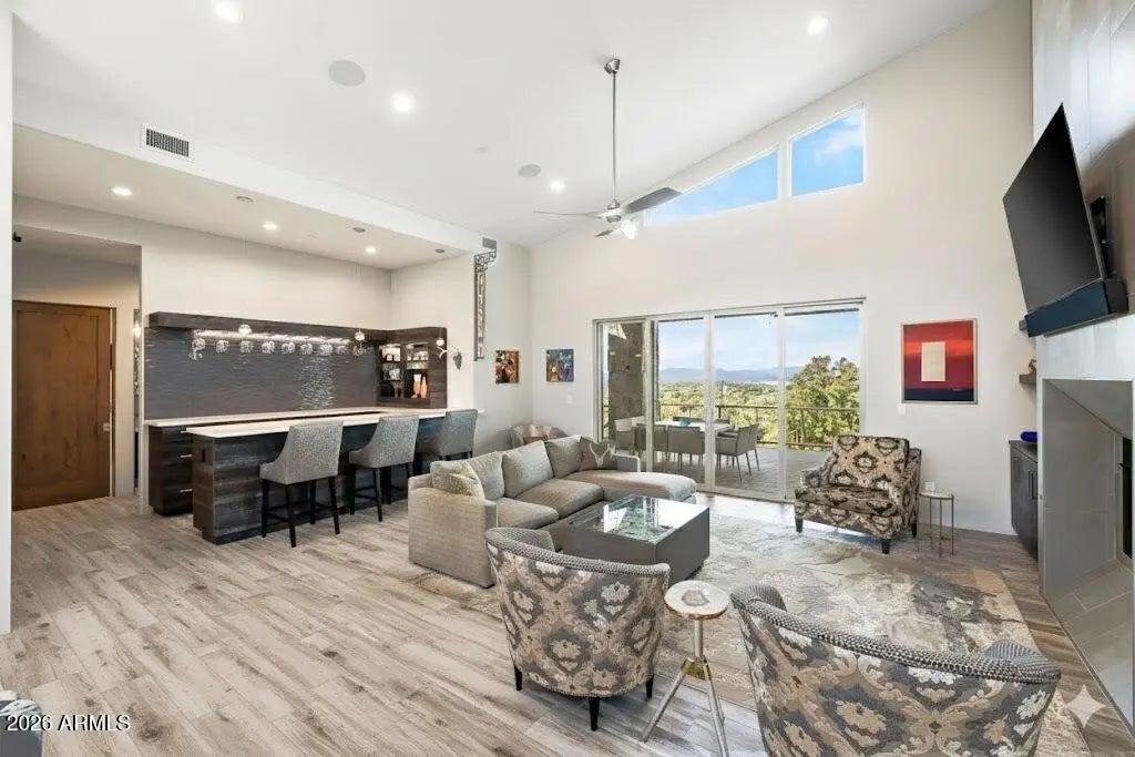 Price Improved to $2,900,000! - Offering an unmatched value in the heart of Talking Rock Ranch of Prescott! Full Social membership available to buyer. This modern sanctuary is a celebration of glass, light, and geometry, specifically oriented to capture a spectacular 180-degree mountain views and golf views! Uniquely curated Luxury Interiors; Modern Aesthetic: Sharp lines and soaring ceilings are grounded by cool porcelain floors and anchored by a striking dual-sided hearth; Epicurean Hub: A sleek, high-performance kitchen boasting a professional Thermador suite, waterfall quartz surfaces, and bespoke cabinetry; The massive sky-deck functions as an outdoor living room, featuring a granite-top social bar & integrated audio--all while floating above the fenced play, pet & picnic area! Offering Refined Social Spaces: A lounge-style wet bar with wine refrigeration and integrated art lighting sets the stage for sophisticated gatherings; Experience a masterclass estate of contemporary architecture, secluded on a prime 2.47-acre hillside within Prescott's most exclusive guard-gated enclave. The expansive lot ensures total tranquility, including a private, fenced pet retreat **The Lifestyle: Life in this Troon-managed community offers unparalleled leisure: including championship golf, swimming pool & spa, exceptional fitness facility, pickleball/tennis, hiking trails and fine dining. This is a rare opportunity to own a modern work of art in a high mountain desert paradise.