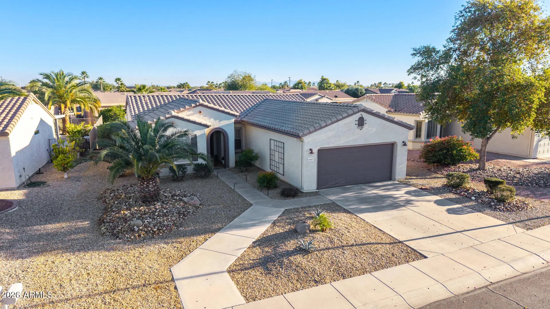 Welcome to this beautifully maintained Cypress model home in the desirable 55+ Sun City Grand community of Surprise. This inviting residence offers a functional open layout filled with natural light, creating a comfortable space for both everyday living and entertaining. The kitchen flows seamlessly into the main living areas and provides ample cabinetry and counter space. Bedrooms are generously sized, with a primary suite that offers privacy and comfort. Enjoy Arizona living outdoors with a low-maintenance yard perfect for relaxing or entertaining. Conveniently located near shopping, dining, parks, and Sun City Grand's renowned community amenities, this home combines comfort, convenience, and value in a sought-after neighborhood. Don't miss this wonderful opportunity to own in Sun City Grand