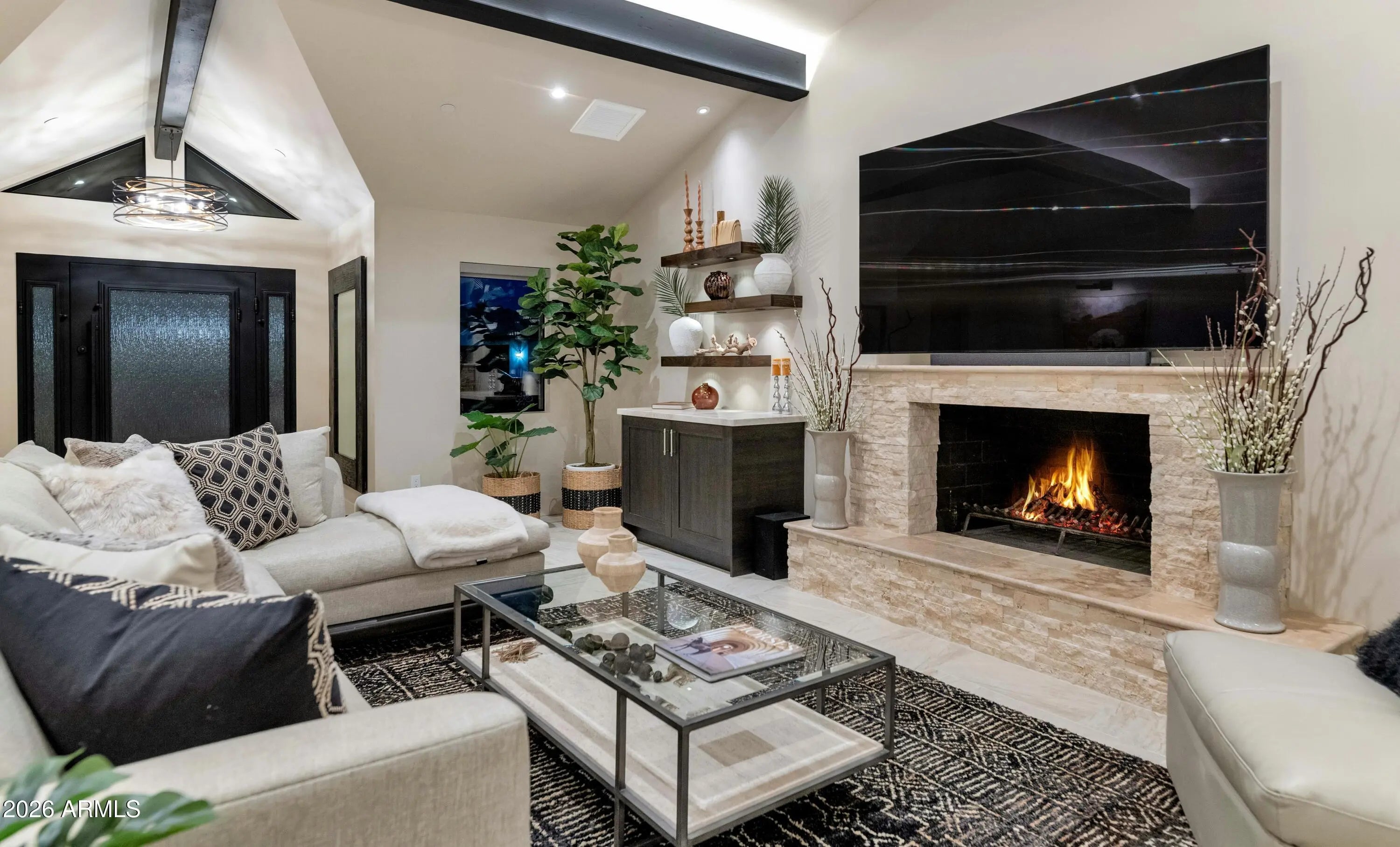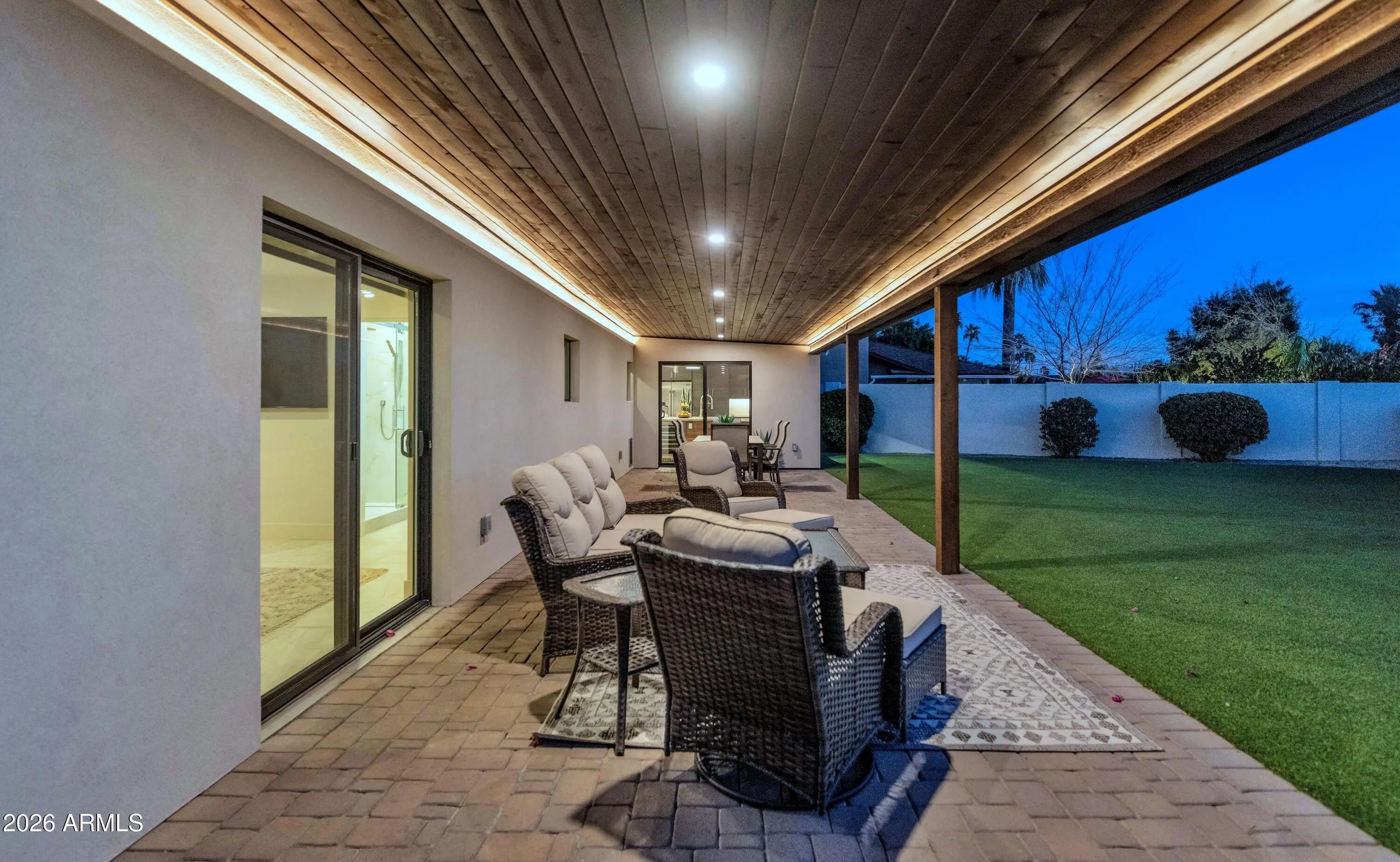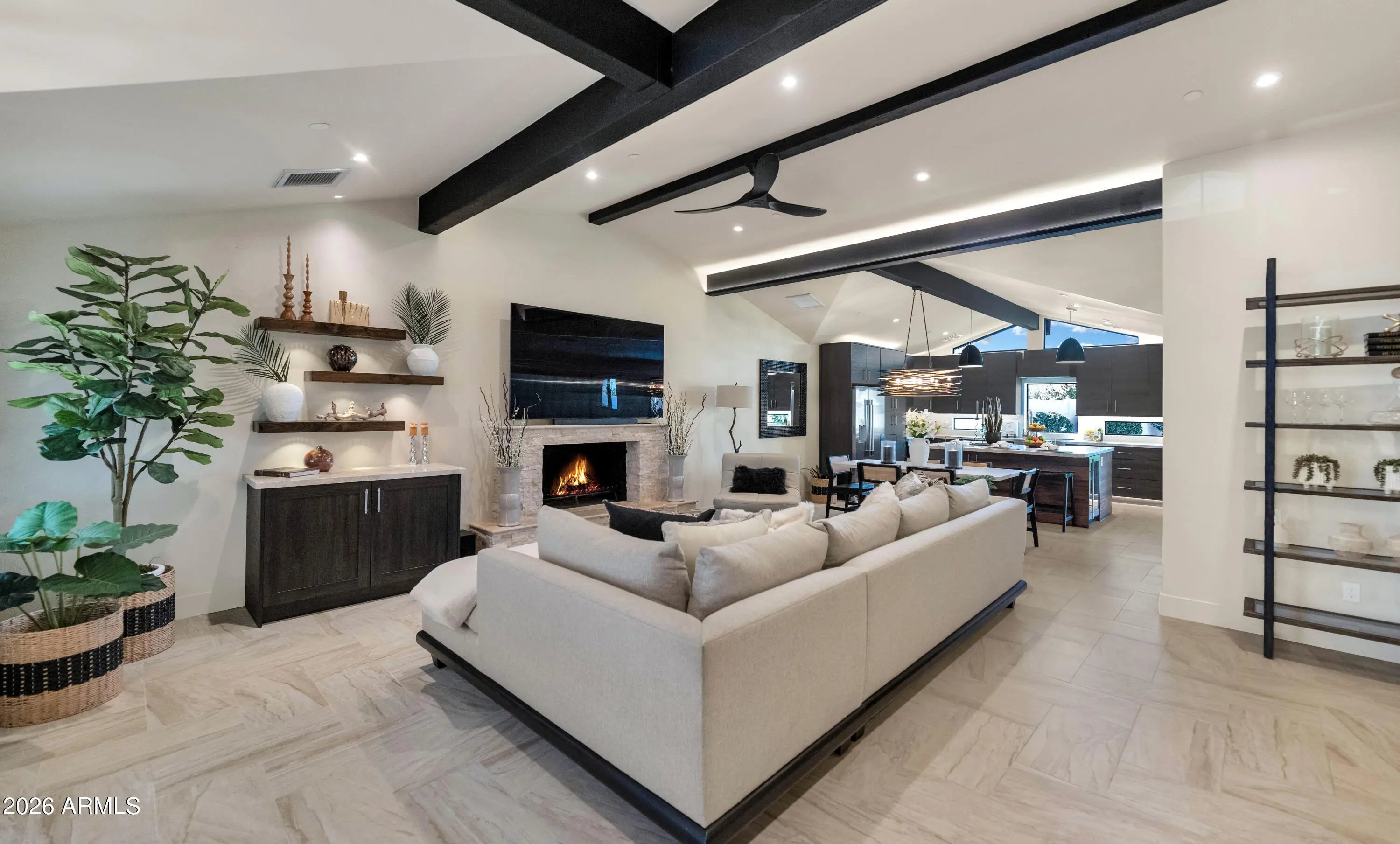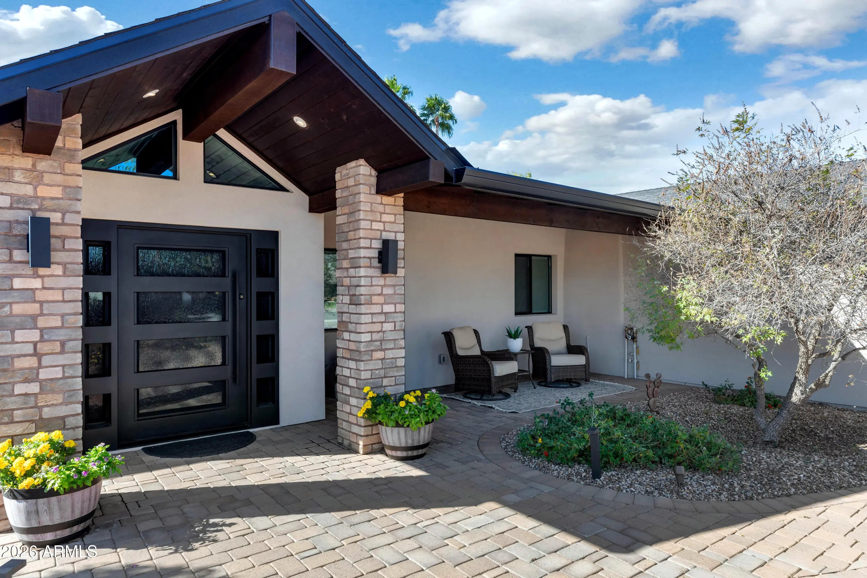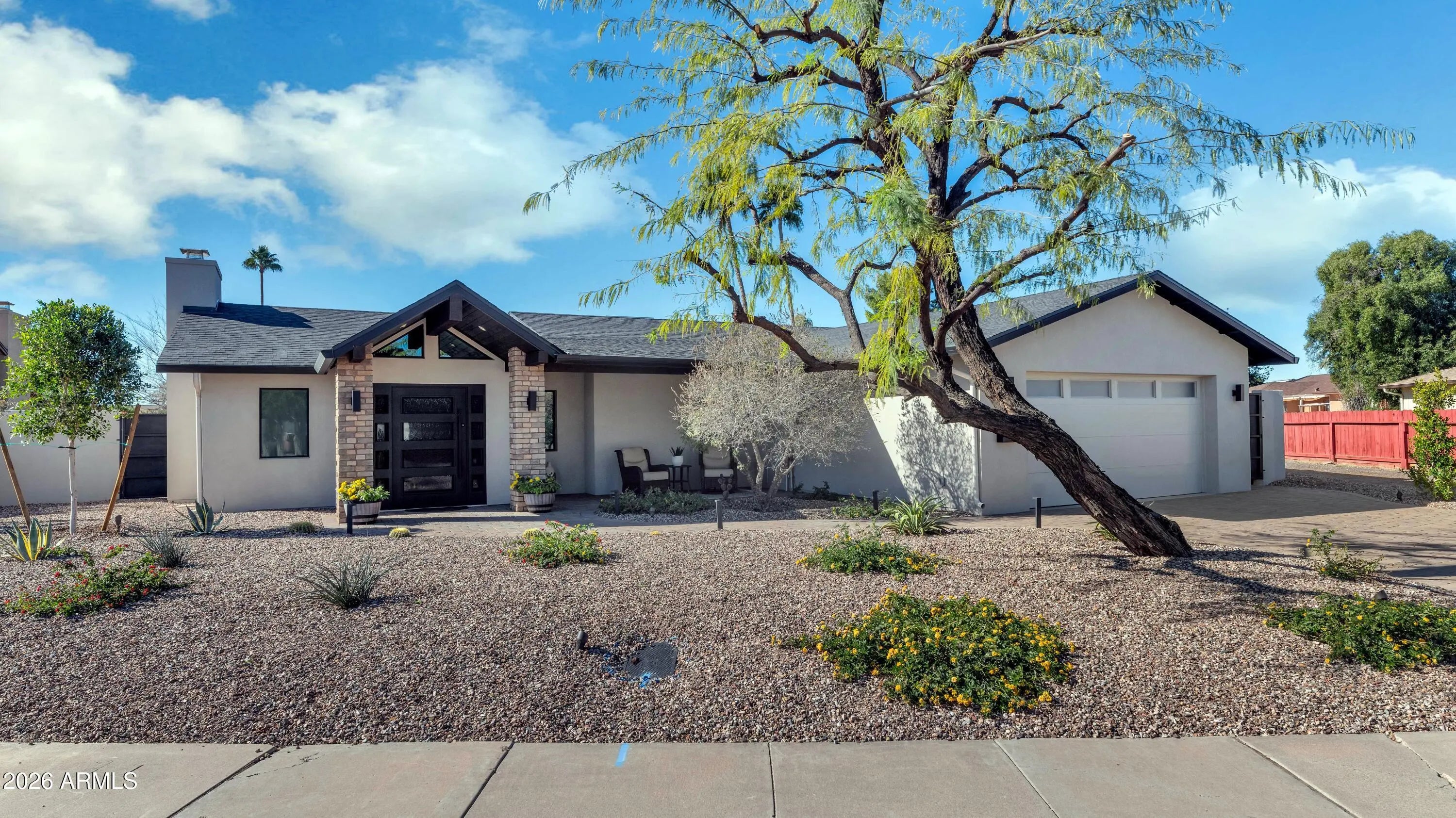 Stunning remodel! 3 bedrooms, 2.5 bathrooms on a LG lot. Hands down one of the nicest remodels you'll find. NEW: windows, doors, tile flooring, lighting, cabinets, countertops, plumbing throughout, 200 amp electrical panel and all new wiring, 30 year roof, Bosch HVAC, water heater with recirc pump, all appliances, R/O system, landscaping front & back, fire sprinkler system, garage has its own HVAC, synthetic stucco, tongue & groove patio ceiling, and the list goes on & on. There's an RV gate in the back. Spacious backyard with running room! The beautiful family room fireplace will warm your heart & soul. Fantastic Scottsdale location; 2.5 miles from Old Town Scottsdale, 2 miles to Waterfront & 1 mile to Chaparral Park. All furniture & furnishings are available on a separate bill of sale