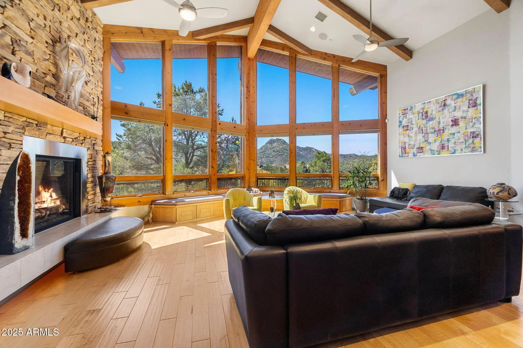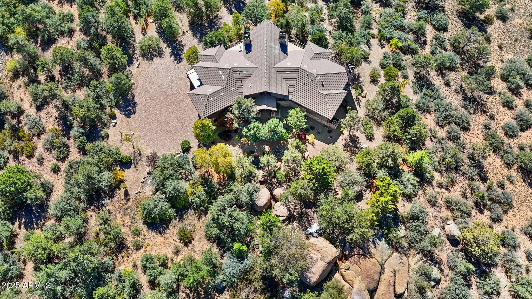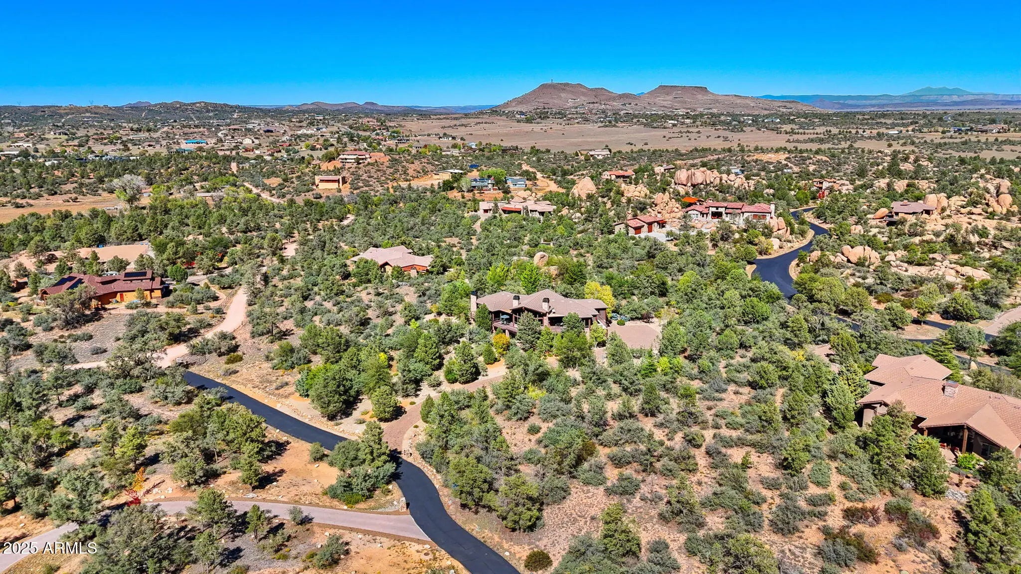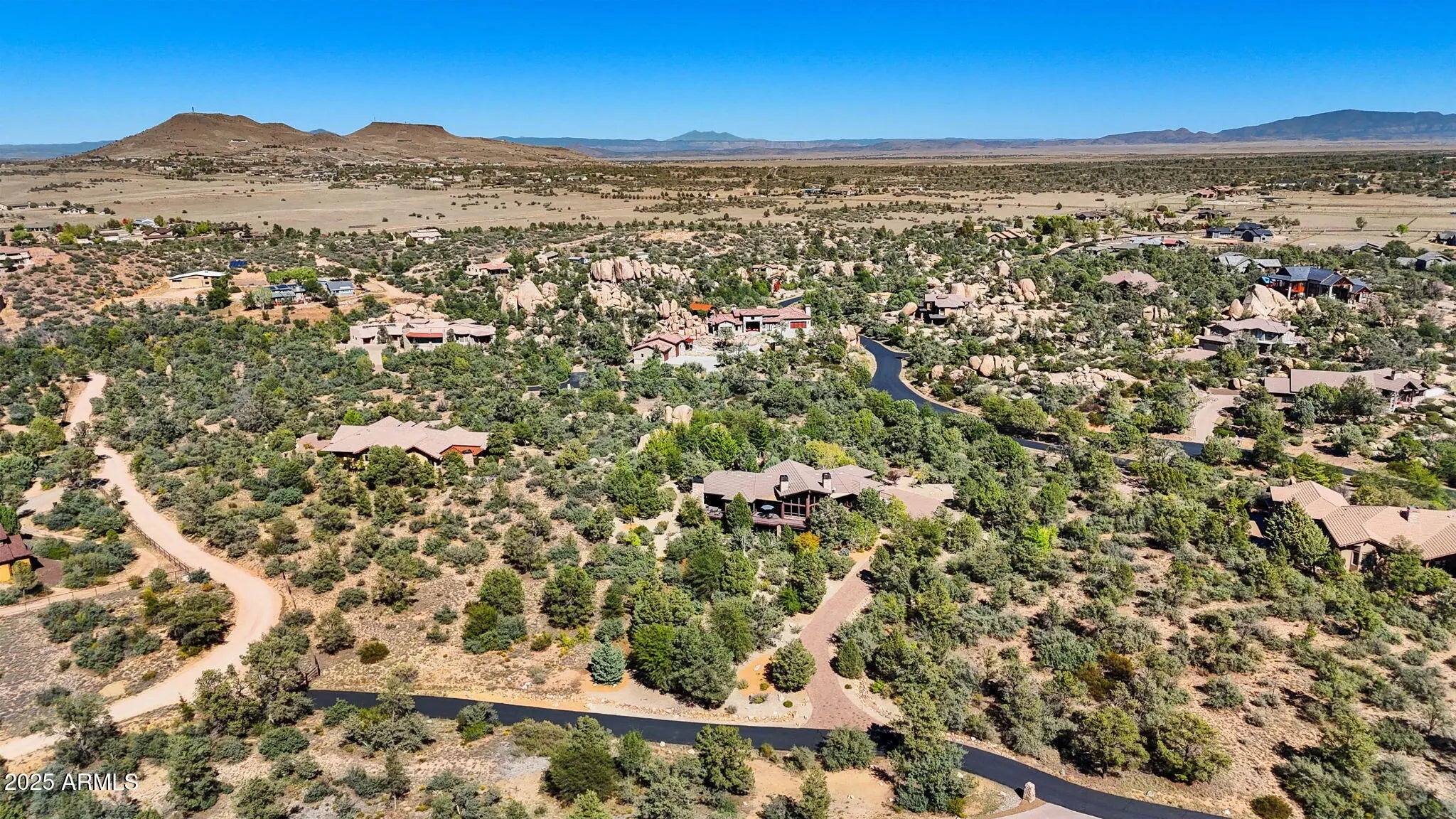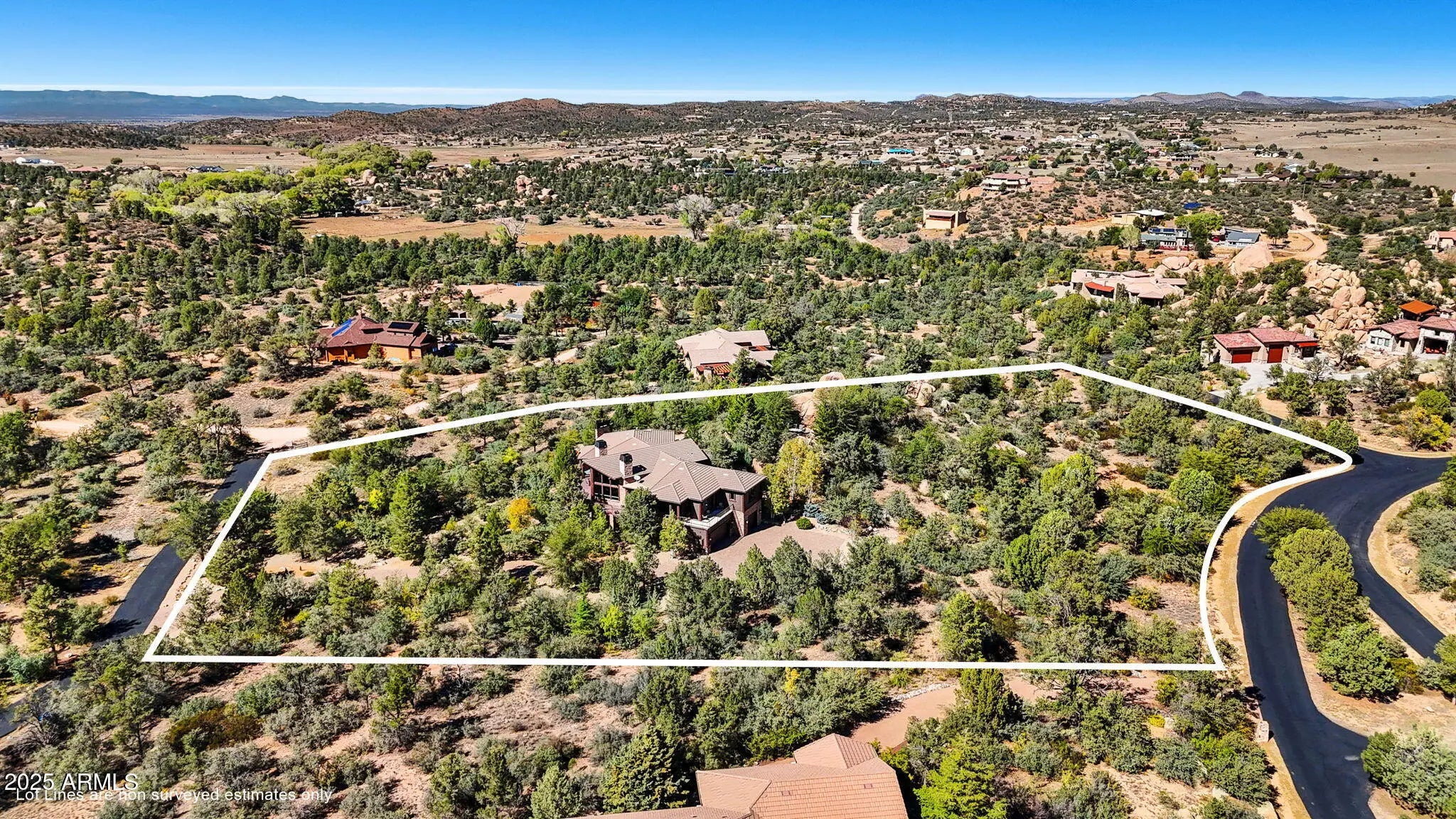 Experience elevated living in this custom 5690 sq ft estate nestled on 3.13 acres. Designed for both luxury and livability, this home offers panoramic views of Granite Mountain through dramatic walls of windows in the living room and master suite. The main level features a spacious master retreat and a private mini-master, complemented by a dedicated TV/Den room , formal dining and breakfast room. The gourmet kitchen boasts high-end appliances, striking blue quartz countertops and backsplash, & custom cabinetry with abundant storage. Downstairs you will find an additional bedroom, office and space to entertain effortlessly in the expansive game room with a full-size bar or the large media room for movie nights at home. Outside, enjoy the wrap around deck, waterfall, fireplaces & spa! More... The outdoor space offers wraparound decks and multiple patios including an elevated hot tub with built-in gas fireplace to create seamless indoor-outdoor living. A show-stopping 70+ foot waterfall feature adds tranquility and visual drama to the landscape. Additional highlights include a 3-car garage with luxury epoxy flooring, unique architectural details, and access to American Ranch amenities: full equestrian facilities, clubhouse, pool, fitness center, and more. This is a rare opportunity to own a one-of-a-kind mountain-view masterpiece in one of Prescott's most sought-after communities.