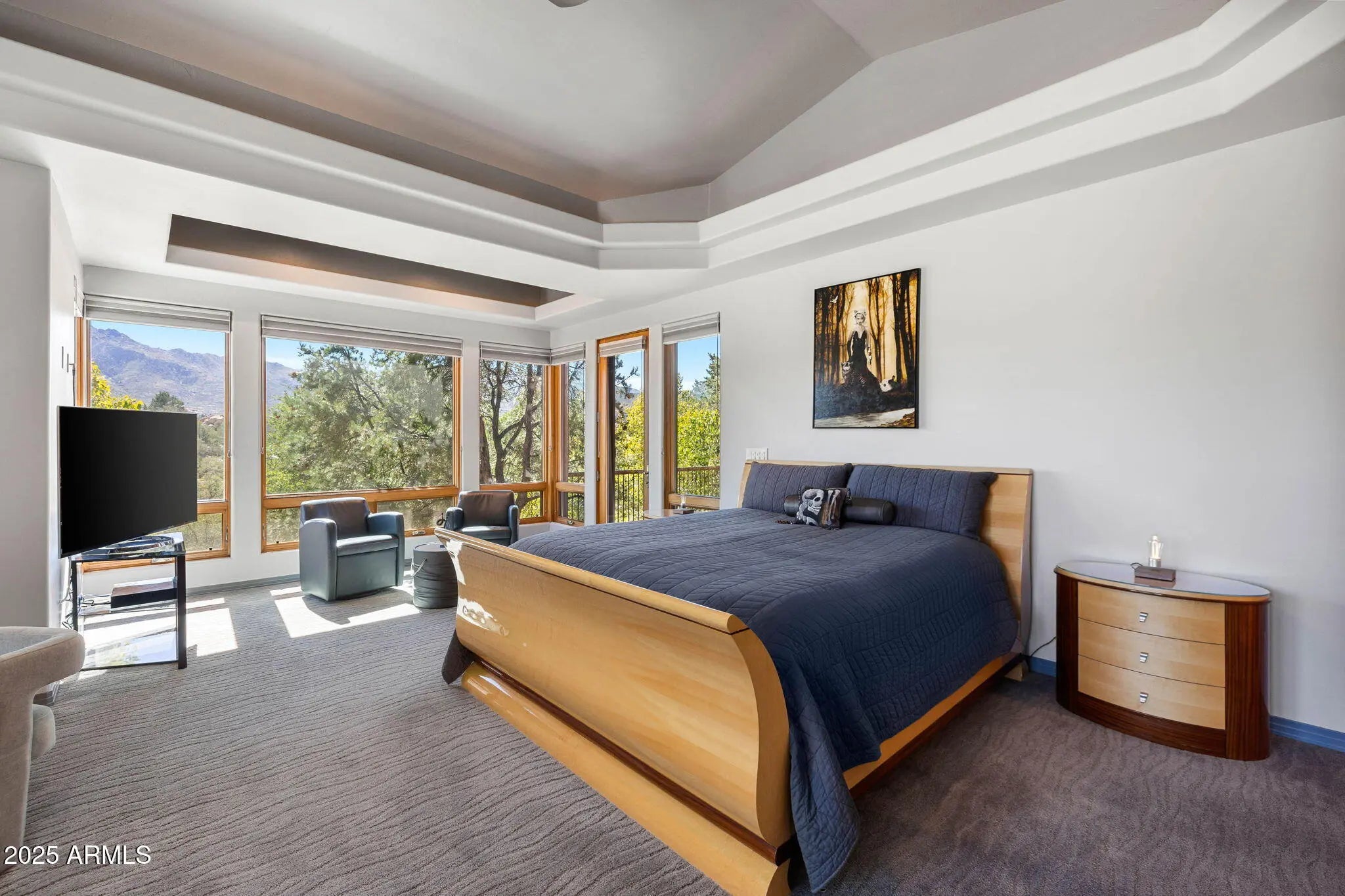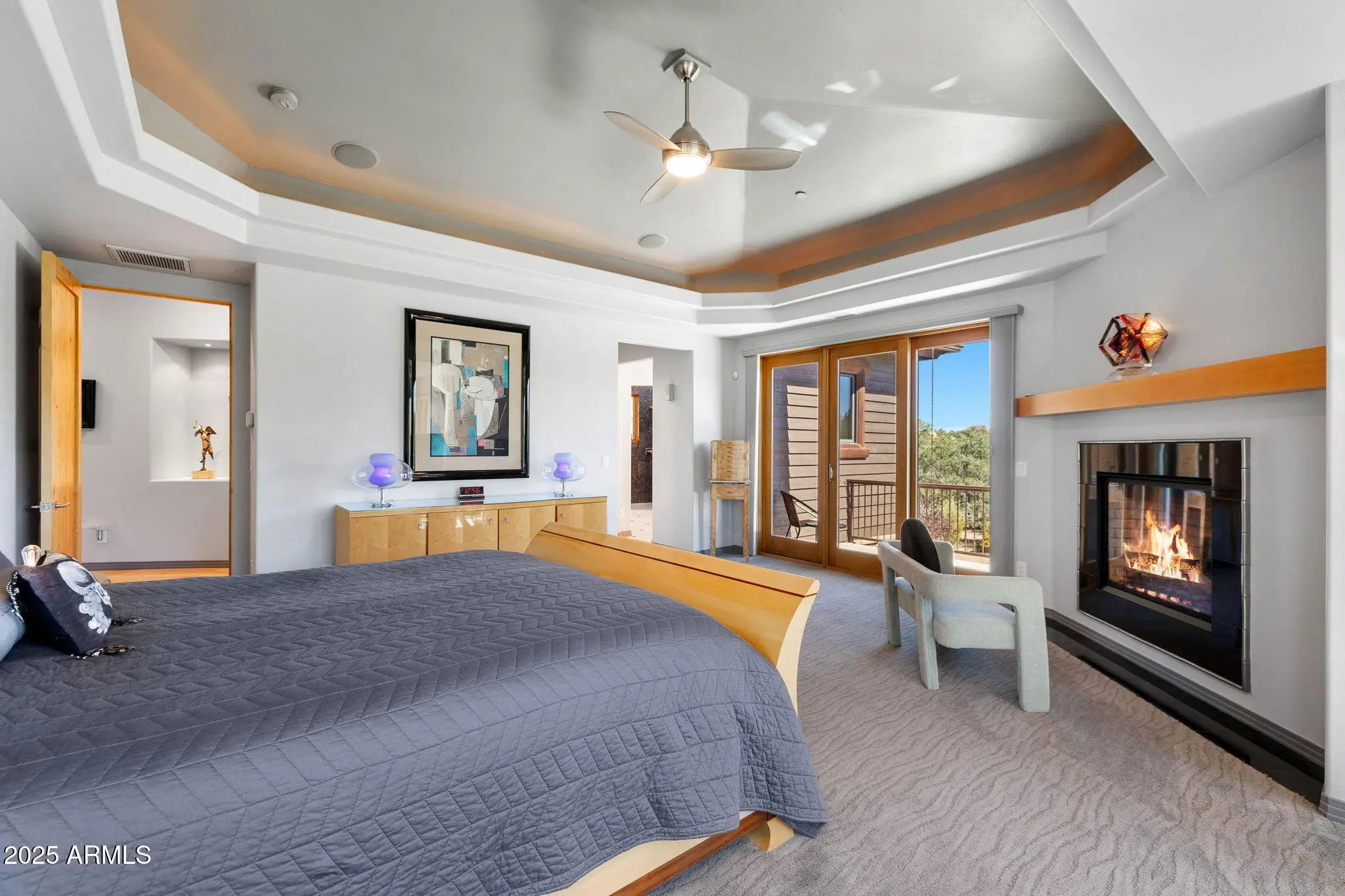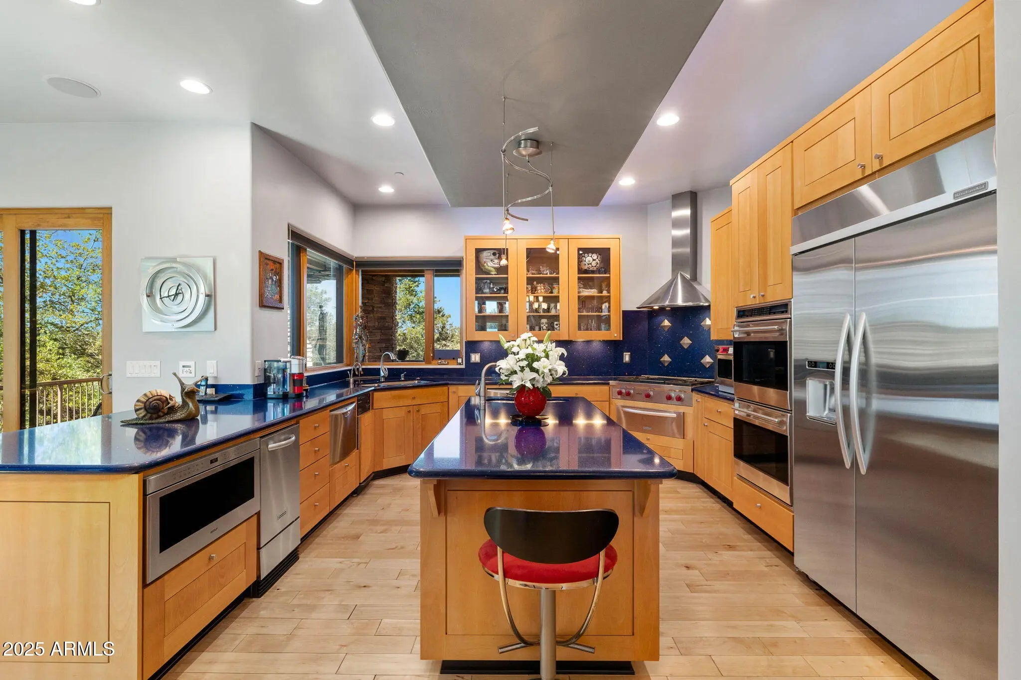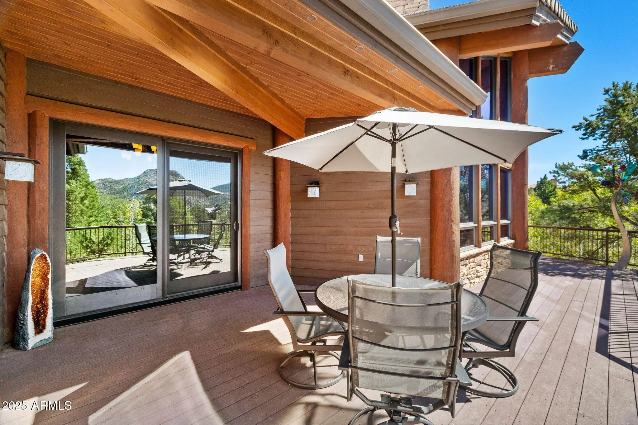 Experience elevated living in this custom 5690 sq ft estate nestled on 3.13 acres. Designed for both luxury and livability, this home offers panoramic views of Granite Mountain through dramatic walls of windows in the living room and master suite. The main level features a spacious master retreat and a private mini-master, complemented by a dedicated TV/Den room , formal dining and breakfast room. The gourmet kitchen boasts high-end appliances, striking blue quartz countertops and backsplash, & custom cabinetry with abundant storage. Downstairs you will find an additional bedroom, office and space to entertain effortlessly in the expansive game room with a full-size bar or the large media room for movie nights at home. Outside, enjoy the wrap around deck, waterfall, fireplaces & spa! More... The outdoor space offers wraparound decks and multiple patios including an elevated hot tub with built-in gas fireplace to create seamless indoor-outdoor living. A show-stopping 70+ foot waterfall feature adds tranquility and visual drama to the landscape. Additional highlights include a 3-car garage with luxury epoxy flooring, unique architectural details, and access to American Ranch amenities: full equestrian facilities, clubhouse, pool, fitness center, and more. This is a rare opportunity to own a one-of-a-kind mountain-view masterpiece in one of Prescott's most sought-after communities.
