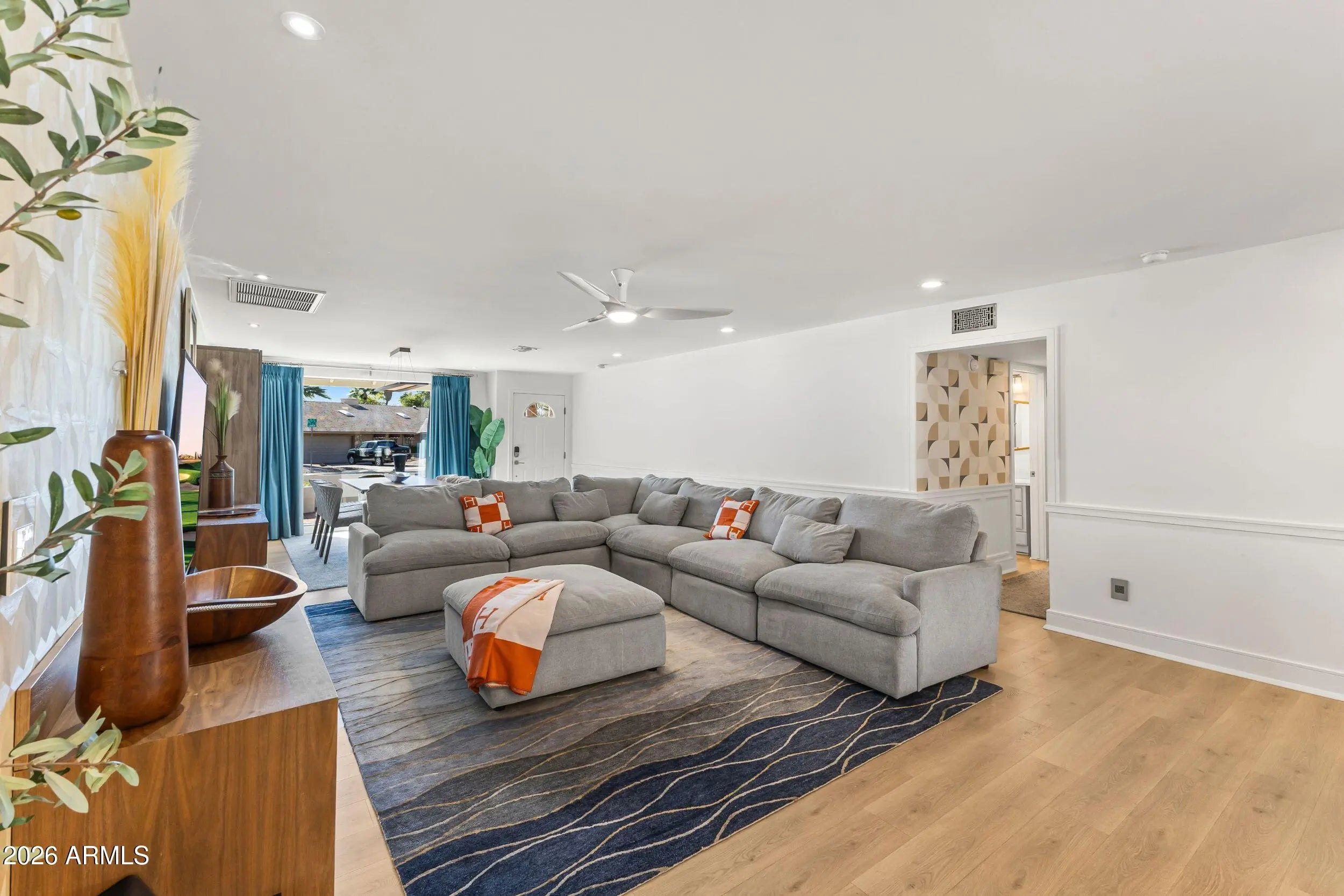 Beautifully renovated 4-bedroom, 2-bath home on a quiet cul-de-sac lot in a prime Scottsdale location near McCormick Ranch. Featuring a modern kitchen and updated bathrooms, engineered wood flooring, newer windows, updated bathroom plumbing, additional electrical outlets and fresh exterior paint. A well-maintained AC system, with maintenance prepaid through 2029, adds peace of mind. The open, light-filled floor plan is ideal for everyday living and effortless entertaining. The resort-style backyard features a pebble-tec pool with waterfall and firepit, plus newly installed grass and landscaping, creating an inviting outdoor retreat. LG stacked washer and dryer, wine cooler and included appliances convey. Community tennis courts, with convenient access to dining, shopping and freeways.