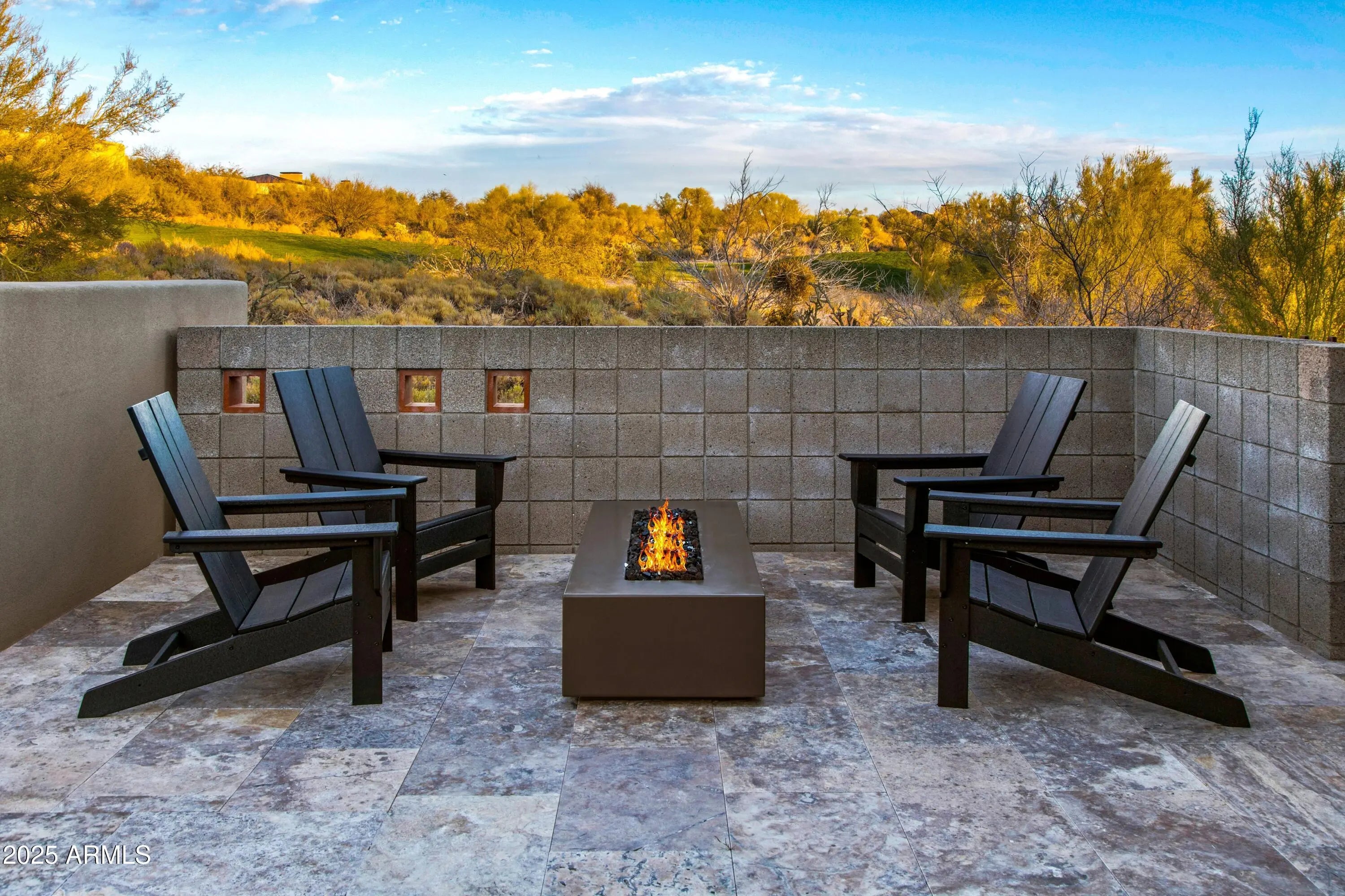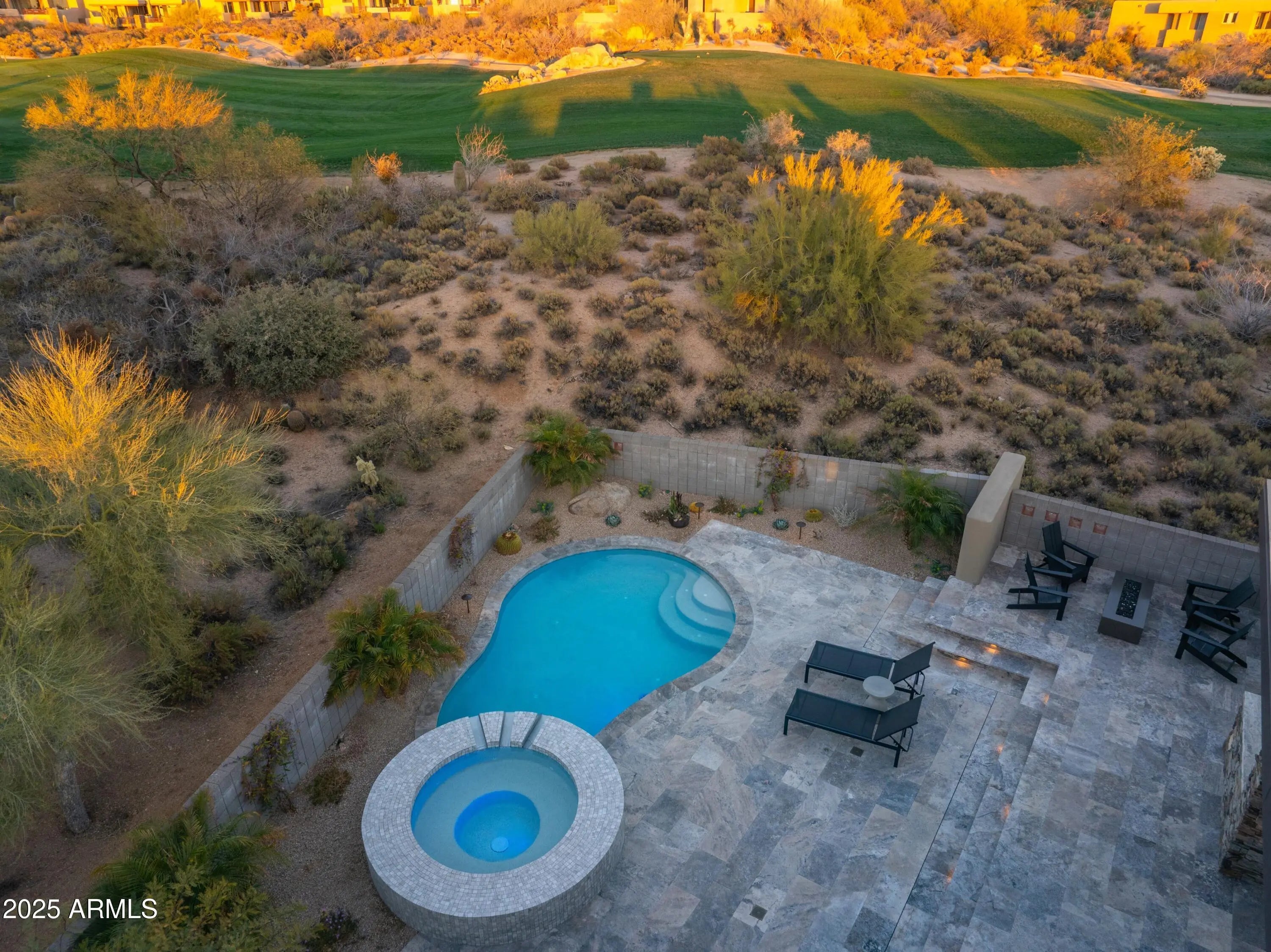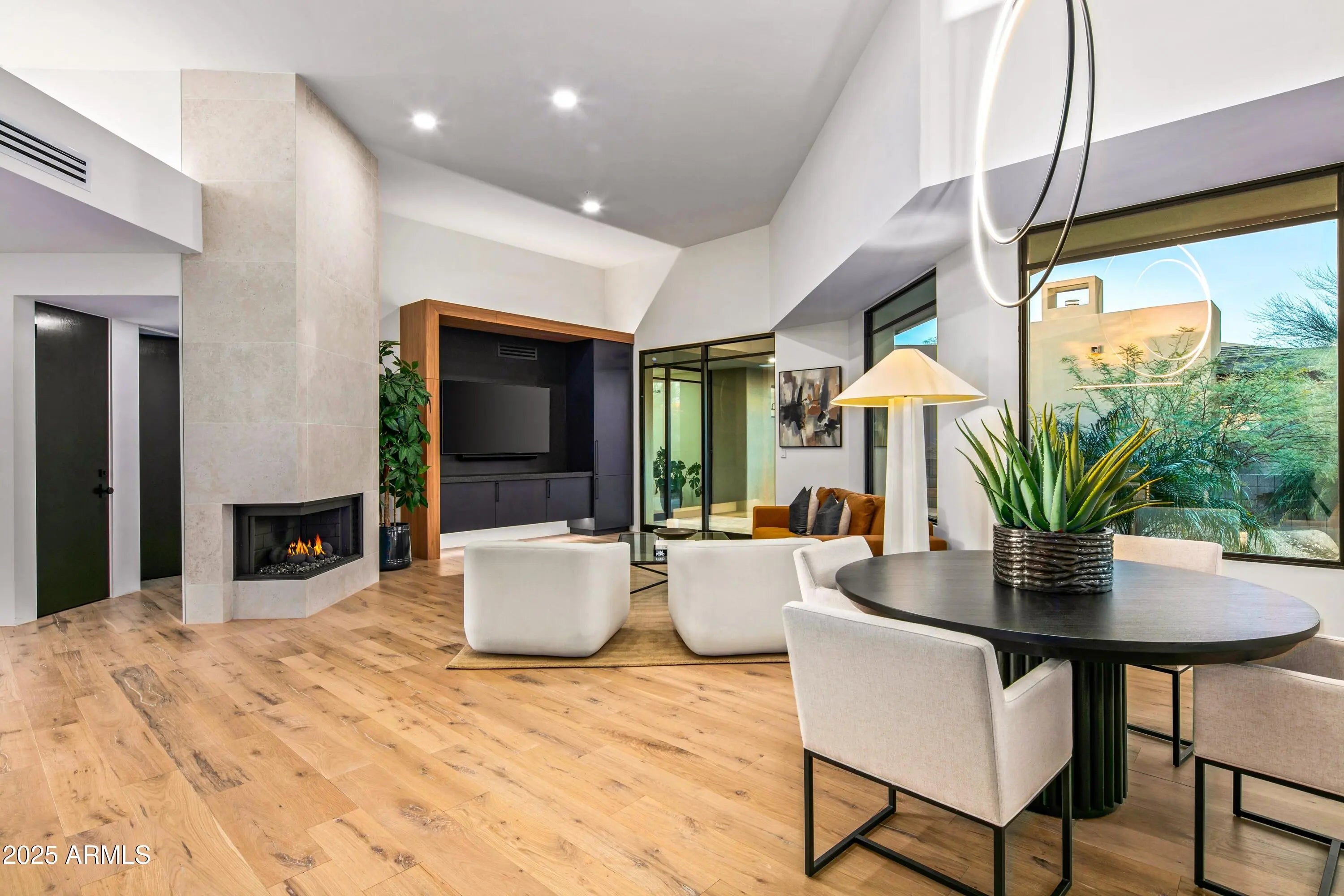 Prepare to be wowed! This elevated contemporary sanctuary in the prestigious Desert Mountain community has been completely transformed with todays most sought-after high-end finishes, delivering a seamless blend of sophisticated style and effortless indoor-outdoor living. Whether you're looking for a full-time residence or a seasonal escape, this home is designed to impress at every turn. Designed by Bing Hu. the timeless architecture is kept, while the interior is transformed by Aesthetic Interiors & Design into todays lifestyle without compromising the original integrity. From the moment you arrive, the home commands attention. A sleek exterior of stucco and stacked stone, complemented by slump block walls, clean lines, expansive glass, and striking Sonoran Desert landscaping, sets the tone for the beauty within. The stone-tiled entry leads through a metal-framed glass storefront door with sidelight panes, opening to an interior that exudes warmth and sophistication. Set on a single level with no steps, the open floor plan flows with grace, capturing breathtaking Northeastern panoramic Apache golf course and mountain views. Thoughtfully designed, the home offers three ensuite bedrooms or two plus an office ensuring privacy and comfort for all. Inside, wide-plank wood flooring provides the perfect canvas for modern living. A floor-to-ceiling tiled fireplace anchors the great room, while a dramatic wood-framed black entertainment wall adds depth and style. In the dining space, a stunning black circular chandelier makes a bold statement, paired with a sleek wet bar featuring a satin granite waterfall-edge countertop and black tile accent walls. Expansive walls of glass connect the interior to the stunning outdoor oasis, enhancing the homes bright, open feel - amplifying the WOW factor. The gourmet kitchen is equally stylish and functional, designed for everything from intimate meals to lively gatherings. A peninsula island with bar seating makes casual dining a breeze, while warm walnut slab cabinetry, bold black fixtures, and top-of-the-line appliances elevate the cooking experience. The primary ensuite is a sanctuary of relaxation, featuring a floor-to-ceiling fireplace, spa-inspired wet-room shower and freestanding tub, and elegant golden brass fixtures. A spacious custom walk-in closet behind a chic barn door adds both elegance and practicality. Wake up to stunning mountain and lush green views, framed perfectly through corner windows and sliding glass doors. Two additional designer guest ensuites, equally impressive in style and quality, offer private patio access and the same high-end finishes seen throughout the home ensuring your visitors experience the height of comfort and privacy. Step outside to your intimately designed private resort-style escape, where a raised circular spa spills into a sparkling pool with pebble sheen and LED light show, all set against a beautifully wrapped stone patio. Whether youre lounging poolside, grilling in the outdoor kitchen, dining under the covered patio, or stargazing by the warmth of the 5 linear gas firepit this space is designed for year-round enjoyment. Located in the Village Desert Greens, a coveted mid-mountain enclave, this home offers quick access to the Sonoran Fitness Club, featuring tennis, pickleball, hiking trails, a state-of-the-art fitness center, and a luxury spa. With seven golf courses, clubhouses, and 20 miles of trails bordering the Tonto National Forest, this is a community where adventure and tranquility coexist. Live the high life in this exceptional home, nestled within the renowned Desert Mountain community of Scottsdale, Arizona.