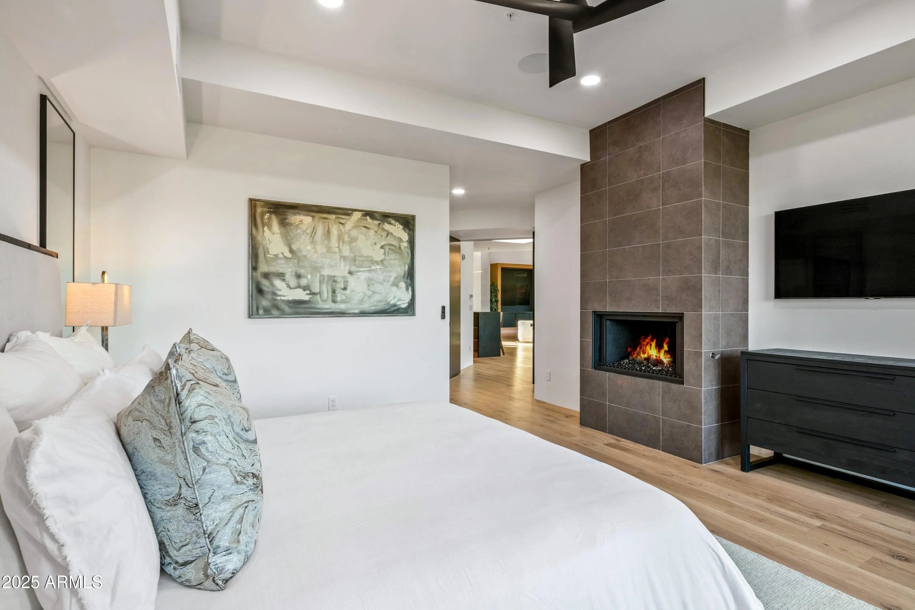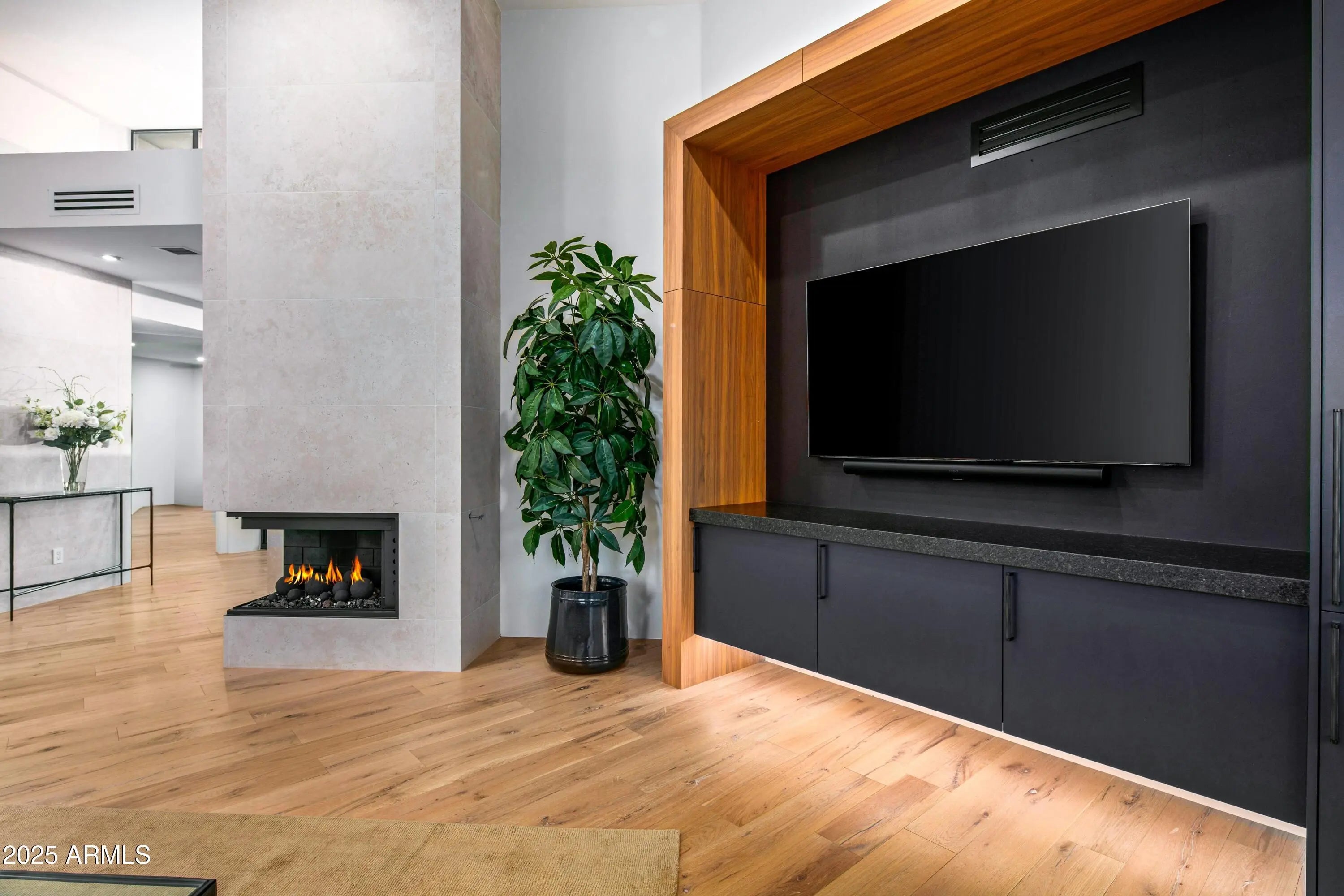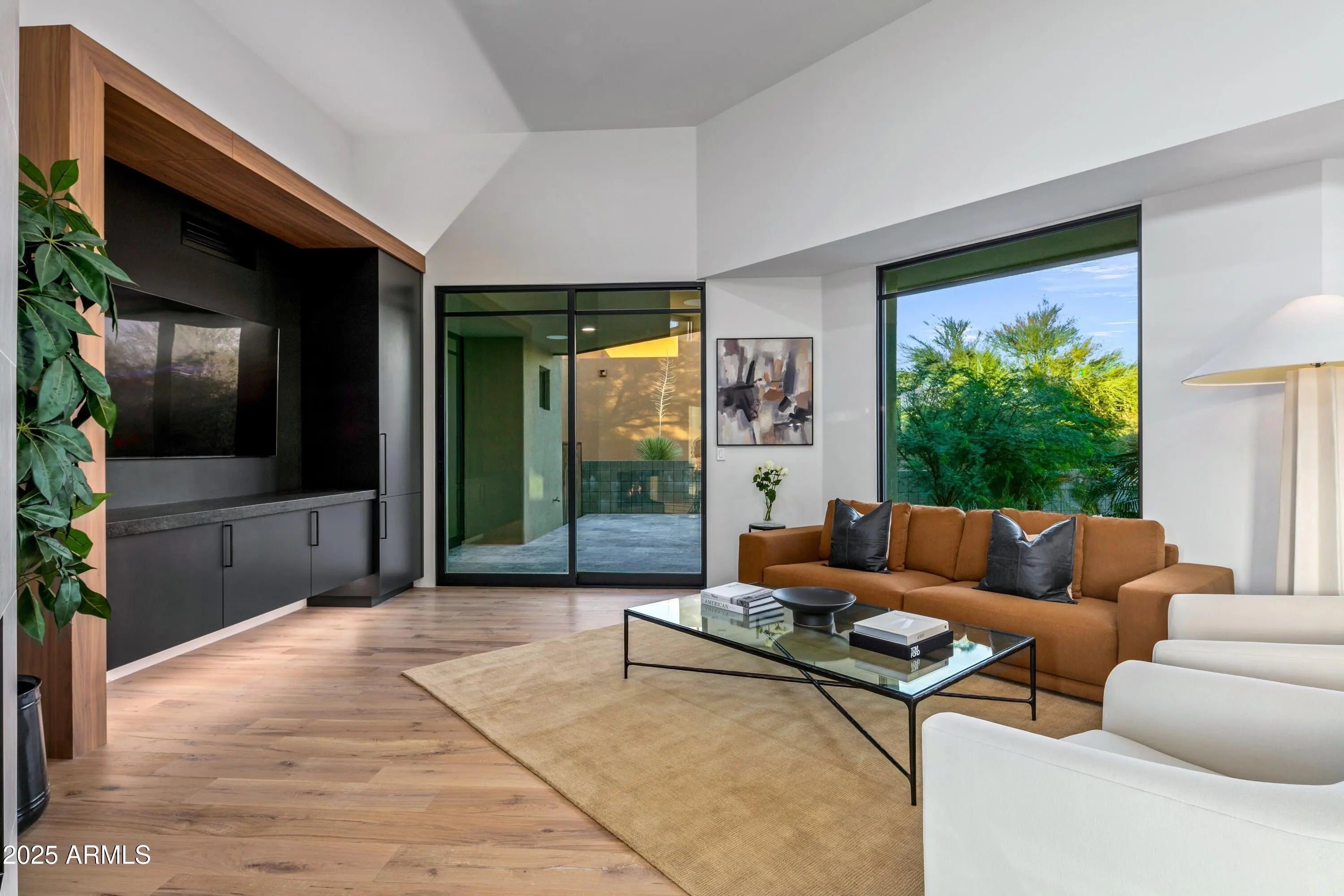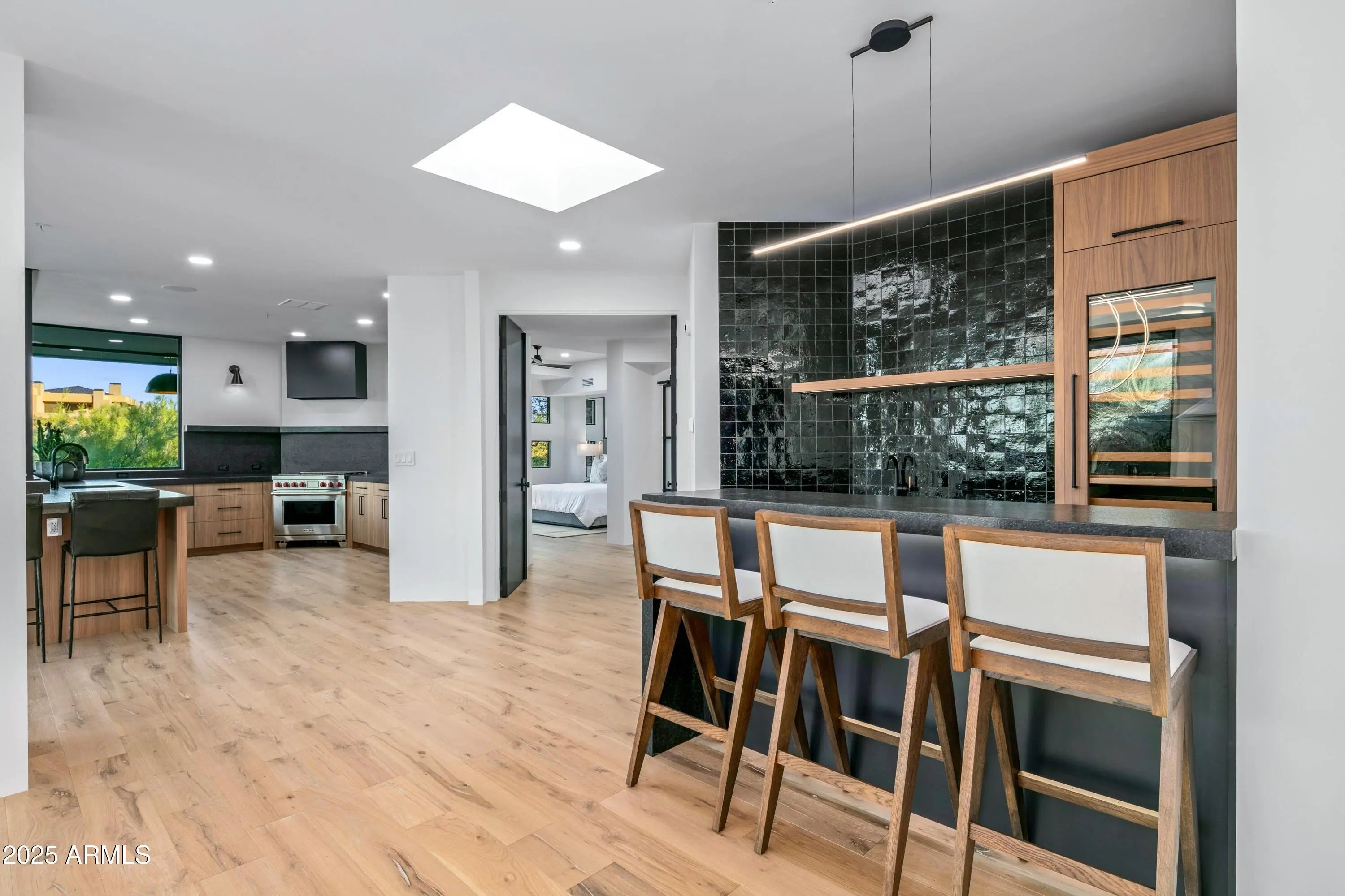 Prepare to be wowed! This elevated contemporary sanctuary in the prestigious Desert Mountain community has been completely transformed with todays most sought-after high-end finishes, delivering a seamless blend of sophisticated style and effortless indoor-outdoor living. Whether you're looking for a full-time residence or a seasonal escape, this home is designed to impress at every turn. Designed by Bing Hu. the timeless architecture is kept, while the interior is transformed by Aesthetic Interiors & Design into todays lifestyle without compromising the original integrity. From the moment you arrive, the home commands attention. A sleek exterior of stucco and stacked stone, complemented by slump block walls, clean lines, expansive glass, and striking Sonoran Desert landscaping, sets the tone for the beauty within. The stone-tiled entry leads through a metal-framed glass storefront door with sidelight panes, opening to an interior that exudes warmth and sophistication. Set on a single level with no steps, the open floor plan flows with grace, capturing breathtaking Northeastern panoramic Apache golf course and mountain views. Thoughtfully designed, the home offers three ensuite bedrooms or two plus an office ensuring privacy and comfort for all. Inside, wide-plank wood flooring provides the perfect canvas for modern living. A floor-to-ceiling tiled fireplace anchors the great room, while a dramatic wood-framed black entertainment wall adds depth and style. In the dining space, a stunning black circular chandelier makes a bold statement, paired with a sleek wet bar featuring a satin granite waterfall-edge countertop and black tile accent walls. Expansive walls of glass connect the interior to the stunning outdoor oasis, enhancing the homes bright, open feel - amplifying the WOW factor. The gourmet kitchen is equally stylish and functional, designed for everything from intimate meals to lively gatherings. A peninsula island with bar seating makes casual dining a breeze, while warm walnut slab cabinetry, bold black fixtures, and top-of-the-line appliances elevate the cooking experience. The primary ensuite is a sanctuary of relaxation, featuring a floor-to-ceiling fireplace, spa-inspired wet-room shower and freestanding tub, and elegant golden brass fixtures. A spacious custom walk-in closet behind a chic barn door adds both elegance and practicality. Wake up to stunning mountain and lush green views, framed perfectly through corner windows and sliding glass doors. Two additional designer guest ensuites, equally impressive in style and quality, offer private patio access and the same high-end finishes seen throughout the home ensuring your visitors experience the height of comfort and privacy. Step outside to your intimately designed private resort-style escape, where a raised circular spa spills into a sparkling pool with pebble sheen and LED light show, all set against a beautifully wrapped stone patio. Whether youre lounging poolside, grilling in the outdoor kitchen, dining under the covered patio, or stargazing by the warmth of the 5 linear gas firepit this space is designed for year-round enjoyment. Located in the Village Desert Greens, a coveted mid-mountain enclave, this home offers quick access to the Sonoran Fitness Club, featuring tennis, pickleball, hiking trails, a state-of-the-art fitness center, and a luxury spa. With seven golf courses, clubhouses, and 20 miles of trails bordering the Tonto National Forest, this is a community where adventure and tranquility coexist. Live the high life in this exceptional home, nestled within the renowned Desert Mountain community of Scottsdale, Arizona.