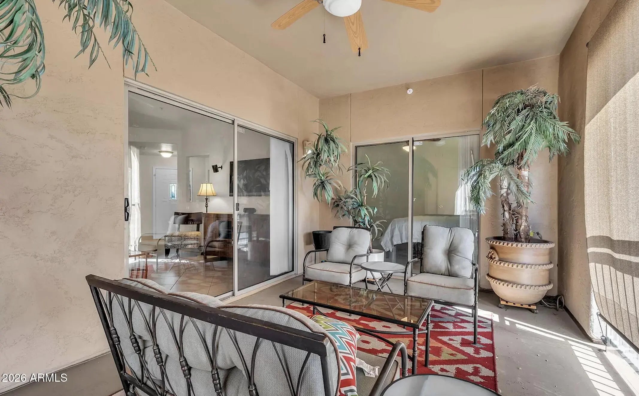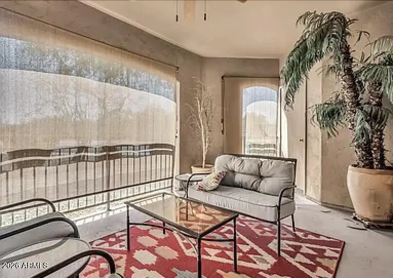 Explore this spacious 1,539 sq ft, rarely available 2 bedroom condo in Salida del Sol, North Scottsdale. Convenient first floor condo offering true single level living w/ no interior steps & features a split bedroom layout, a den/office, an open living & kitchen design, & two covered patios. Its generous layout & thoughtful design make it an ideal option for full time living or a low maintenance seasonal retreat. Located near the McDowell Mountains and DC Ranch, the home provides convenient access to Scottsdale destinations including WestWorld, TPC Scottsdale, Kierland Commons, Talking Stick Resort, Salt River Fields, & Loop 101. Hiking, biking, and scenic trails throughout the McDowell Sonoran Preserve are close by. Home is offered fully furnished and turnkey. Salida del Sol is a quiet, well kept community known for its convenient North Scottsdale location and easy access to everyday essentials, dining, and recreation. The community's layout offers a relaxed, low density feel with mature landscaping and a comfortable neighborhood atmosphere. Ideal for buyers seeking a lock and leave home with minimal maintenance and access to Scottsdale's most desirable amenities. Interior Comfort & Functionality: The single level floor plan provides effortless living with no stairs, making it suitable for a variety of lifestyles. The split bedroom design offers privacy for guests, roommates, or a home office setup. The den/office adds valuable flexibility for remote work, hobbies, or additional storage. Outdoor Living: Two covered patios extend the living space and offer peaceful spots for morning coffee or evening relaxation. The first floor location provides easy access to community walkways and parking without sacrificing privacy. Convenience & Accessibility: Located minutes from grocery stores, pharmacies, coffee shops, and everyday conveniences. Quick access to Loop 101 makes commuting and exploring the Valley simple and efficient. Close proximity to major Scottsdale events and venues adds seasonal appeal for full time and part time residents. Turn Key Offering: Being offered fully furnished provides a seamless move in experience for seasonal residents, investors, or buyers looking for a ready to enjoy home.