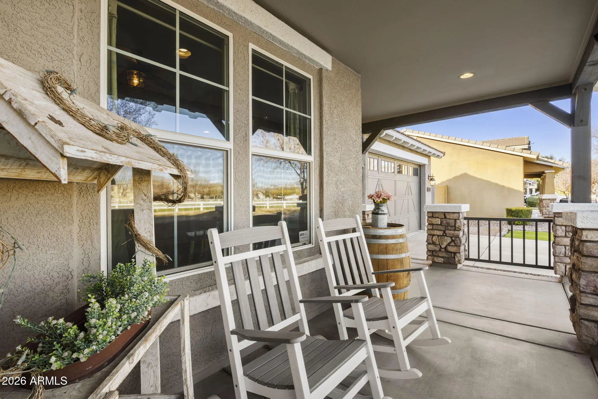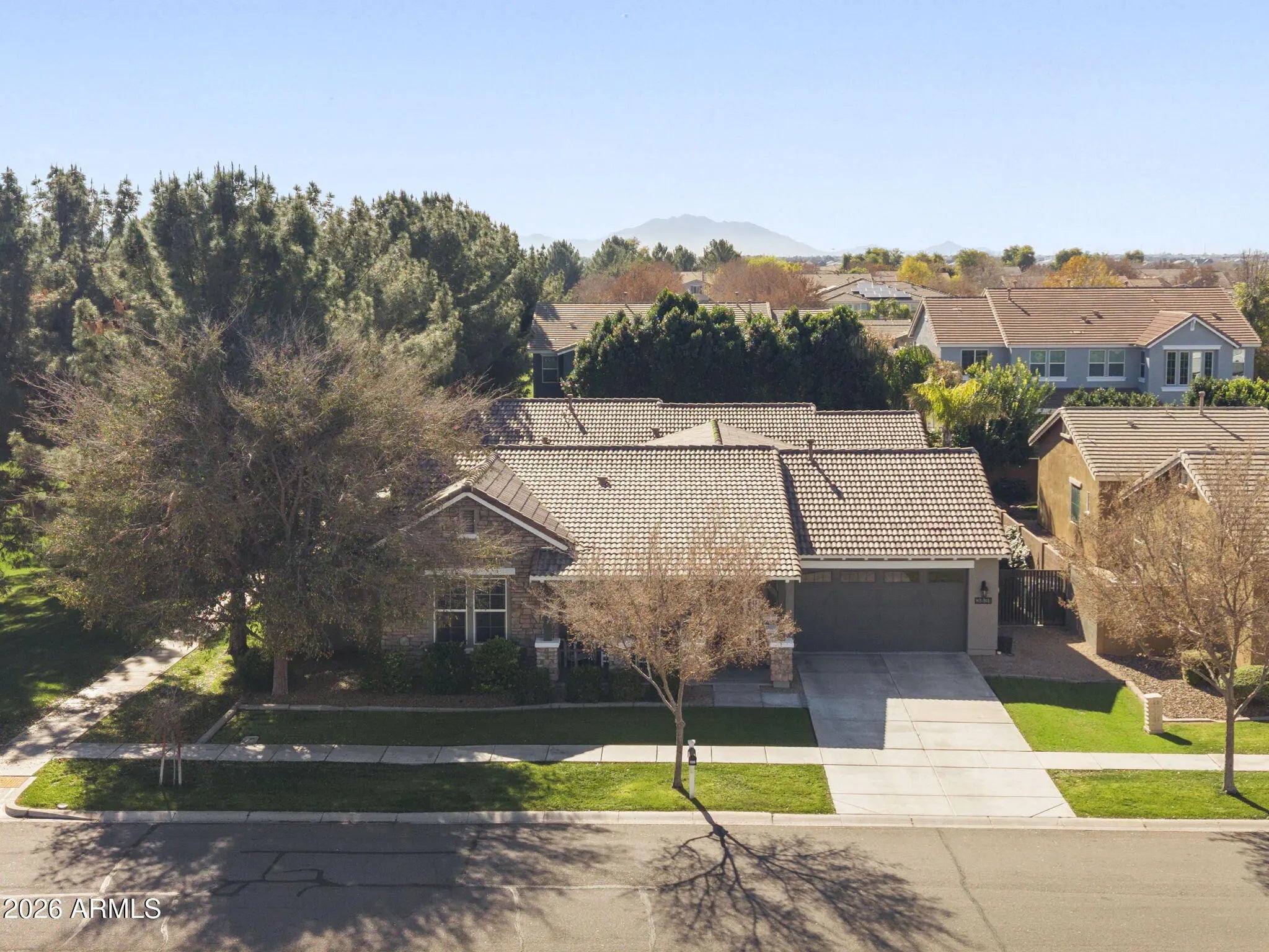 Perfectly positioned on a premium, oversized lot with only one neighboring home to the west and a greenbelt to the east, this home in Lakeview Trails North at Morrison Ranch offers privacy and postcard-worthy charm. Enjoy front porch views framed by classic white picket fences, where evening walks to the mailbox and quiet moments feel effortlessly timeless. Set within one of the East Valley's most sought-after communities—known for its tree-lined streets, scenic lakes, and winding walking paths, Lakeview Trails North blends classic character with everyday convenience, just minutes from dining, shopping, and freeway access. Inside, a thoughtfully designed floor plan balances comfort and function. The kitchen is the heart of the home, anchored by a dedicated butler's pantry that adds generous storage, prep space, and seamless flow into the dining areaideal for both everyday living and hosting with ease. Even the three-car garage impresses, impeccably maintained and pristine in condition. Out back, the private retreat is complete with a sparkling pool, creating an inviting space to unwind, entertain, and enjoy Arizona living at its best. With its exceptional location, standout features, and meticulous condition, this Lakeview Trails North home represents a rare opportunity within Morrison Ranch. Why this home is special: This home offers something increasingly rarespace, privacy, and connection. With only a neighbor to the west and a greenbelt to the east, open views and natural separation create a true sense of retreat while still being part of a vibrant, walkable community. Thoughtful interior design, a kitchen built for real life and entertaining, and a pristine three-car garage reflect a home that has been exceptionally cared for. Located in Lakeview Trails North at Morrison Ranch, this is a place where everyday moments feel elevatedand where lifestyle and location come together seamlessly.