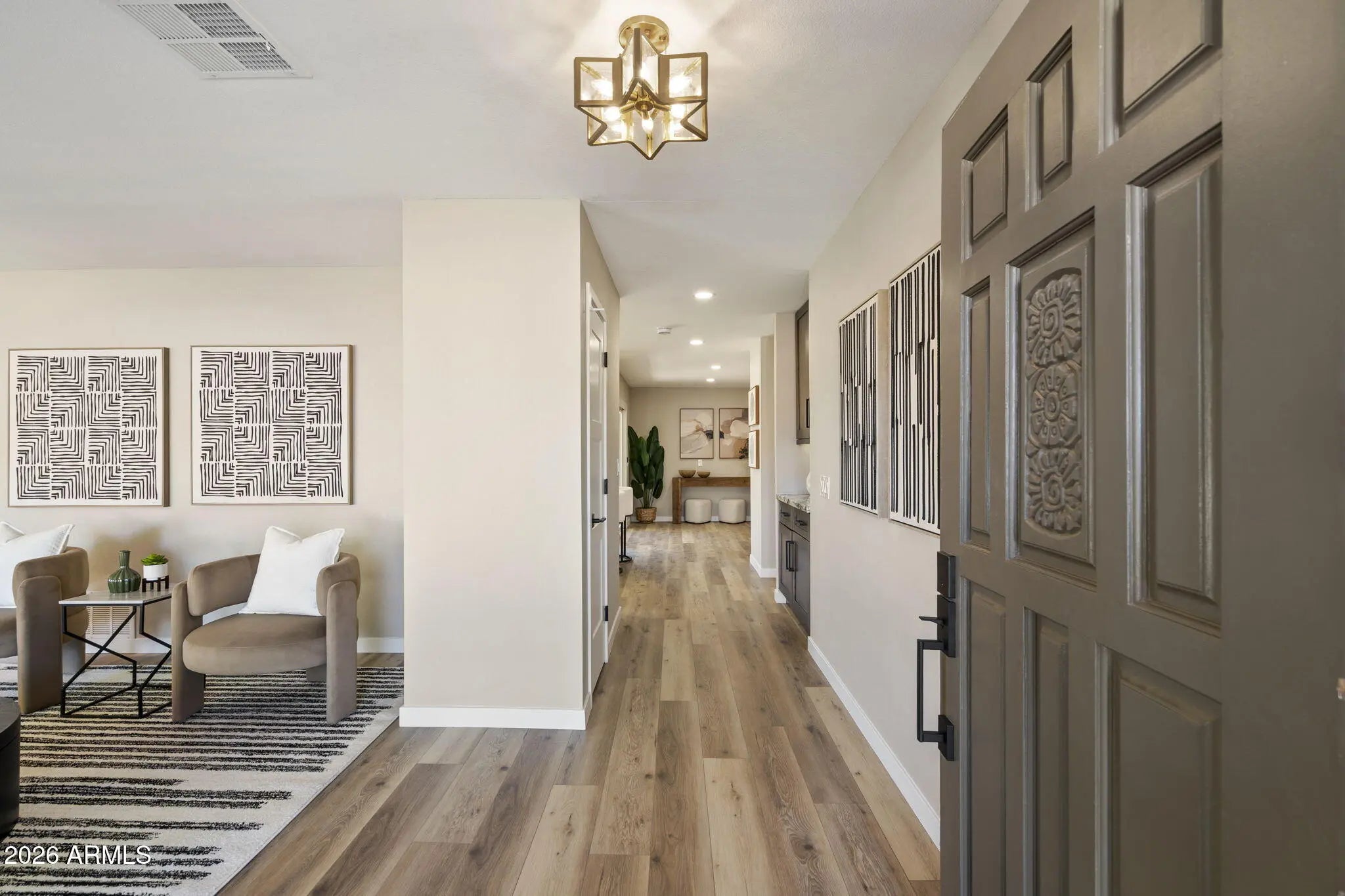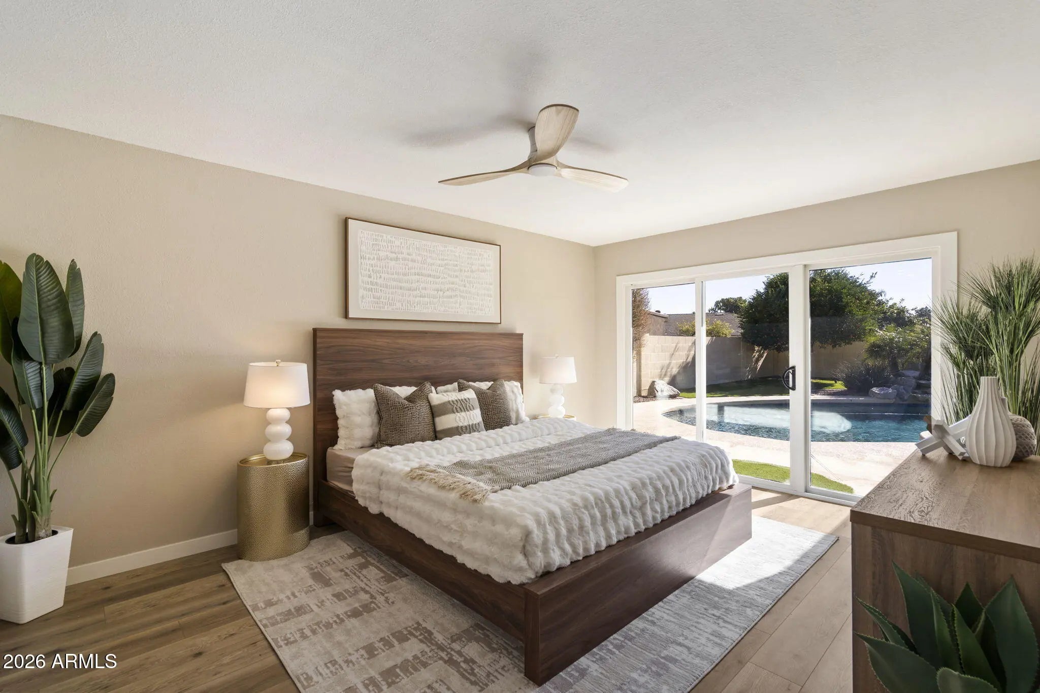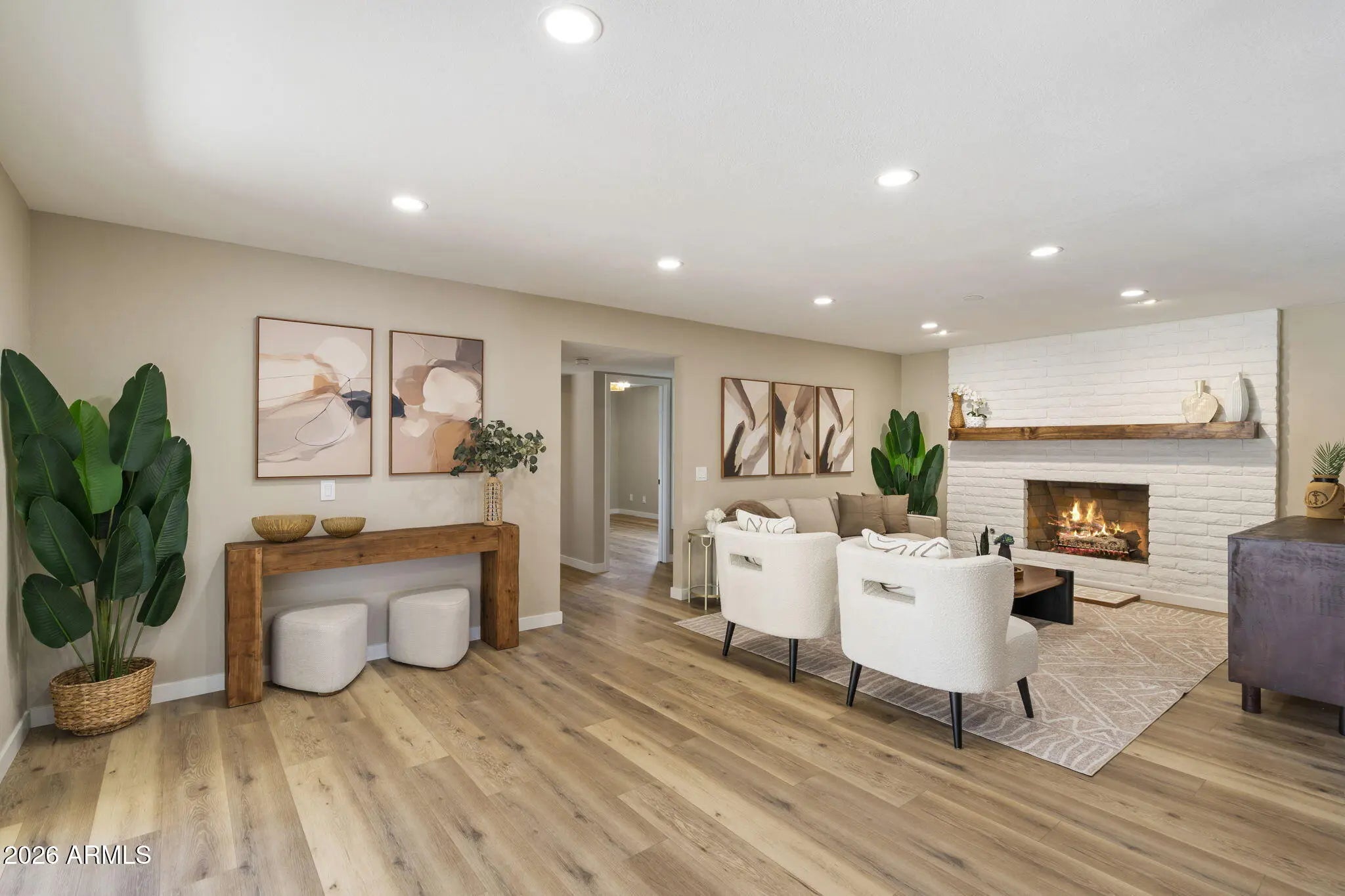 Welcome to 8347 E Via Dorado, Scottsdale, 85258-Discover luxury living in the heart of Scottsdale's most coveted community, McCormick Ranch. This completely transformed 3-bedroom, 2-bath residence offers 2,114 square feet of thoughtfully redesigned living space on an impressive oversized 9,350-square-foot lot. The home has undergone a top-to-bottom renovation with exceptional attention to detail. Updates include custom cabinetry throughout, high-end laminate flooring, fresh interior paint, new doors and windows, upgraded lighting fixtures, and more. The stunning, newly remodeled kitchen features brand-new appliances, including a range, microwave drawer, dishwasher, and refrigerator. Designed for both function and gathering, the kitchen-breakfast combination offers a coffee bar, appliance counter, and eat-in breakfast bar, ideal for everyday living and entertaining. The updated family room highlights a large gas fireplace with custom wood mantel, abundant recessed lighting, and a generous dry bar with wine coolerperfect for hosting. The living and dining room combination features new lighting while preserving the home's original character with its charming arched front window. The primary suite is complemented by an updated bathroom with dual vanities and a custom closet organizer. Step outside to your private backyard retreat, where the oversized lot showcases a pebble-tec pool with waterfall feature, mature landscaping, and low-maintenance synthetic turf, creating an ideal setting for relaxation and outdoor enjoyment