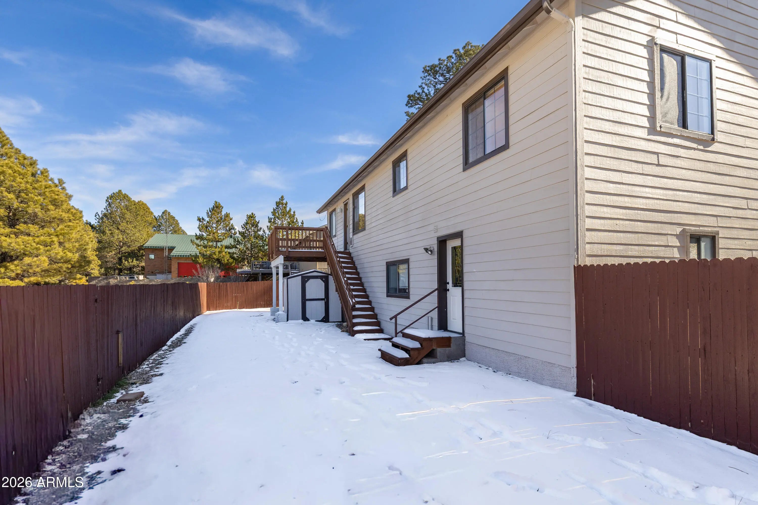 Located in Aspen Trails, this updated 3-bedroom, 2-bath home offers a setup that fits Flagstaff living beautifully. The main home has been refreshed with quartz countertops, luxury laminate flooring, fresh interior and exterior paint, updated lighting and plumbing fixtures, and a solid new front door. Cold A/C is a welcome bonus during warmer summer days, and the primary suite includes a jetted tub. What truly sets this property apart is the 1,500 sq ft ADU, completely separate from the main home with its own entrance and no shared access. Short-term rental friendly and fully equipped with new appliances and its own washer and dryer, it offers excellent flexibility, whether for visitors, extended stays, or supplemental income, while still preserving privacy. A new deck takes in views of the Peaks, and gated access to the Urban Trail puts miles of adventure right outside your door. The front courtyard is private and welcoming, framed by cedar fencing, supported by a French drainage system, and centered around a mature willow tree that glows at night with twinkle lights and blue-glass river rock accents. The garage is equally well thought out, featuring custom cabinetry, a third laundry area, and a 7'3" garage door designed to accommodate larger vehicles, gear, and all the extras that come with mountain living. This is Aspen Trails done right.