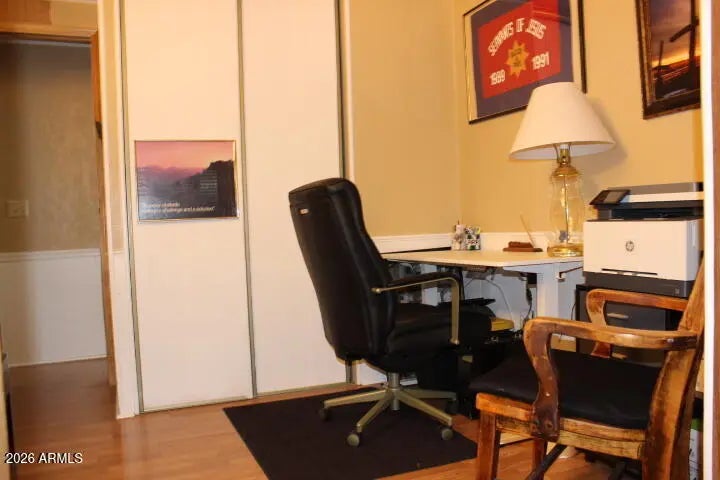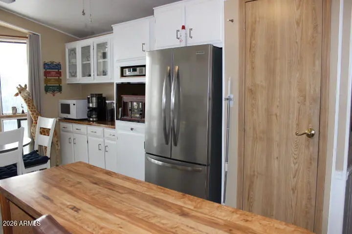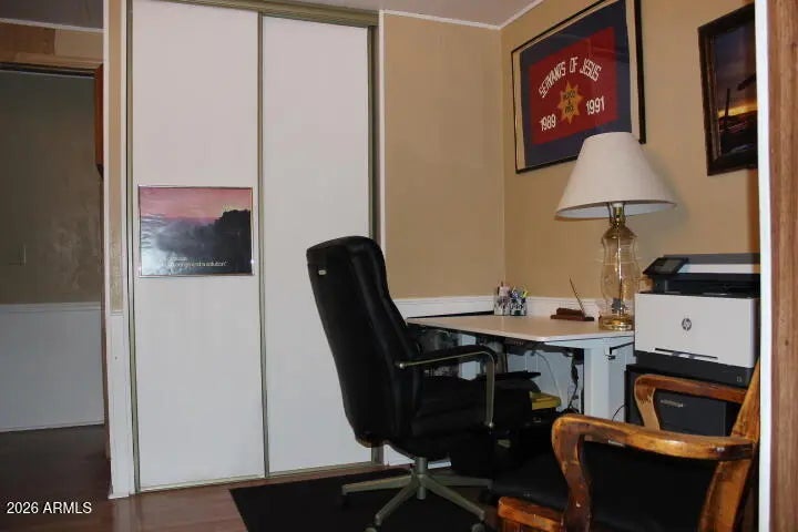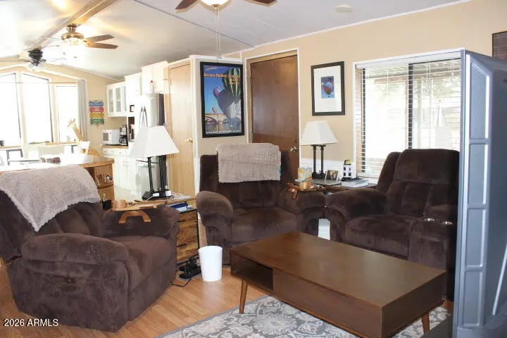 This beautifully maintained 2 bed, 2 bath manufactured home offers space, comfort, and versatility. A thoughtfully built extra room is perfect for a home office or optional guest bedroom. Enjoy year-round living with two Arizona rooms, ideal for relaxing or entertaining. The gorgeous kitchen with beautiful bay windows, features new appliances and abundant counter space. Storage is no issue with two sheds, including one conveniently located under the carport and an 11x11 Tuff Shed. An upgraded fire and water alert system adds peace of mind, making this home as practical as it is inviting.