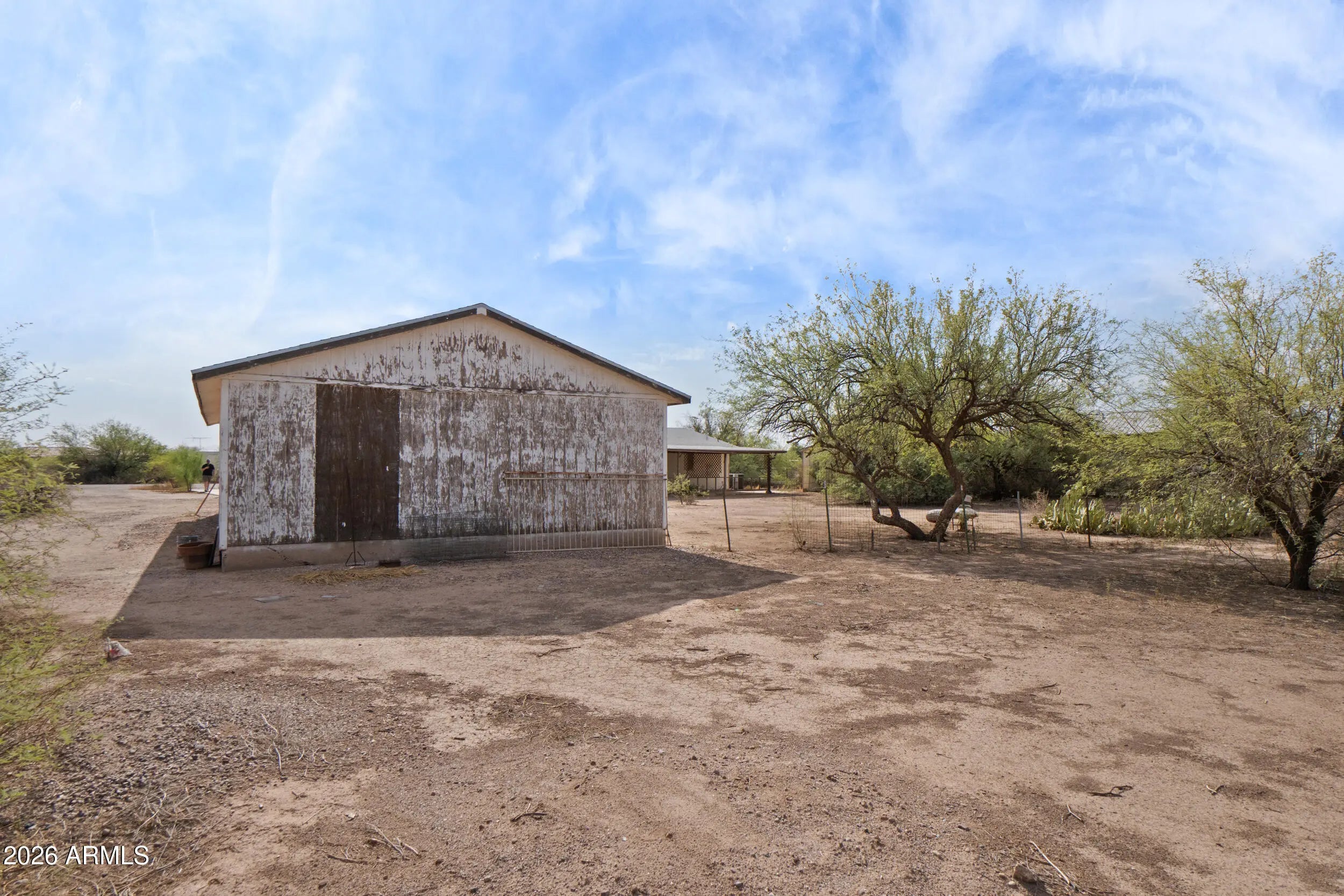 1.03-acre infrastructure-ready build site with no HOA, paved access, and existing utilities in place. Property includes established water, power, septic/sewer, and permitted improvements, offering significant time and cost savings versus a raw lot. Flat, usable parcel on a cul-de-sac with a 24×46 detached workshop / 4-car garage with power and concrete floors, two RV hookups, and additional storage shed. Existing 3-bed, 2-bath manufactured home allows interim use or removal to accommodate new construction. Ideal for builders seeking a ready-to-go site with strong access and flexibility. Easy I-10 access to Phoenix and Tucson.