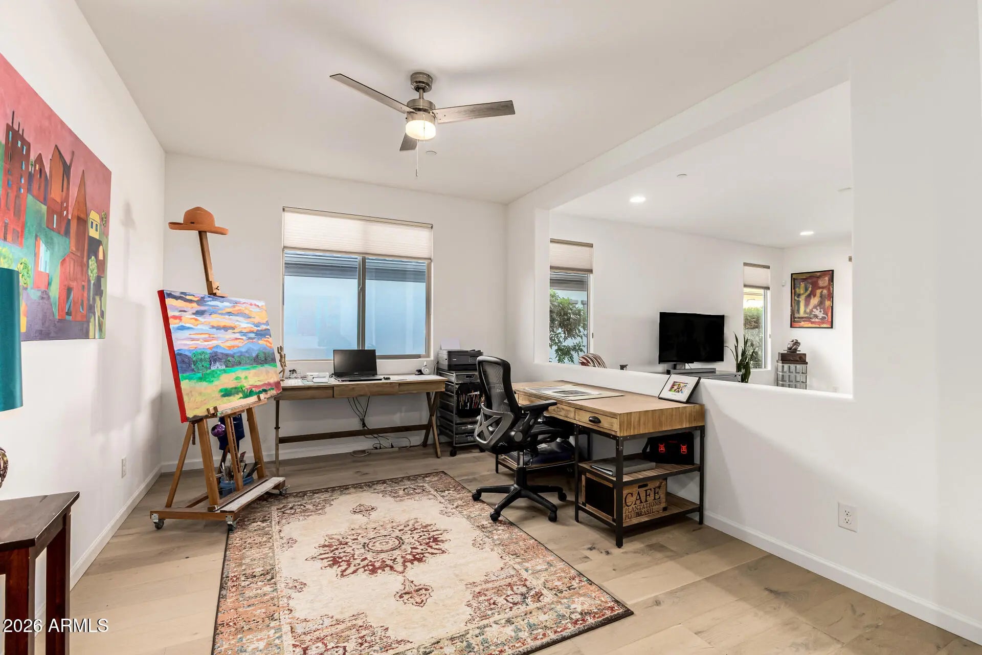 Impeccably maintained and thoughtfully upgraded, this like-new home presents an ideal blend of modern design and active adult lifestyle in the highly desirable 55+ community of Trilogy at Verde River by Shea. At 2,080 square feet, this residence offers two generous bedrooms, two full bathrooms and an additional versatile room, perfect as a third bedroom, home office, or craft room, to suit your unique lifestyle needs. Built just two years ago, this home feels brand new and showcases beautiful wood flooring, crisp new cabinetry, and pristine white Corian countertops that elevate everyday living. The open floor plan flows effortlessly, creating the perfect backdrop for both relaxed daily living and entertaining friends and family. Step outside to your own private backyard retreat, complete with professionally installed turf and a view-fence that frames unforgettable sunset and mountain views, making every evening feel like a postcard moment. Trilogy at Verde River is a vibrant 55+ community designed to support an engaging and active lifestyle. Residents enjoy a rich calendar of social activities, clubs, and events alongside resort-style amenities including a full clubhouse, state-of-the-art fitness center, restaurant, bar, pools, walking groups, hobby and interest clubs, pickleball and more! Located in an enviable setting with stunning desert vistas and year-round sunshine, this home offers not just quality and comfort but the freedom to live your best chapter yet.