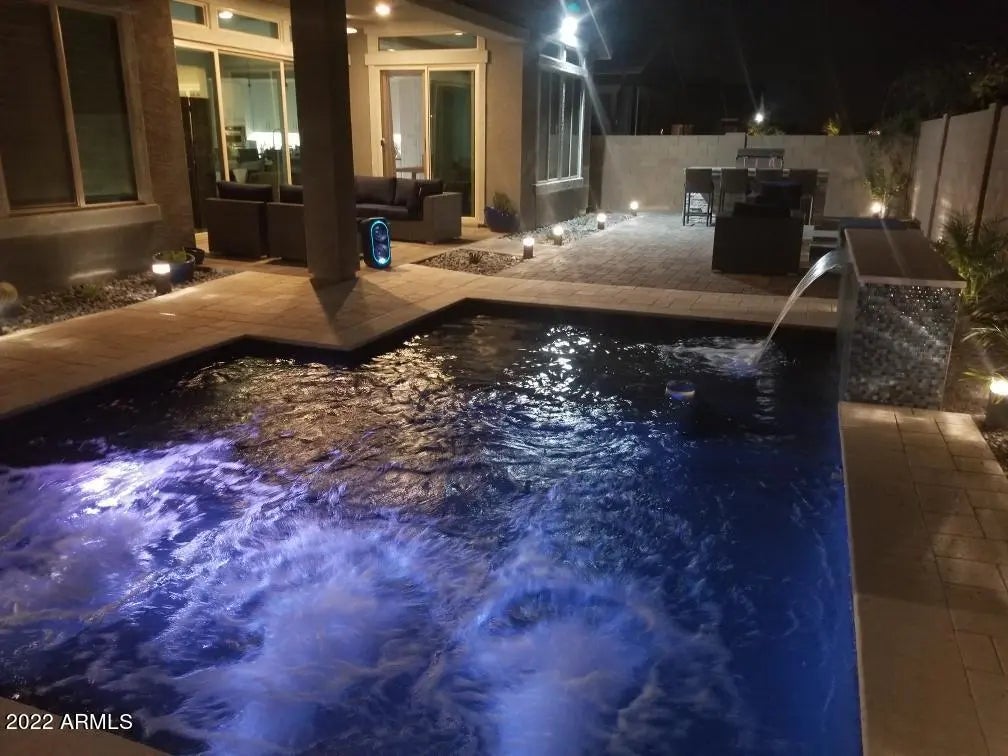 Come enjoy this partially furnished single level Luxury Rental at Morrison Ranch in Gilbert! Features include 3 bedrooms plus den/office with barndoor, 2.5 baths. Gourmet Kitchen with White Shaker Cabinets, Granite Counters, Stainless Steel Appliances, Butler's Pantry, huge island, gas cooktop/hood & under counter/cabinet lighting. Wood-like plank flooring throughout, accent wall, Shutters, neutral gray interior paint, alarm system & ring doorbell. Enjoy cooking at the built-in BBQ & entertaining on the back patio overlooking the sparkling heated saltwater pool! Don't miss out on this one-of-a-kind rental!