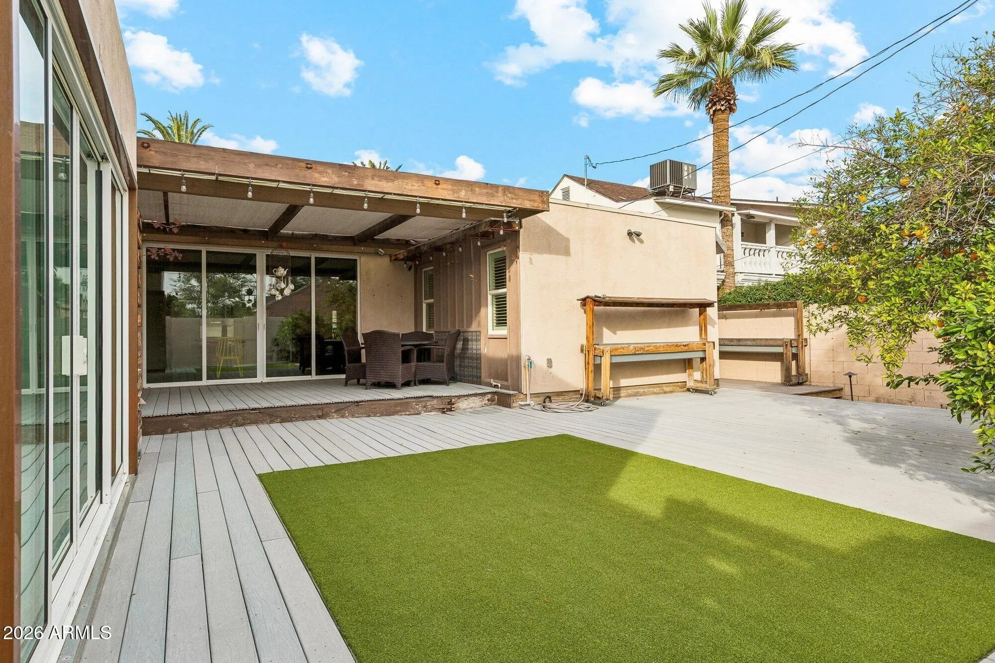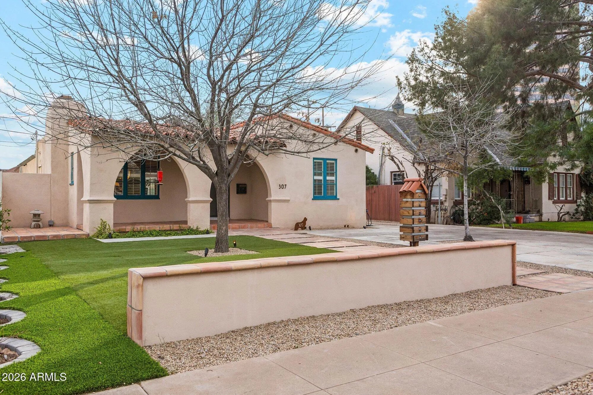 Experience refined living in this exceptional Spanish Colonial residence, ideally located in the highly desirable La Hacienda Historic District of downtown Phoenix. Rich in 1920s architectural character, the home has been thoughtfully updated to preserve its historic integrity while offering modern comfort and functionality. Beautiful back patio trex decking. The light-filled interior features an open-concept living and kitchen layout well-suited for today's lifestyle, complemented by a rare and private primary suite. Original architectural elements blend seamlessly with contemporary enhancements, creating a timeless yet refreshed atmosphere throughout. Outdoors, the property offers a beautifully landscaped yard with mature orange and lemon trees, along with a private porch ideal for relaxing or entertaining. Additional highlights include an EV charging station and a detached accessory dwelling unit, providing flexibility for guests, rental income, or a private workspace. A rare opportunity to own a distinctive historic home in one of downtown Phoenix's most sought-after neighborhoods.
