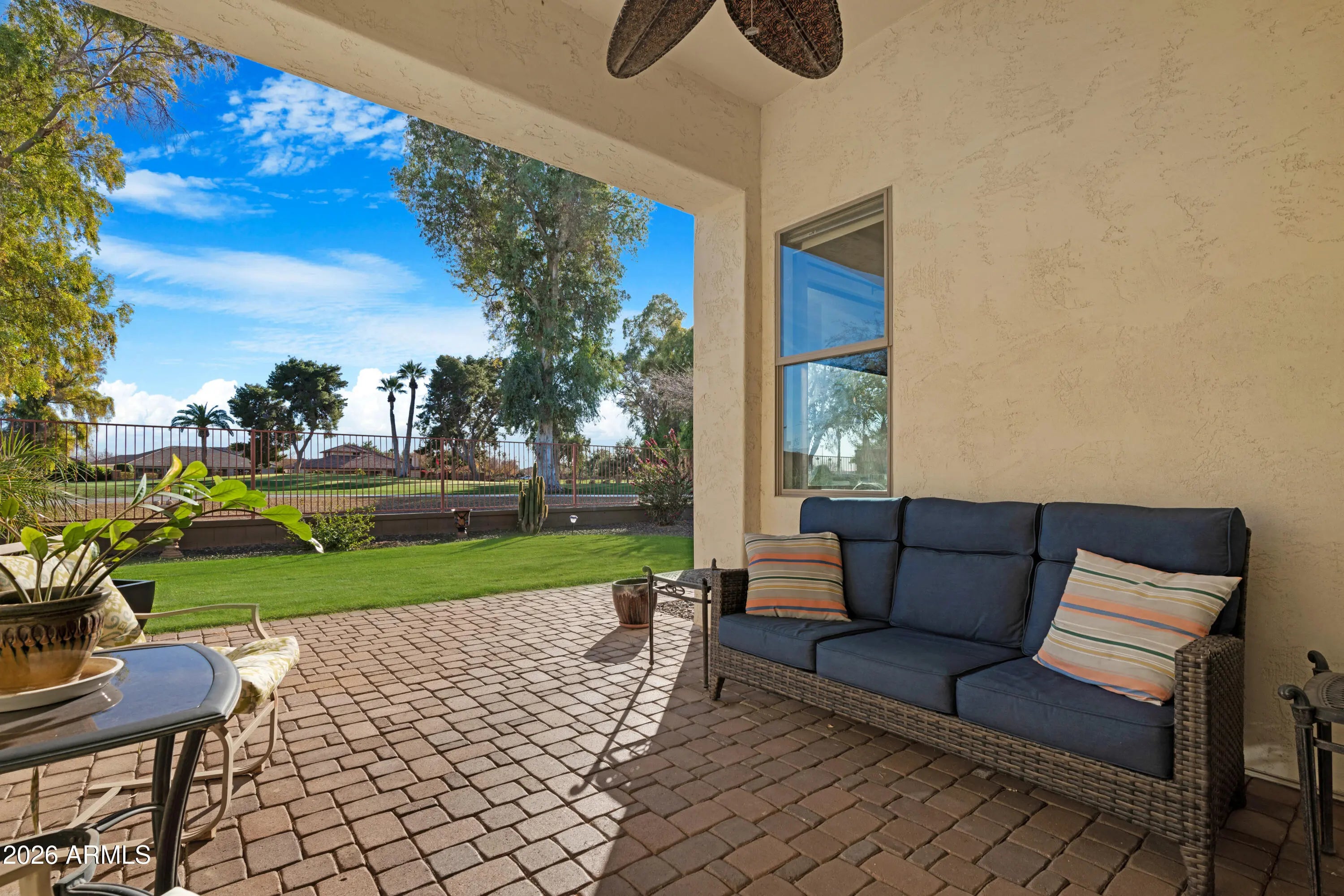 PAID SOLAR (only 5 years old) with 100% offset + NEW ROOF April 2025! Welcome to this stunning golf course home in the gated community of The Reserves at The Wigwam, perfectly positioned on the 13th green of the Wigwam Red Course—hello views, views, views! This single-level layout offers 2 bedrooms + den and 2 full baths in the main home, plus a private 400 sq ft casita with a full bath—ideal for guests, multigenerational living, or a home office. Enjoy vaulted ceilings, a bright open great room with sweeping golf course views, and a gourmet kitchen with custom cabinetry and granite counters. The spacious primary suite includes a luxe bath with a large spa shower. Step outside to a huge corner lot with an entertainer's courtyard and backyard oasis featuring a built-in BBQ, high-top bar with fridge, and unforgettable fairway views. 3 beds, 3 full baths, 2,531 sq ft. Don't miss this rare opportunity!