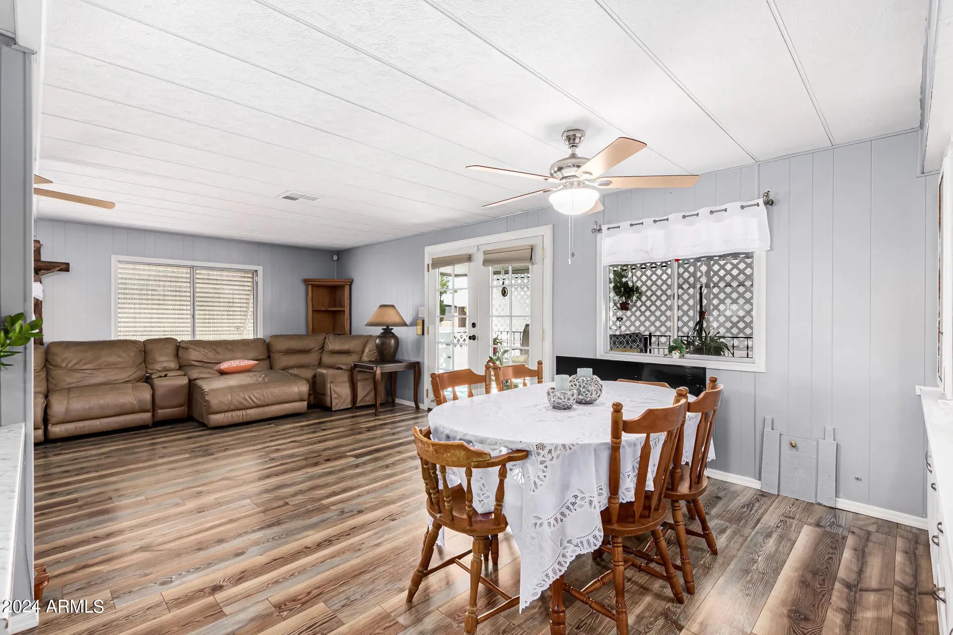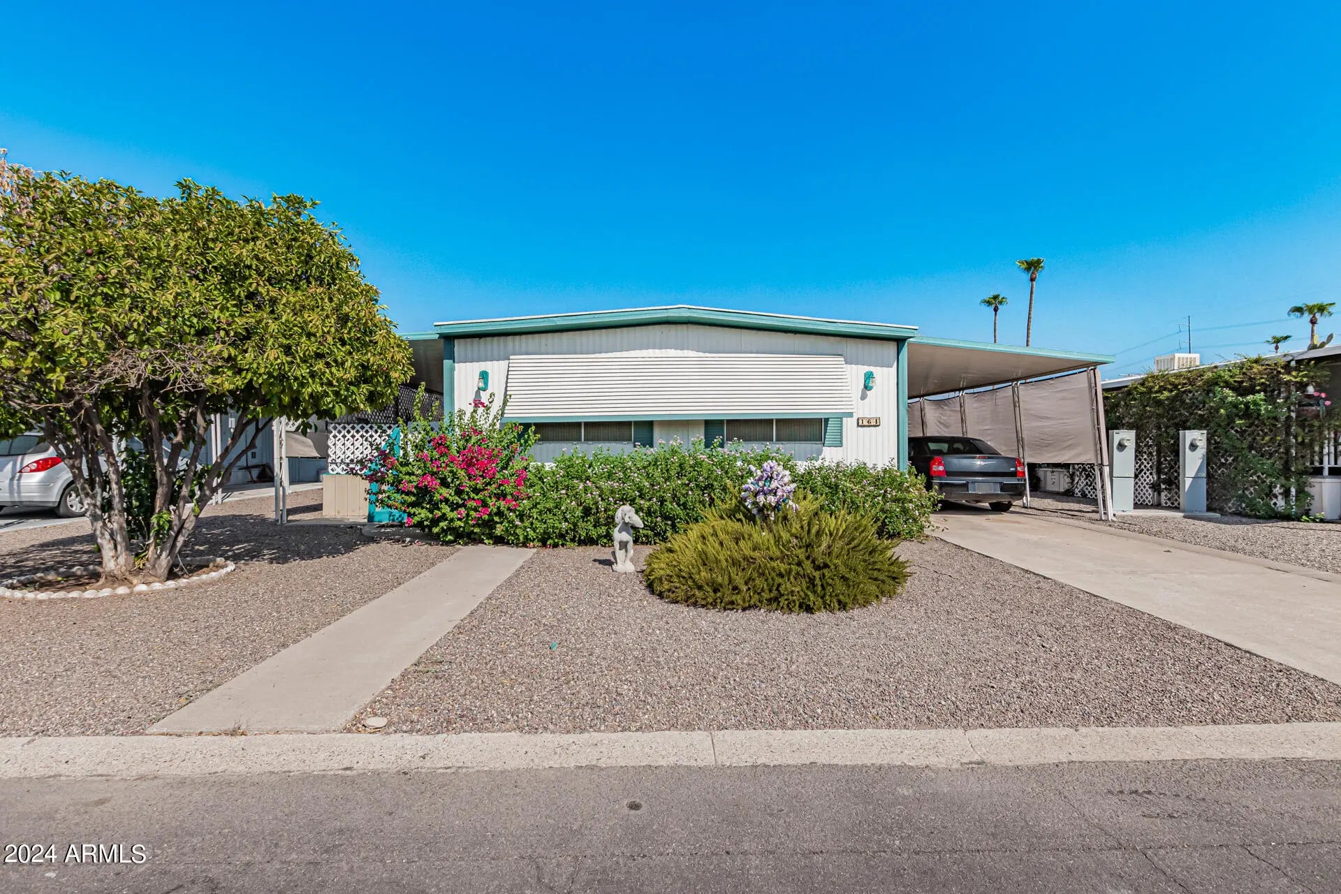 Don't miss the chance to own this 2-bedroom mobile home in Phoenix. Roof is 3 years old, AC/Heat is 2 years old, Flooring and bathrooms were recently renovated. It greets you with a semi-open floor plan displaying wood-look floors, a soothing palette, and a sizable living room. Enjoy your favorite meals in the formal dining room. The quaint kitchen features SS appliances, a tile backsplash, and ample counters. Get a good night's sleep in the main bedroom with a private bathroom and a walk-in closet. Unwind on the covered patio with your favorite drink. This 55+ community includes a clubhouse, spa, pool, and more! Come and experience it for yourself!