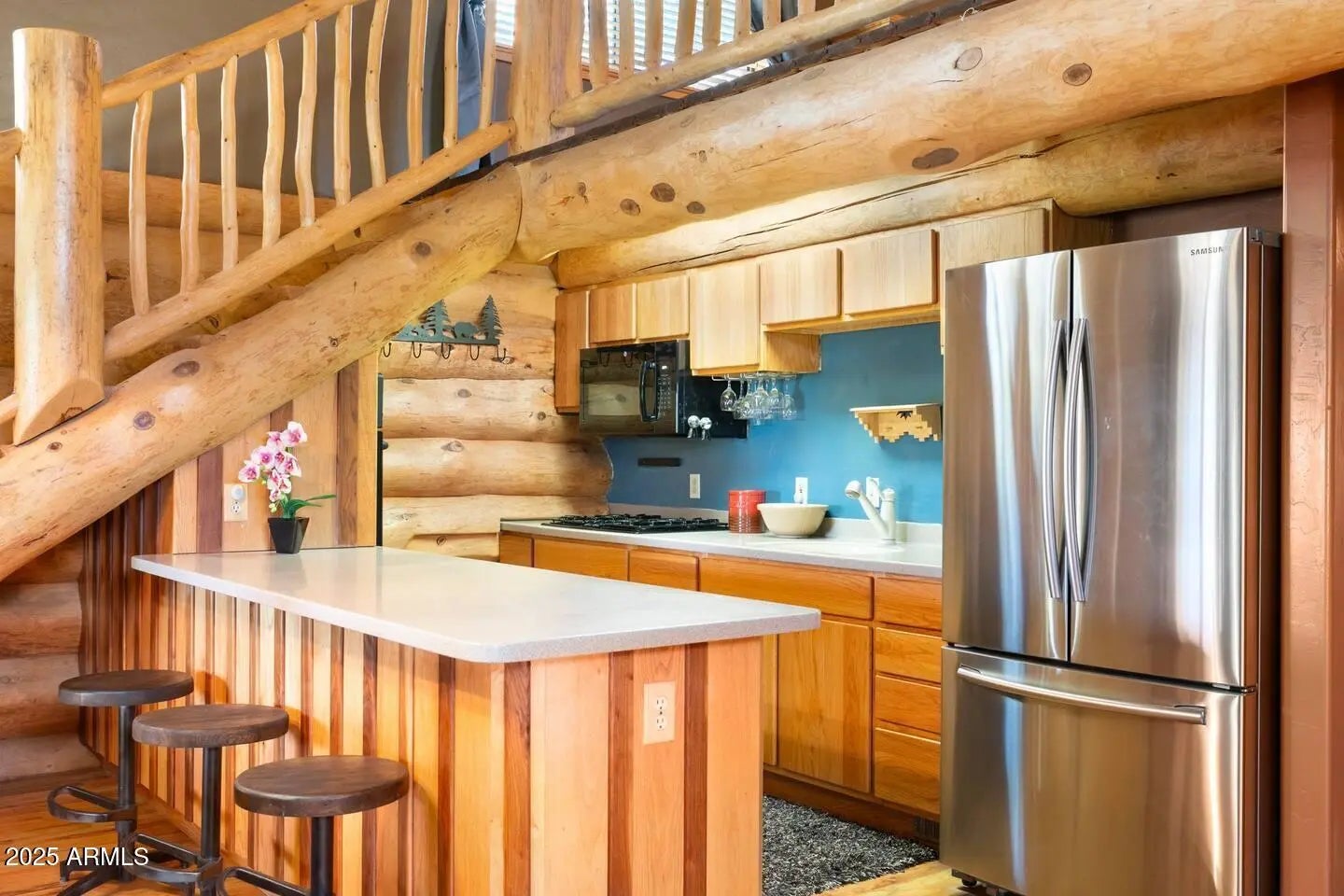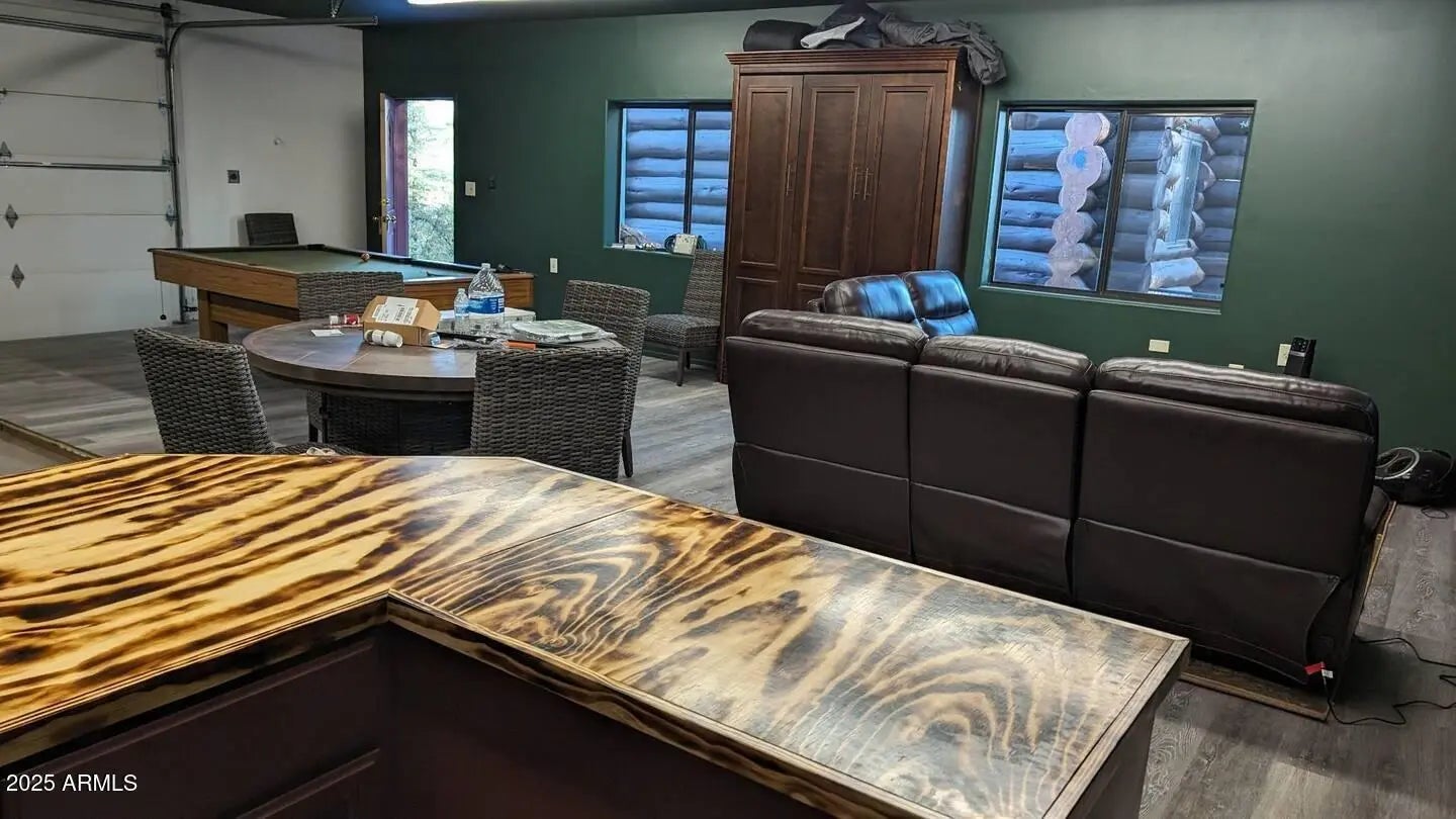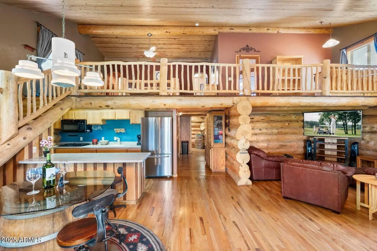 Prescott Gem! Custom Log Built Home with a Loft, Den & Game Room. Beautiful property with 2 combined lots that may be re-split if desired. Close to town square in the Hassayampa Forest with breathtaking VIEWS! Dramatic oversized logs installed w/Canadian Craftsmanship. Main level includes a large great room w/gorgeous vaulted ceilings, wood burning fireplace, kitchen, dining area & a custom bedroom/bath. Upper level features large owners suite with private balcony, office/loft, bath and walk-n-closet. Lower level includes 3rd bedroom/bath, theater/family room, walk in closet, large spare storage room and guest kitchen. Tons of storage thru out, 3 car garage + ATV parking, custom metal roof & a SEPERATE LARGE ENTERTAINMENT/GAME ROOM W/SLEEPING QUARTERS! Come live that Prescott VIP Life!
