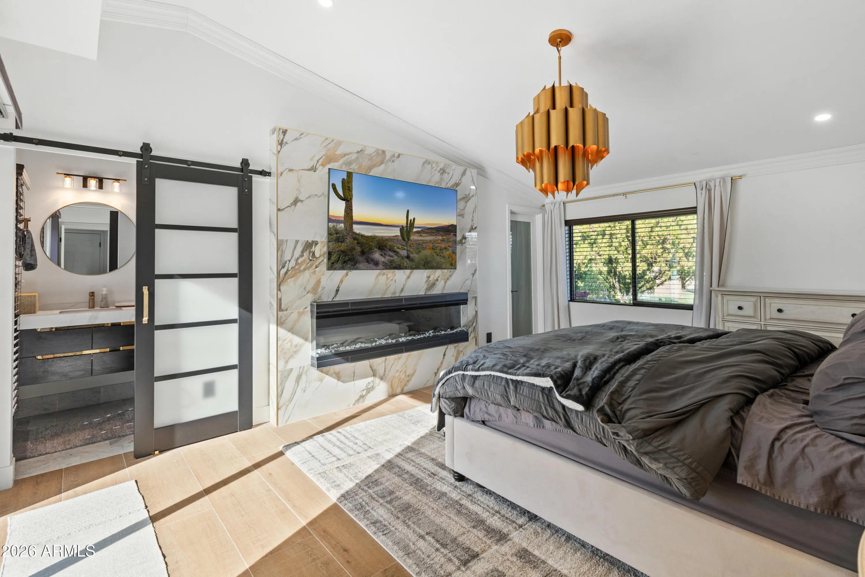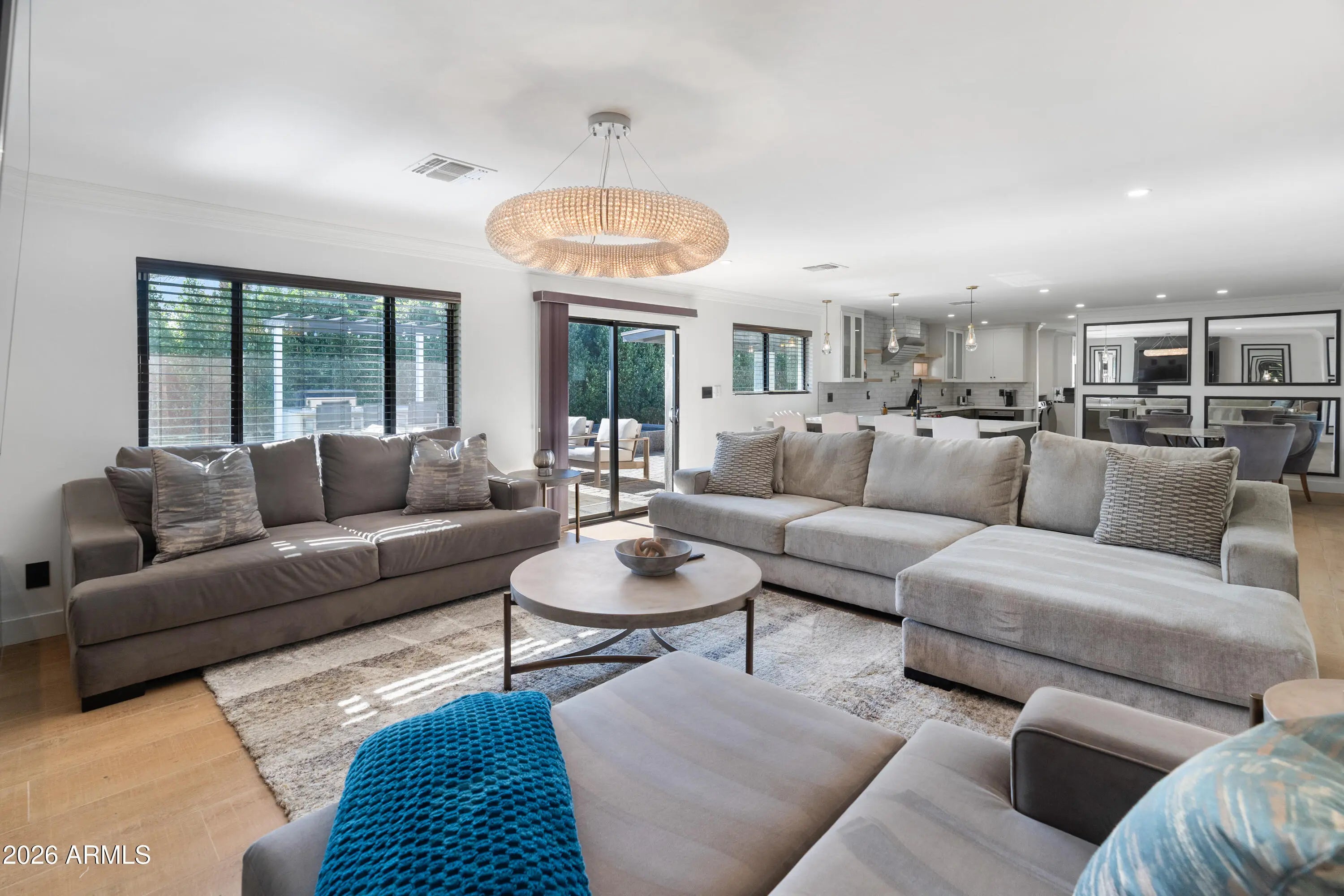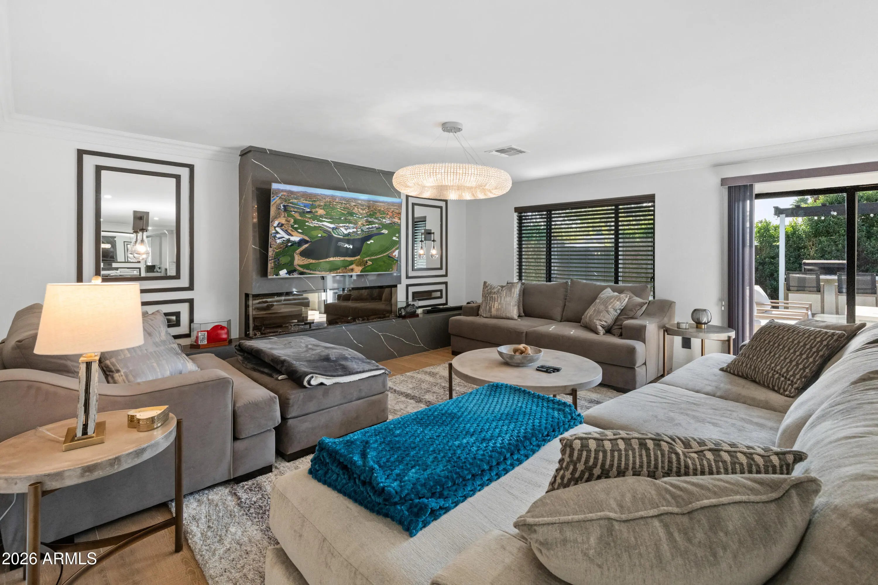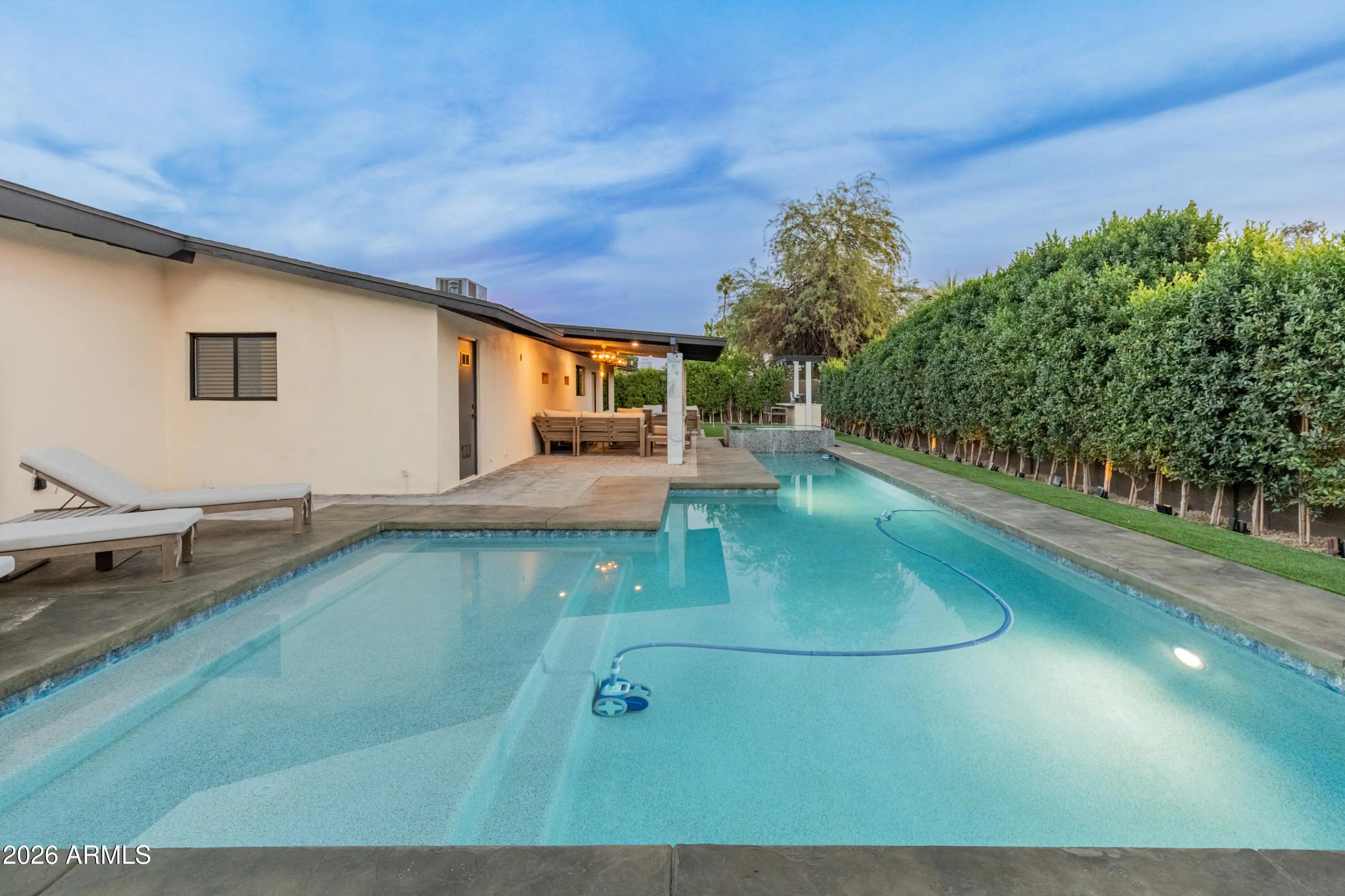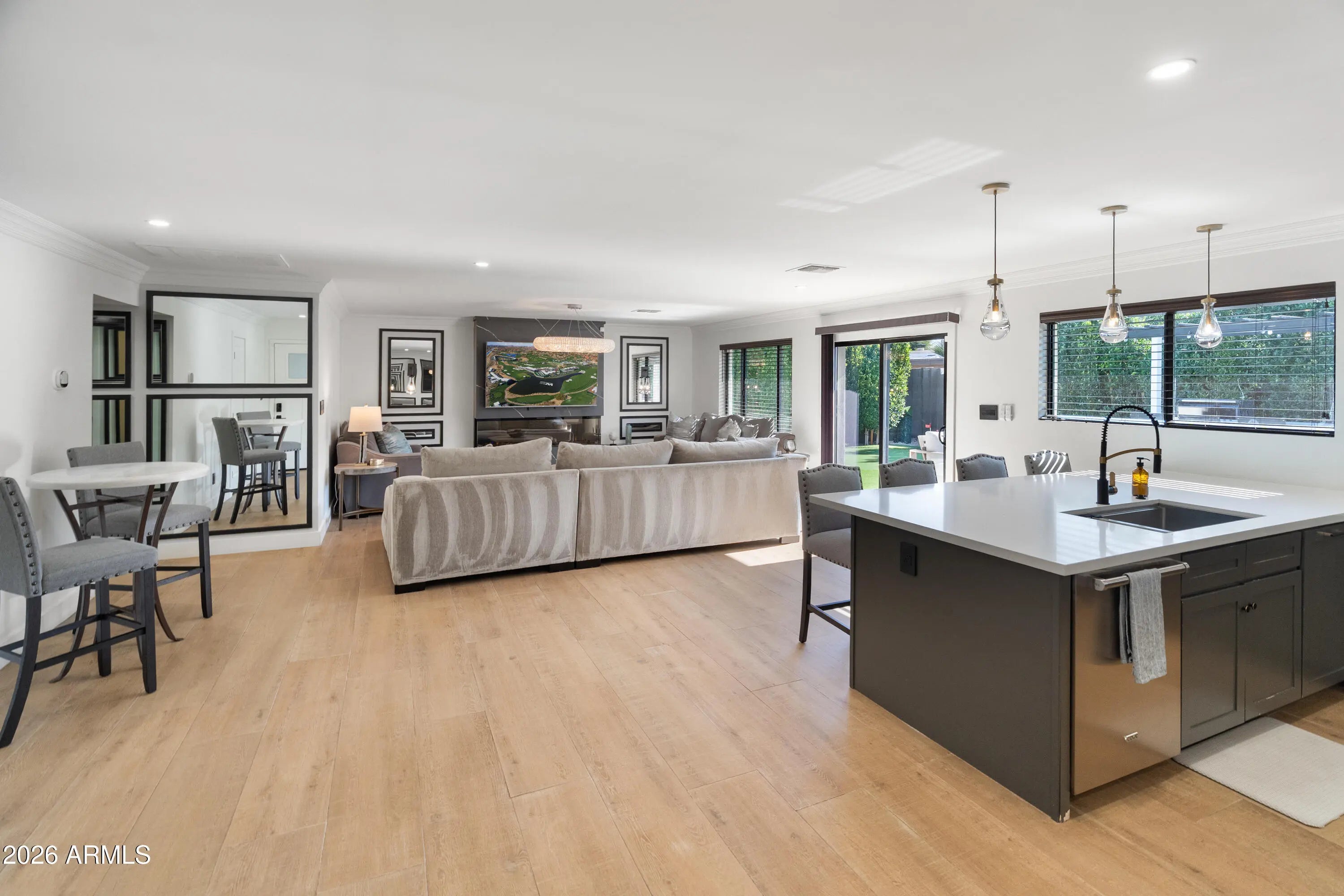 Beautifully renovated in the heart of Scottsdale, this thoughtfully designed home blends luxury, comfort, and versatility. The open-concept layout features light-filled living and dining spaces anchored by a statement fireplace and designer lighting, flowing seamlessly into the resort-style backyard. The chef's kitchen is equipped with premium Wolf, Sub-Zero, and Cove appliances and opens to a covered patio overlooking the heated executive pool, spa, built-in BBQ, and private mini-golf green—perfect for both entertaining and everyday enjoyment. With four bedrooms including two primary suites, the split floor plan offers flexibility for guests, multi-generational living, or a private home office. Additional highlights include a 2-car garage with EV charging, new roof, HVAC, electric, windows, landscaping, and morenearly everything is new. A rare Scottsdale retreat offering privacy, style, and modern convenience.