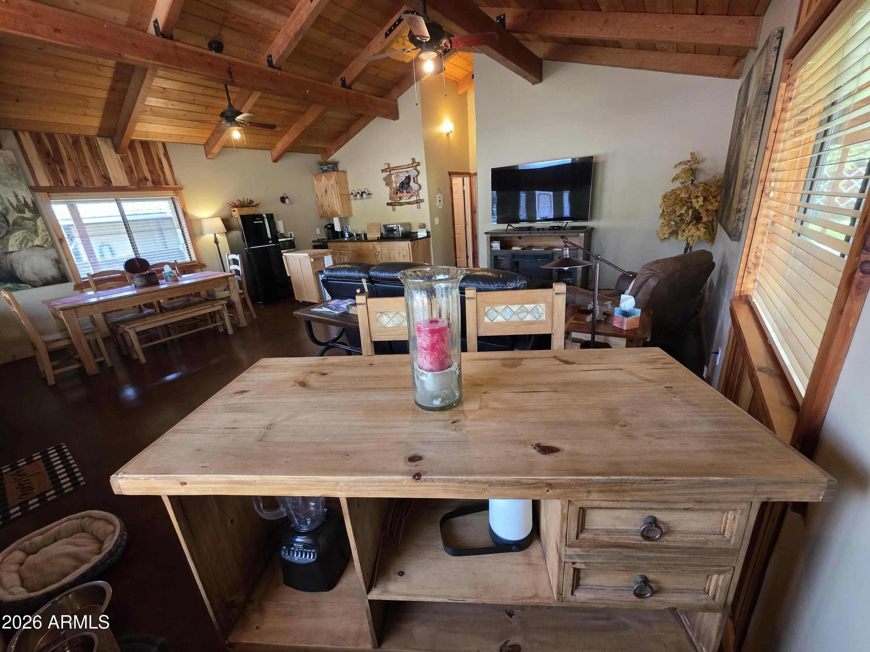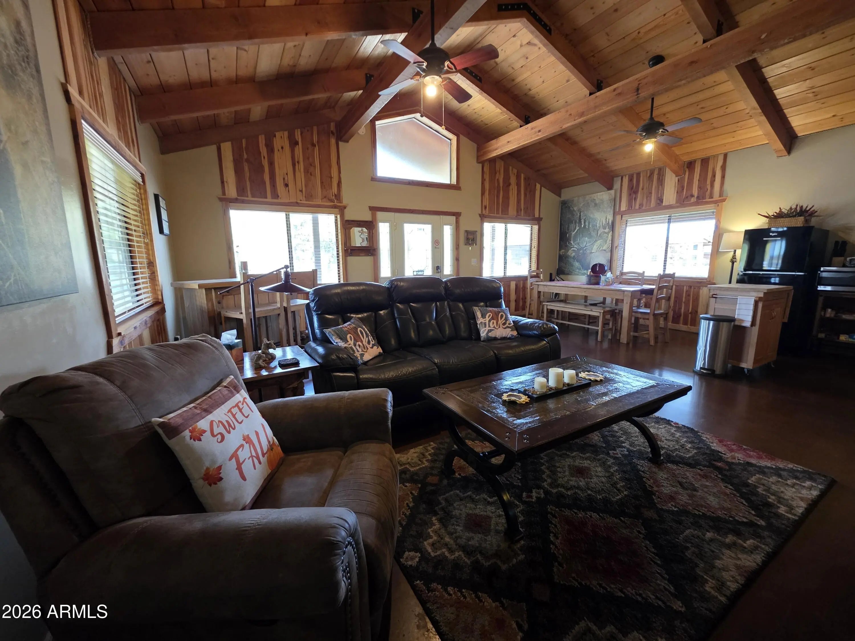 Escape to your own fully furnished mountain retreat just steps from the shores of Rainbow Lake. This charming 2-bedroom, 1-bathroom cabin offers the perfect blend of comfort, convenience, and year-round enjoyment. A highly successful short-term rental, it's an ideal opportunity as a personal getaway, family retreat, or income-producing property. Designed to comfortably sleep up to six guests, the cabin features a spacious primary bedroom with a queen bed and TV, while the guest bedroom includes a queen bed plus full-size bunk beds. All beds are high quality, ensuring a restful night after a day of lake adventures or mountain exploring. The open living area is warm and inviting with in-floor heating, an electric fireplace for added ambiance, and a 65 inch flat screen TV with high speed internet. Two well-appointed bedrooms feature quality beds, including a primary with queen bed and TV, plus a guest room with a queen and full-size bunk beds. The dining area seats seven, and the efficient kitchen with gas cooktop makes meals easy after a day at the lake. At 6,800 feet in elevation, the cabin enjoys pleasant summer temperatures, typically in the mid 80s, with cool mountain air flowing through open windows. For added comfort during warmer days, portable air conditioning units are provided in the main living area and each bedroom. Additional portable heaters are also available in every room for customized comfort year round. Step outside to a wraparound deck ideal for entertaining, complete with a propane BBQ, picnic table, and outdoor seating. The fully fenced yard offers peace of mind for children and pets, creating a safe and enjoyable outdoor space. A gravel drive provides ample parking with room for a boat, and the lake's boat launch and fishing dock are just around the corner. This cabin truly captures the spirit of mountain living with thoughtful upgrades and inviting spaces both inside and out, making it a perfect mountain home for any use. The seller is happy to share rental rates and occupancy history, adding transparency for prospective investors or vacation homeowners.