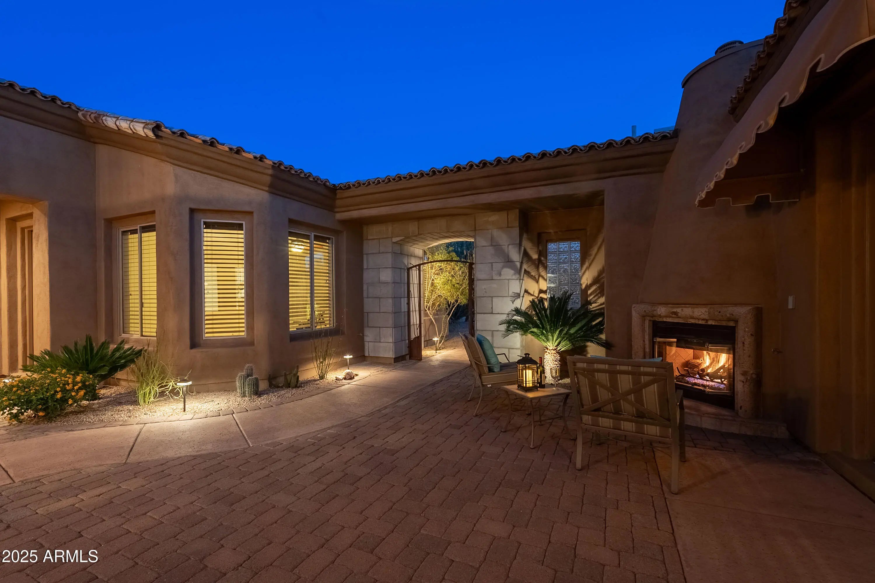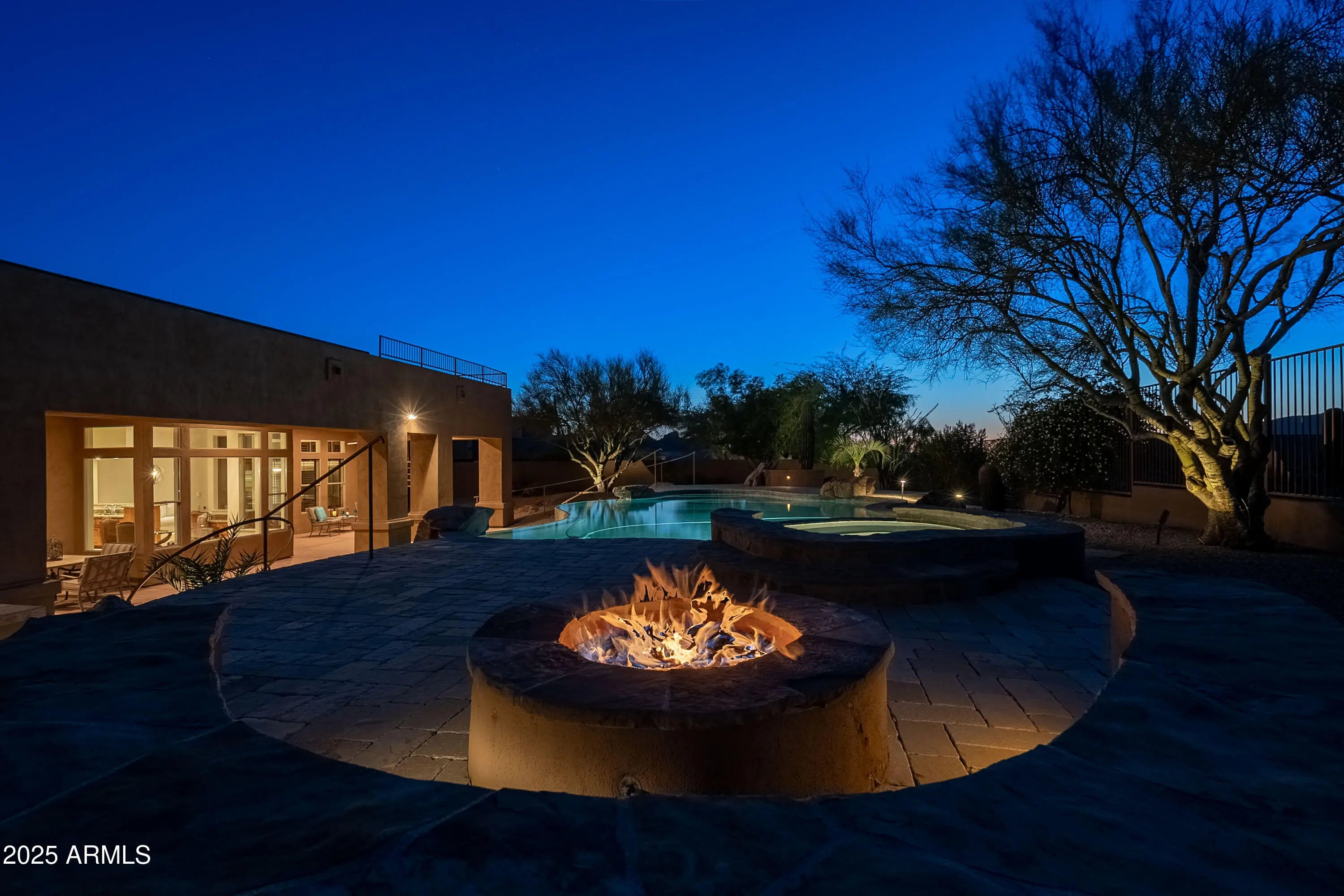 Welcome to North Scottsdale's best-kept secret: a luxurious private gated community that perfectly blends elegance and tranquility. This stunning custom home features a coveted floor plan with a split master suite and a separate casita, providing ample space and privacy for you and your guests. Inside, you'll find three spacious bedrooms, each with en-suite baths, plus a bonus room and den in the main home. The primary suite is a true retreat, boasting a cozy fireplace, sitting area, and a spa-like bathroom with dual vanities, a makeup vanity, a walk-in shower, and a soaking tub. Enjoy high-end finishes throughout, including granite countertops in the chef's kitchen and plantation shutters, complemented by a dedicated bar space for entertaining. Step outside to experience Arizona living at its finest with a heated negative edge pool and spa, gas BBQ, and firepit, all set against breathtaking, unobstructed, mountain views. The outdoor kitchen and expansive patio create the perfect setting for gatherings or serene evenings under the stars, with a gently sloped path leading up from the patio to the negative edge pool for easy access. The layout includes multiple flex spaces and two living rooms, ideal for both relaxation and entertainment, while the bonus room is perfect for kids or a home office, featuring a built-in desk. A charming studio casita off the front courtyard serves as an ideal space for a home office, workout area, or art studio. A spiral staircase leads to a rooftop terrace, providing an unparalleled vantage point for enjoying the gorgeous North Scottsdale sunsets. This exquisite home offers a rare opportunity for discerning buyers seeking privacy and comfort in a serene setting. Don't miss your chance to experience luxury living in this prestigious, private community. The layout includes multiple flex spaces and two living rooms, ideal for both relaxation and entertainment, while the bonus room is perfect for kids or a home office, featuring a built-in desk. A charming studio casita off the front courtyard serves as an ideal space for a home office, workout area, or art studio. A spiral staircase leads to a rooftop terrace, providing an unparalleled vantage point for enjoying the gorgeous North Scottsdale sunsets. In addition there is owned solar that transfers to the buyer for added savings on all utilities! This exquisite home offers a rare opportunity for discerning buyers seeking privacy and comfort in a serene setting. Don't miss your chance to experience luxury living in this prestigious, private community.