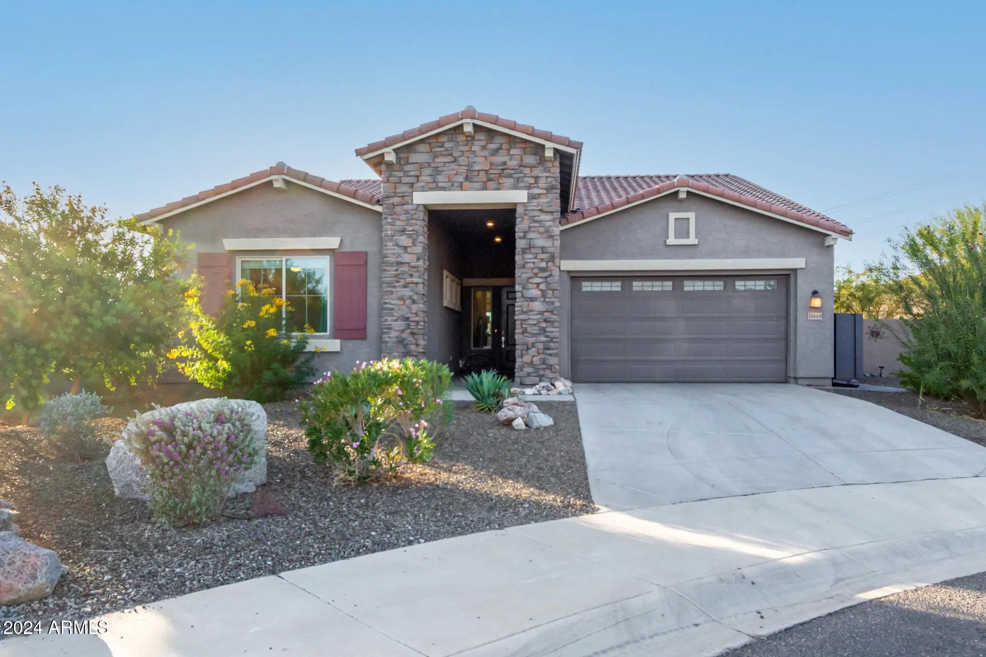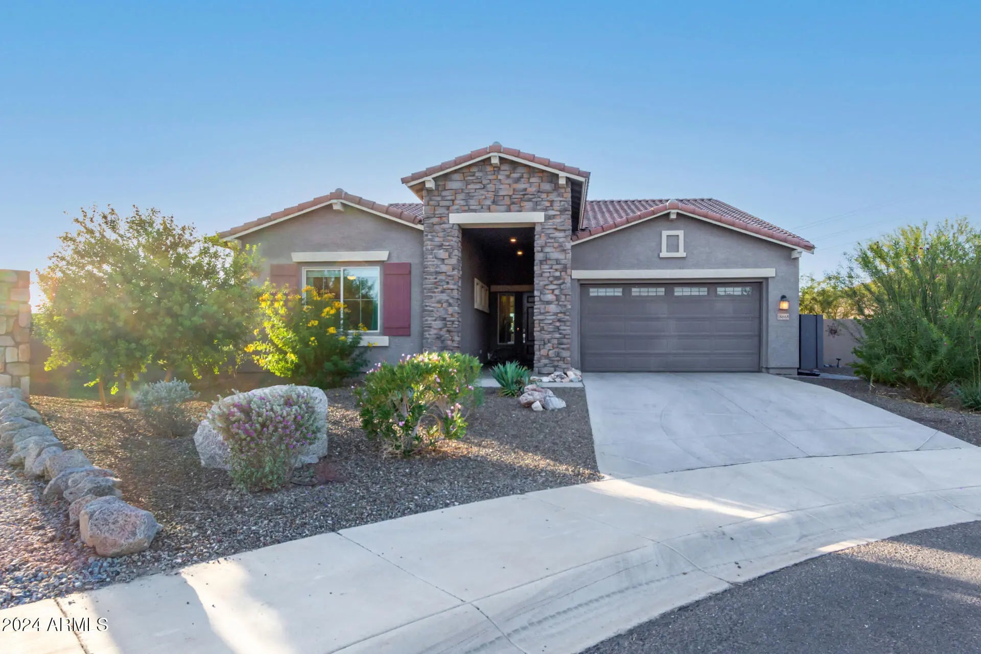 SELLER $10K CREDIT FOR RATE BUY-DOWN OR CASH OFFER PRICE REDUCTION!! Welcome to your dream cul-de-sac home! This gorgeous 3-bedroom, 2.5-bath gem features 4-CAR garage, beautiful stone facade, mature landscaping and HEATED POOL!! Inviting and wide foyer leads to open and bright great room with high ceilings, a soothing palette, clerestory windows that bathe the space with natural light, and attractive wood-look flooring. The delightful kitchen comes w/quartz counters, abundant wood cabinetry w/crown moulding, pendant and recessed lighting, stainless steel appliances, walk-in pantry, and island w/breakfast bar. The main bedroom offers an ensuite with double sinks, extra vanity space and double walk-in closets! Enjoy majestic sunsets in the backyard, boasting a covered patio, stylish pavers, breathtaking MOUNTAIN VIEWS, and HEATED POOL to enjoy year round!
