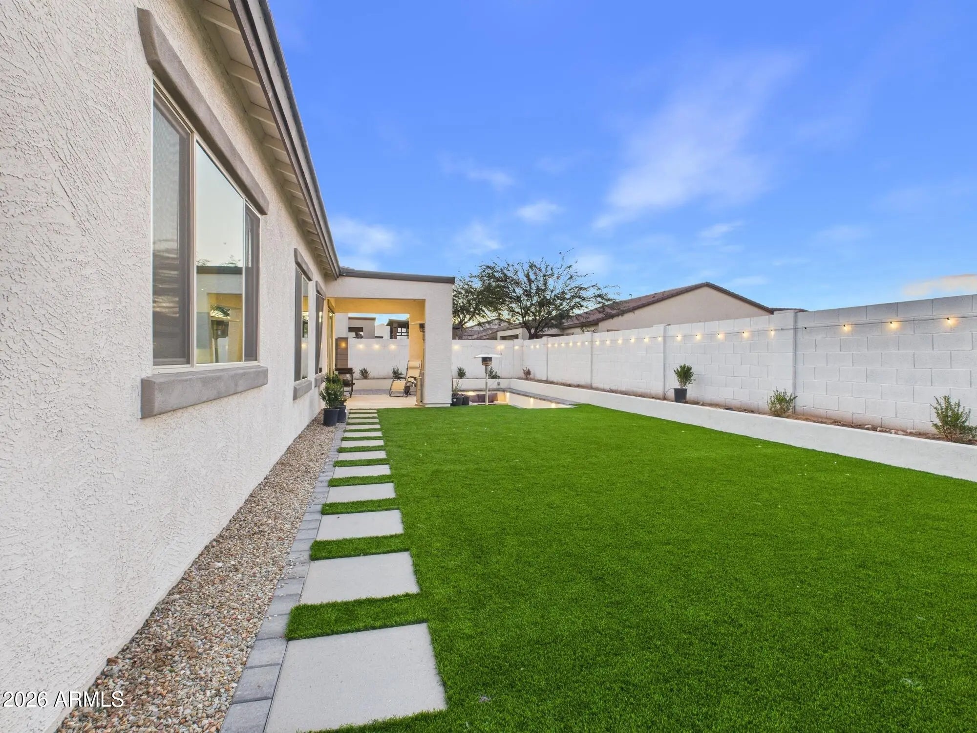 North/South Exposure, Gravel/Stone Front, Grass Back, Synthetic Grass Back