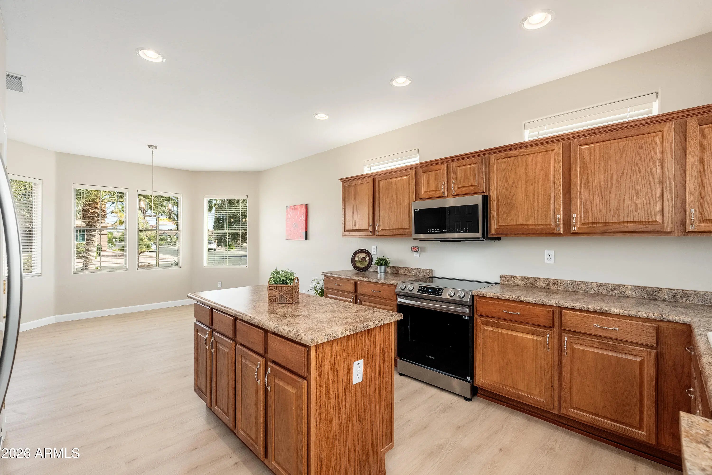 Your Arizona Dream Starts Here. Light, bright, and move-in ready, this popular Sierra floor plan is ideally situated on a premium corner lot in the highly sought-after Sun City Grand community. The home has been recently refreshed with updated interior and exterior paint, LVP flooring, baseboards, bath vanities, lighting, ceiling fans, and an updated patio door, creating a clean, modern look throughout. The kitchen features a recently updated complete Samsung stainless steel appliance package, enhancing both style and functionality. The open, airy layout is filled with natural light and designed for easy living, whether full-time or seasonal. Enjoy all that Sun City Grand has to offer, including golf, recreation centers, and an active lifestyle just minutes from shopping and dining. At this price point, a home this well-updated and truly move-in ready should not last long. Seller to provide a home warranty through Elevate HomeScription. Furniture is staged and available outside of escrow.