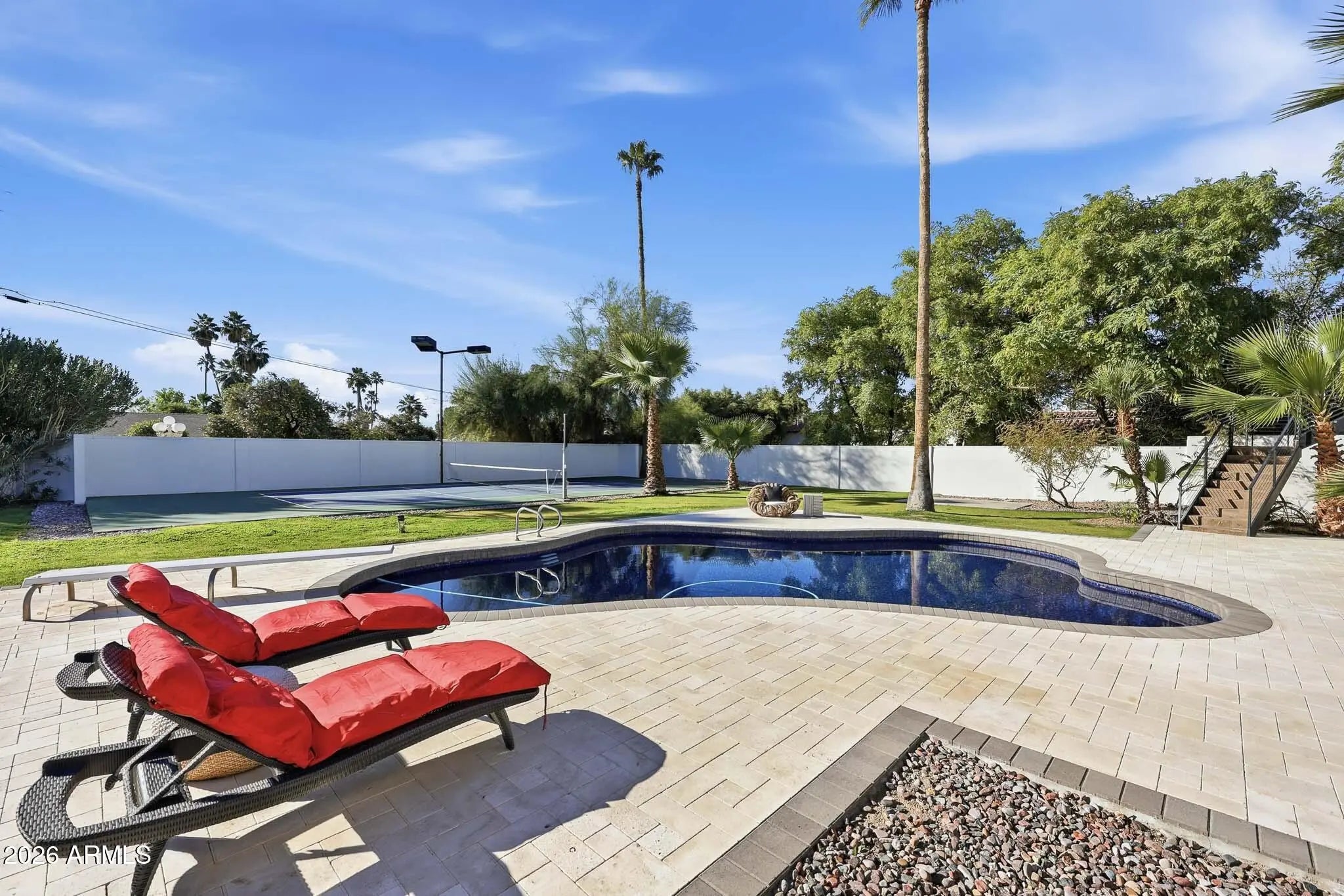 *VOTED BEST HOME ON TOUR* Arcadia Proper Modern Estate | 7,400+ SF | Unobstructed Camelback Views | Private Guest Residence. Set on an expansive Arcadia lot with direct Camelback and Papago views, this contemporary estate delivers exceptional scale, privacy, and true separation. Open, light-filled living spaces center around a chef's kitchen with Wolf and Sub-Zero appliances, dual dishwashers, and an oversized marble island built for entertaining. Seamless indoor-outdoor flow connects the home to resort-style grounds featuring a full pickleball court, expansive pool, rare natural grass lawn, and protected mountain views. A fully independent guest residence -- complete with its own kitchen, living area, dining space, and private balcony... offers rare flexibility for multigenerational living, extended stays, executive workspace, or live-in support. Recently refreshed and pre-inspected, including new AC systems, full interior repaint, refinished hardwood floors, new shutters, epoxy garage floor, and inspection items addressed. Move-in ready. Substantial in both land and square footage. Rare for Arcadia Proper.