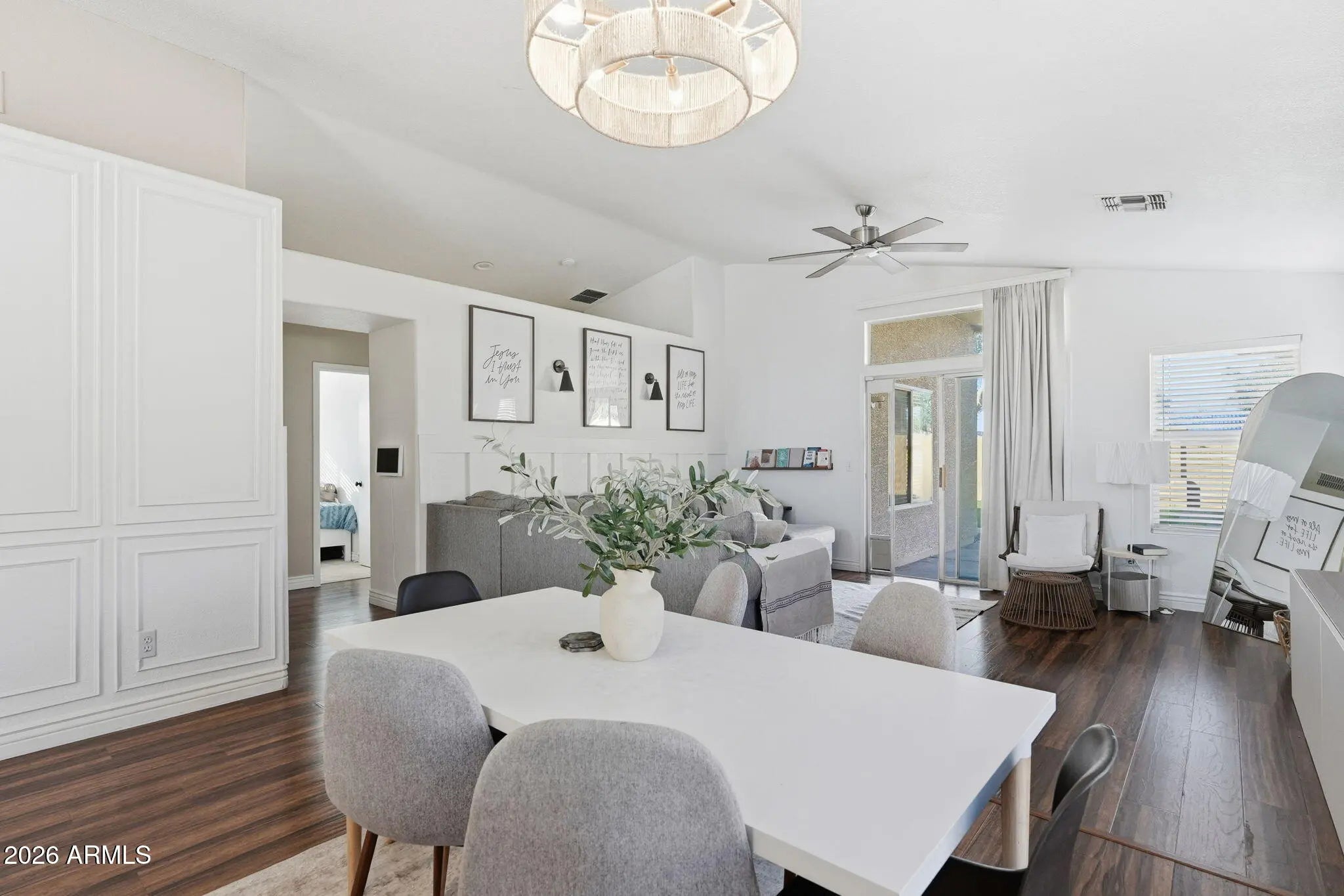 Welcome to this bright and open 4-bedroom, 2-bath home, thoughtfully designed for comfortable family living. The open-concept layout offers inviting living spaces filled with natural light, perfect for everyday living and entertaining. Spacious bedrooms provide flexibility for a growing family, home office, or guests. Enjoy a well-maintained backyard featuring low-maintenance turf—ideal for play, pets, or relaxing outdoors. Conveniently located near shopping, dining, and easy access to Loop 202, this home offers the perfect balance of comfort, convenience, and lifestyle.