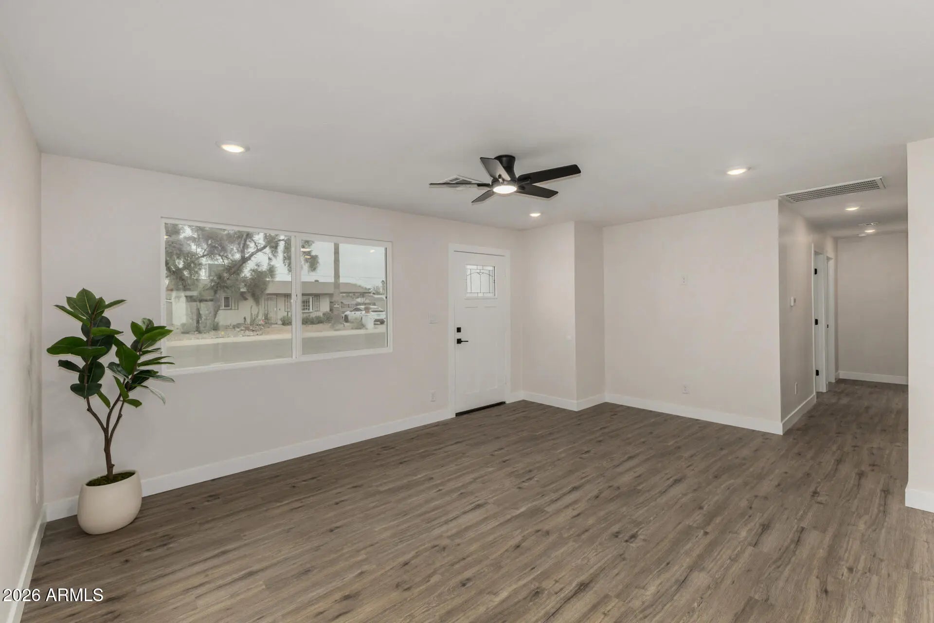 Fully remodeled from top to bottom, this home is truly like new and turnkey--move-in ready and loaded with upgrades. Updates include a new roof, new HVAC with new ductwork, a new electrical panel and full home re-wire, new waterproof vinyl flooring throughout, new windows and doors, new baseboards and trim, a new water heater, and fully renovated kitchen and bathrooms. The brand-new kitchen features new cabinets/counters and new appliances. Enjoy the added value of an RV gate, covered patio, and a huge backyard with plenty of room to create your dream outdoor space, plus a storage shed for extra space. No HOA. The location is hard to beat, just a 5 minute drive to the I-51 freeway and within walking distance to Great Hearts (K-12) charter school. A rare find wit this level of renovation.