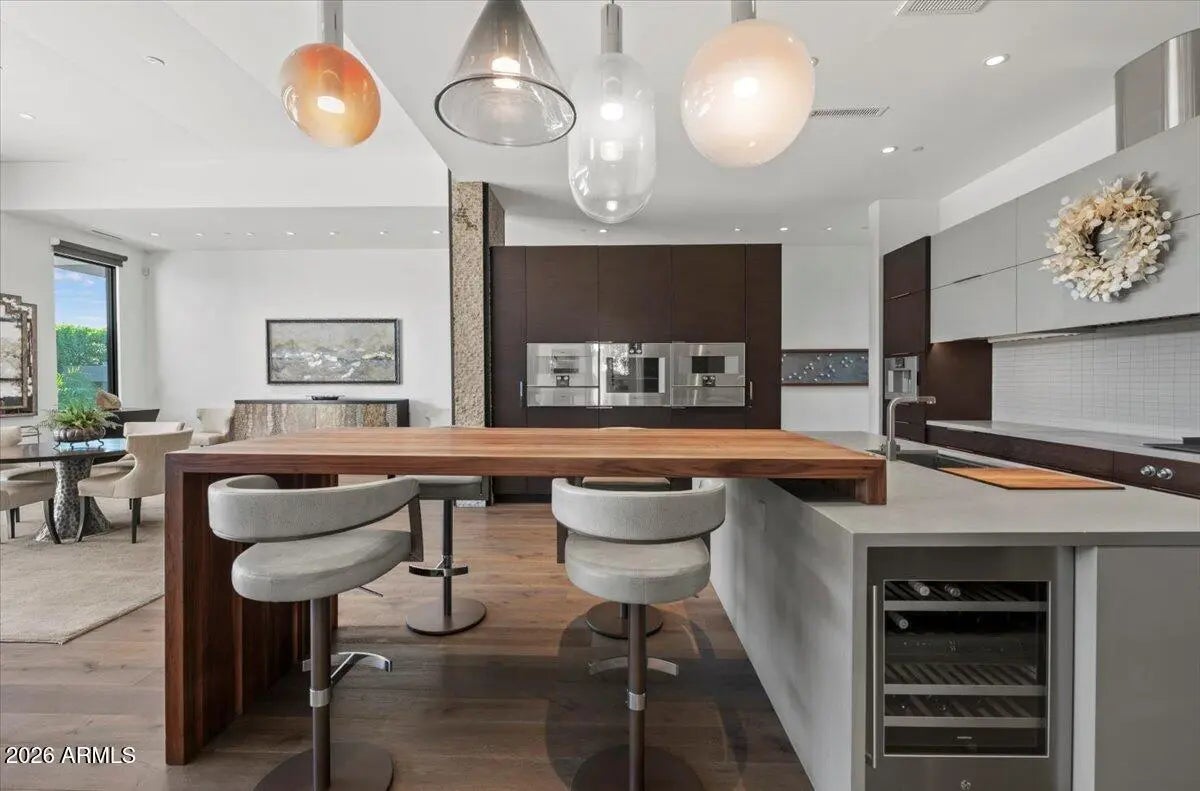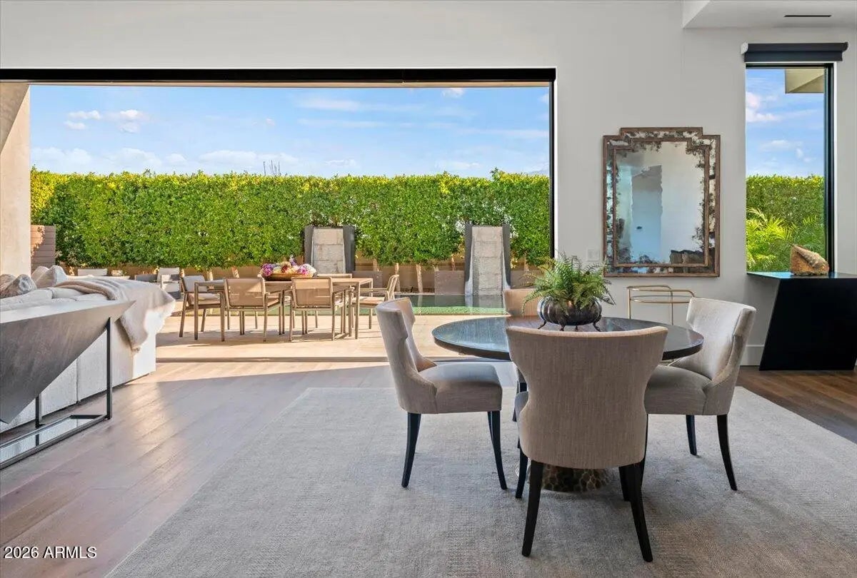 Priced aggressively to sell! Camelback views within a guard-gated enclave, this Paradise Valley residence feels like a true oasis—private, refined, and effortlessly livable. Thoughtfully designed for low-maintenance, lock-and-leave living, the home provides a calm retreat. Interior spaces feature 13' ceilings, abundant natural light, and a versatile layout suited for both daily living and entertaining. Enjoy a chef's kitchen that showcases Gaggenau appliances, quartz countertops, custom cabinetry, and artisan wood bar seating. A 564 SF casita offers flexible use as a guest house or private office. Upstairs, a dedicated office captures sunset views of Camelback and Mummy Mountains, while the lower level includes two spacious bedrooms, a media room, and a full wet bar. True lock-n-leave! a resort-style pool with an integrated outdoor grill and Infratech patio heaters, creating an inviting space for entertaining. An elevator adds convenience and accessibility throughout. This is refined Paradise Valley livingsecure, low-maintenance, and thoughtfully designed for modern lifestyles while remaining close to the Valley's top shopping, dining, and nightlife.