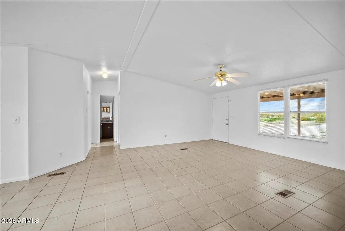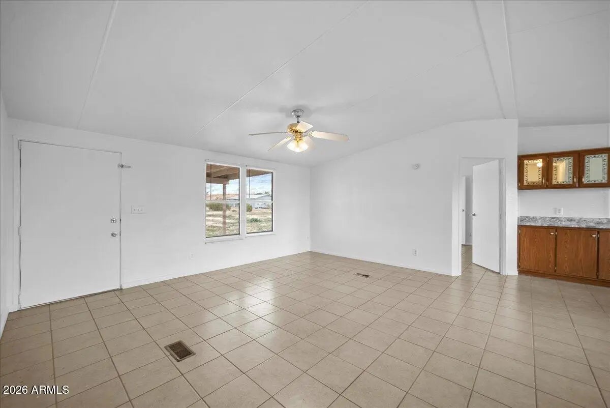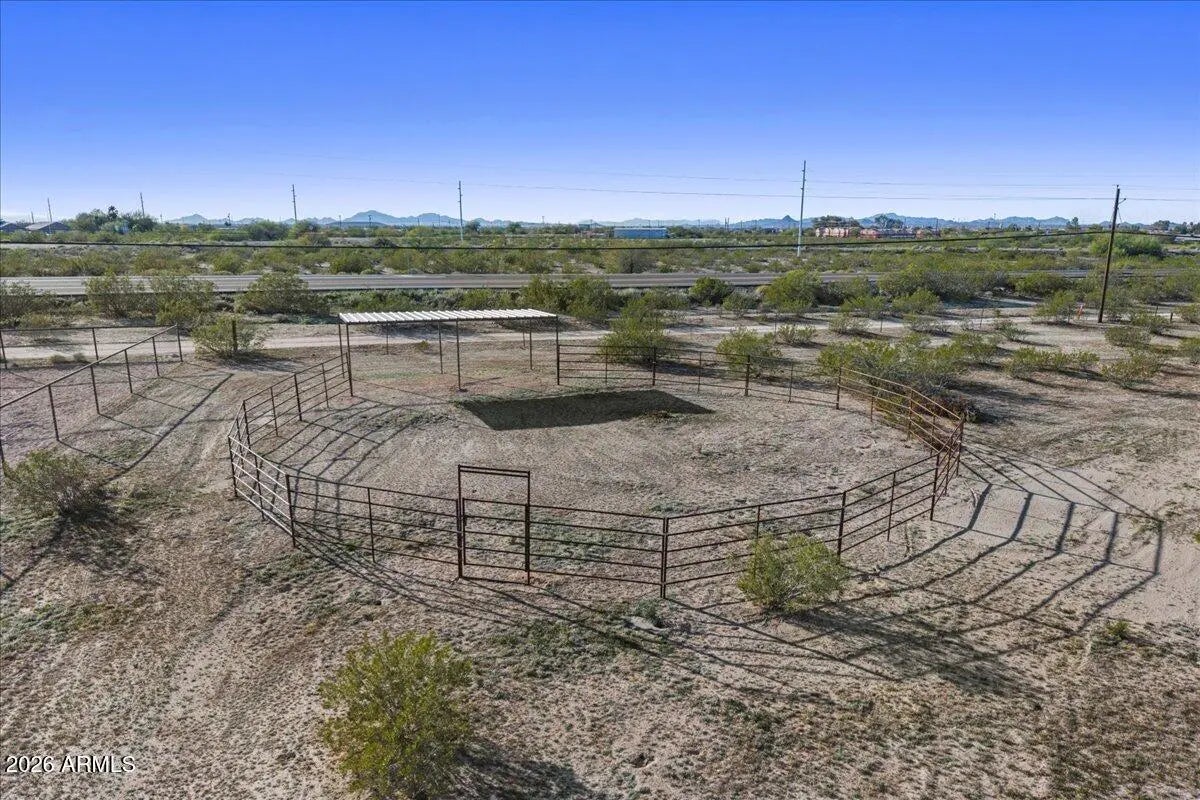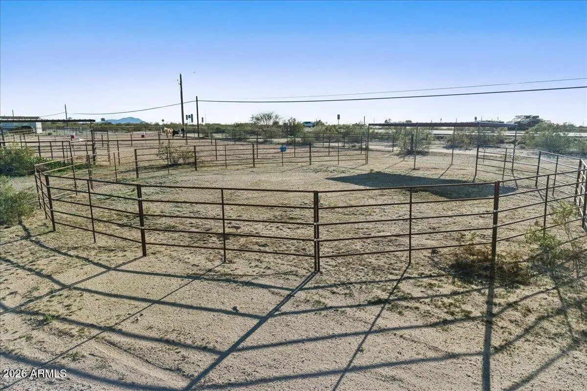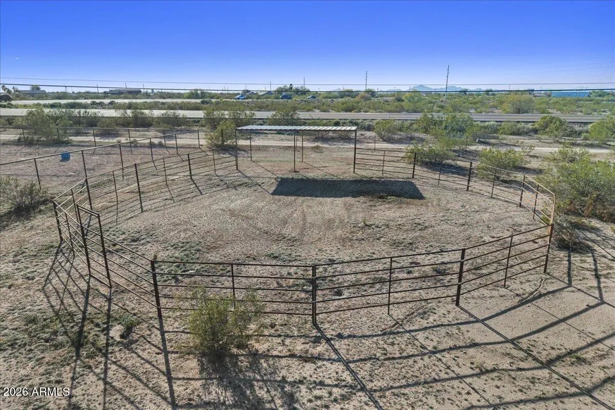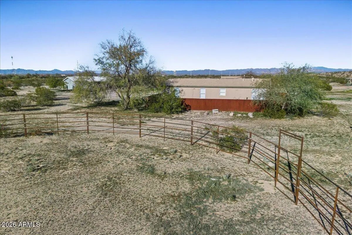 Located on 1.26 acres in Florence, AZ, s 1,344 square feet of comfortable living space, fresh interior paint with 3 bedrooms and 2 bathrooms. The open great room floor plan provides a functional layout for everyday living and entertaining. The kitchen features granite countertops and flows into the main living area, while tile & wood flooring throughout adds durability and easy maintenance. Zoned as horse property and includes an existing horse arena. The expansive lot offers plenty of space for animals, RVs, trailers, workshops, or future improvements. Enjoy privacy, open desert surroundings, and the freedom of rural living with convenient access to town amenities.