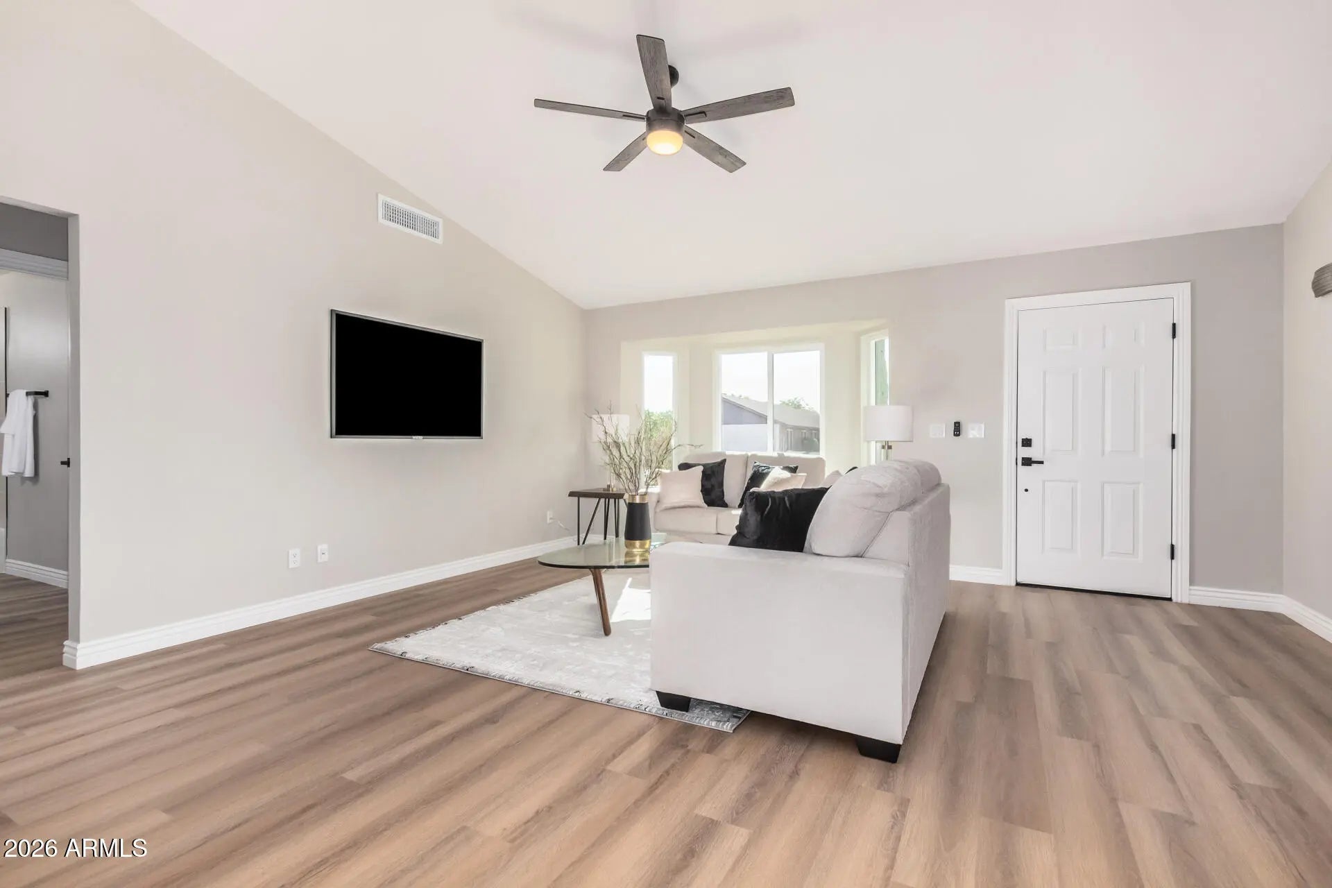 **$10,000 credit to buyers to help buy down rate w/ a full asking offer!** Fall in love the moment you arrive at this gorgeous home! Designed for effortless living with fresh paint throughout, vaulted ceilings, new wood-look flooring, new windows throughout, and a bright, welcoming living room set the tone. The kitchen shines with new stainless steel appliances, crisp white cabinetry, chic quartz counters, and a convenient breakfast bar perfect for everyday meals or casual entertaining. The main bedroom offers a relaxing escape with a private bathroom featuring dual sinks and a glass-enclosed shower. Outside, unwind under the covered patio and enjoy a spacious backyard with room for a pool or lively barbecues. Come start creating lasting memories in this dream home!