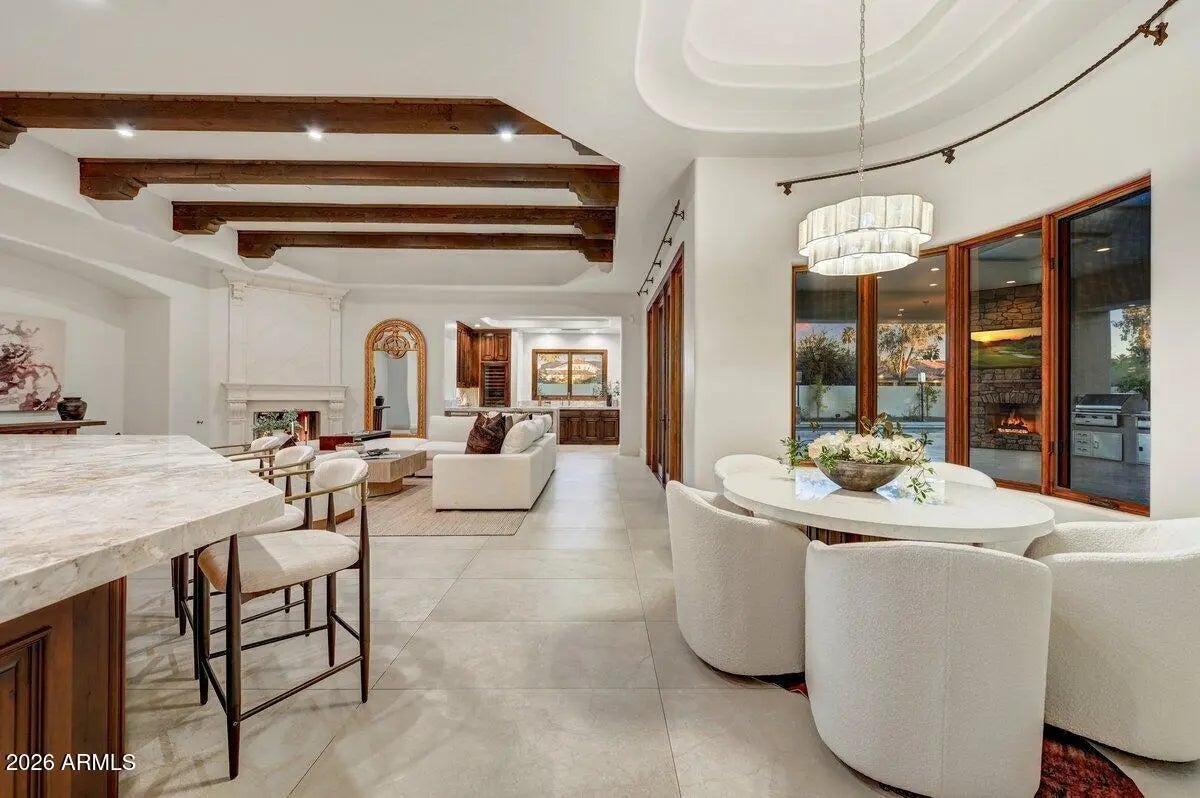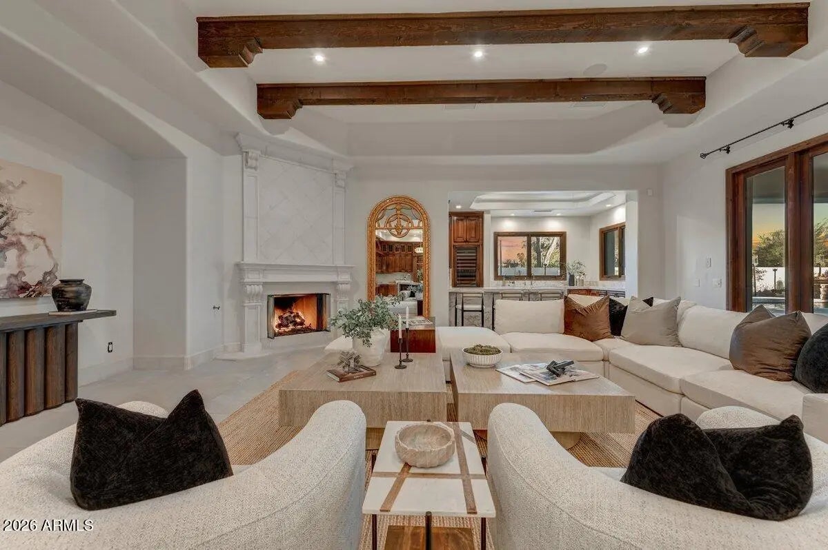 Privately positioned within the gated enclave of Rancho Santa Fe, this fully reimagined estate offers refined luxury on a premium .7-acre lot. One of only fourteen homes in the community, the residence sits quietly at the back of the neighborhood, delivering exceptional privacy and presence. A gated courtyard with fresh landscaping and limestone detailing creates a striking arrival. The home has been comprehensively refurbished, blending timeless architecture with modern sophistication. Grand formal living and dining spaces are accented by exquisite limestone detail and large-format Italian porcelain tile, opening seamlessly to the resort-style backyard. The heart of the home is the expansive great room, featuring a chef's kitchen with Michelangelo marble and Taj Mahal quartzite countertops, a new 60-inch Wolf range, Zephyr hood, and premium finishes throughout. The residence is thoughtfully designed across three private wings, offering ideal flow and privacy, including a luxurious primary suite, private office or wine tasting room, guest suite, three additional en-suite bedrooms, and a secondary family room. Designed for elevated indoor-outdoor living, the backyard features a grand covered patio with commercial-style pizza oven and built-in BBQ, a tiled diving pool and spa with all-new equipment and heater, artificial turf, extensive new pavers, integrated sound system, and a private sport court. Extensive upgrades include a new roof, all-new HVAC systems with multiple garage AC units, tankless water heaters, new plumbing fixtures, updated bathrooms, new flooring throughout, limestone enhancements, Savant lighting system, security cameras, fully hard-wired networking, updated interior and exterior speakers, and MyQ smart garage door openers. The four-car garage is fully finished with epoxy flooring and climate control. A rare opportunity to own a turn-key estate that lives like new construction within one of Scottsdale's most coveted gated communities.
