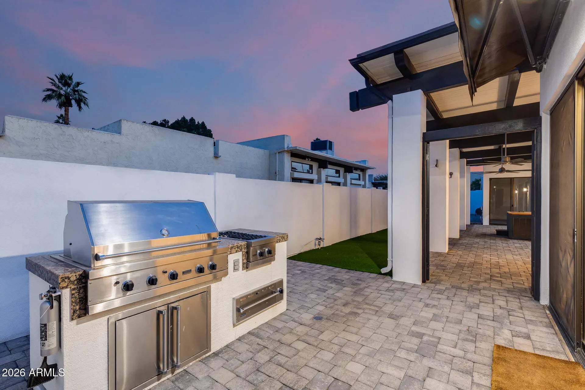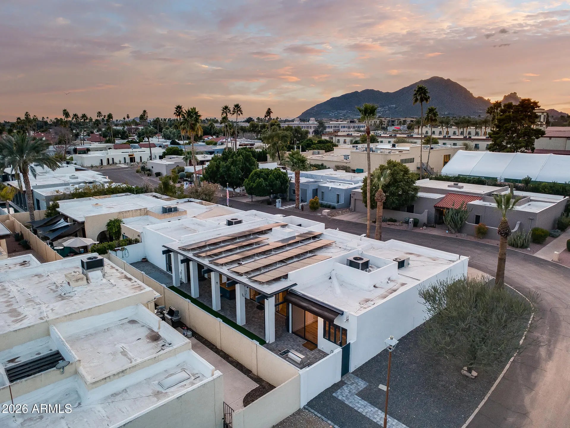 Live the ultimate resort lifestyle in this beautifully updated 3-bedroom, 3-bath home offering 2,892 sq ft of spacious living. Located in a truly one-of-a-kind, high-end area—tucked behind the Hilton Resort on a private corner lot with exceptional privacy. Enjoy owned solar, low property taxes, and thoughtful upgrades throughout. The backyard has been transformed for entertaining, featuring turf, pavers, and a Viking outdoor grill, complemented by a large shaded patio—perfect for hosting or relaxing in style. Inside, you'll find soaring vaulted beam ceilings, a cozy family room fireplace, and a chef's kitchen with granite countertops, a kitchen island, and a Viking range. The home offers both a formal dining area and an eat-in kitchen, while the split primary suite includes a walk-in closet and full bath for added privacy. Just steps from AJ's, Trader Joe's, the new Ritz-Carlton, and upscale restaurant row, residents also enjoy exclusive resort amenities - fitness center, business center, pools and spas, plus dining and resort discounts. Luxury, space, and privacy - this is resort living at its finest.