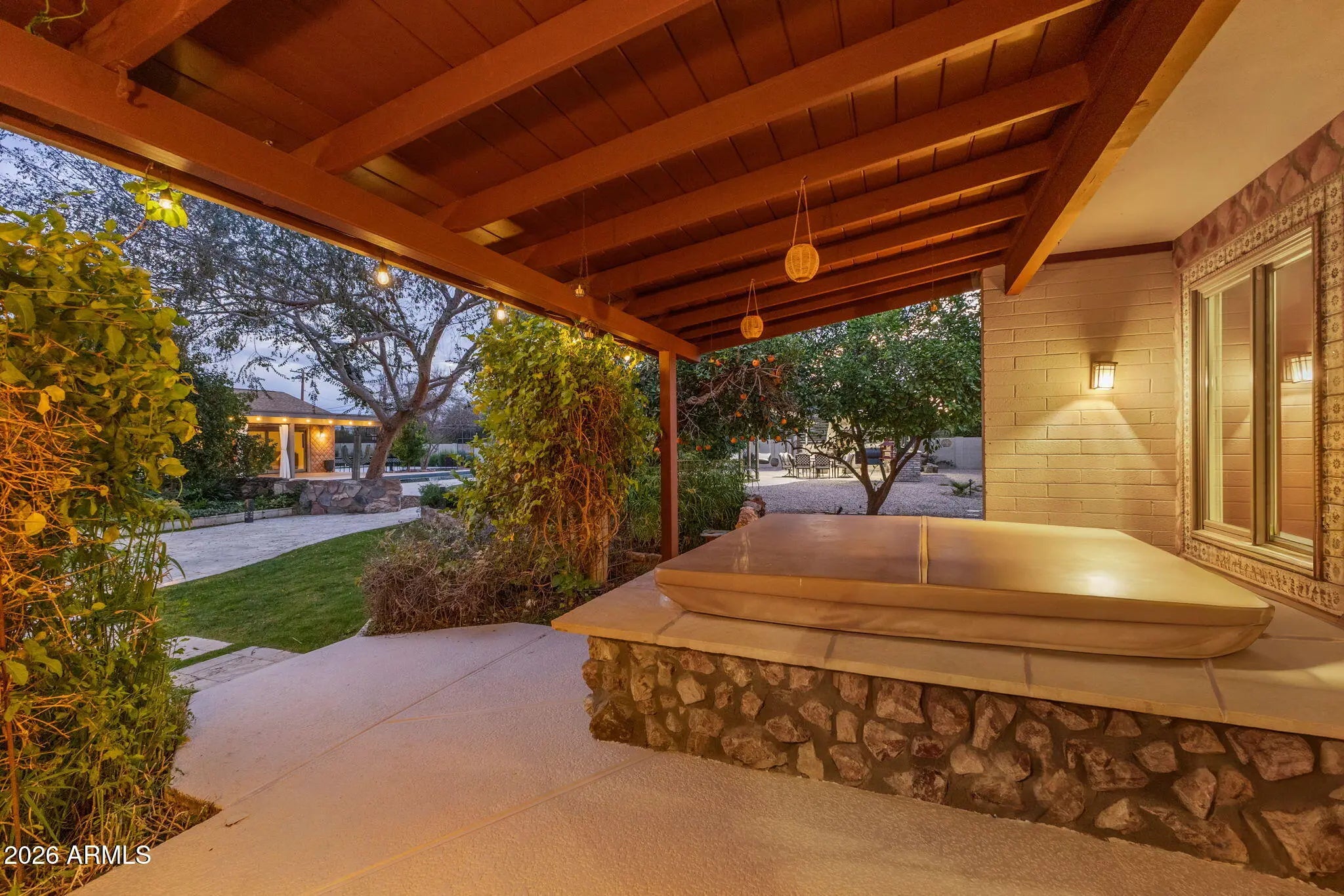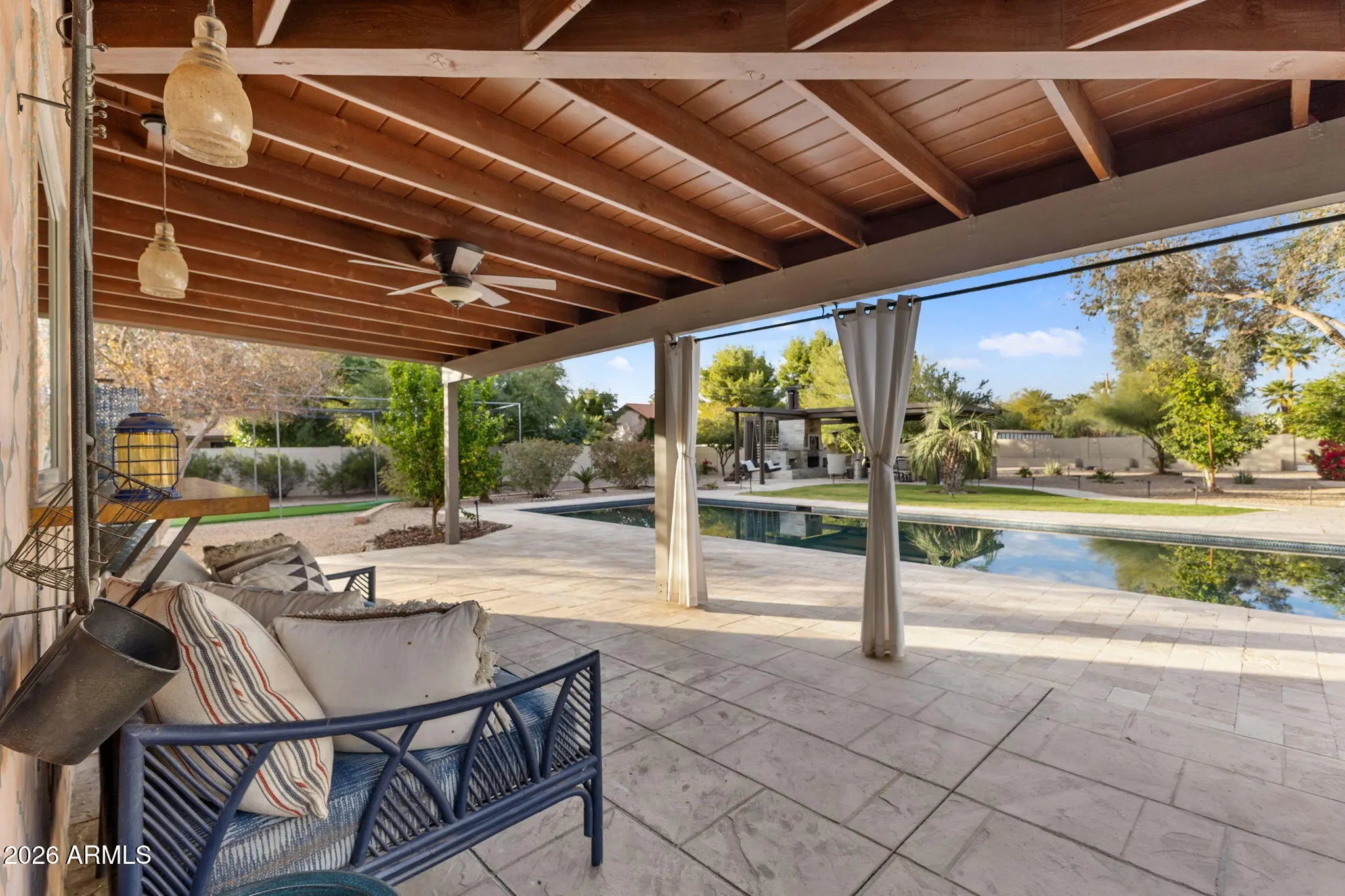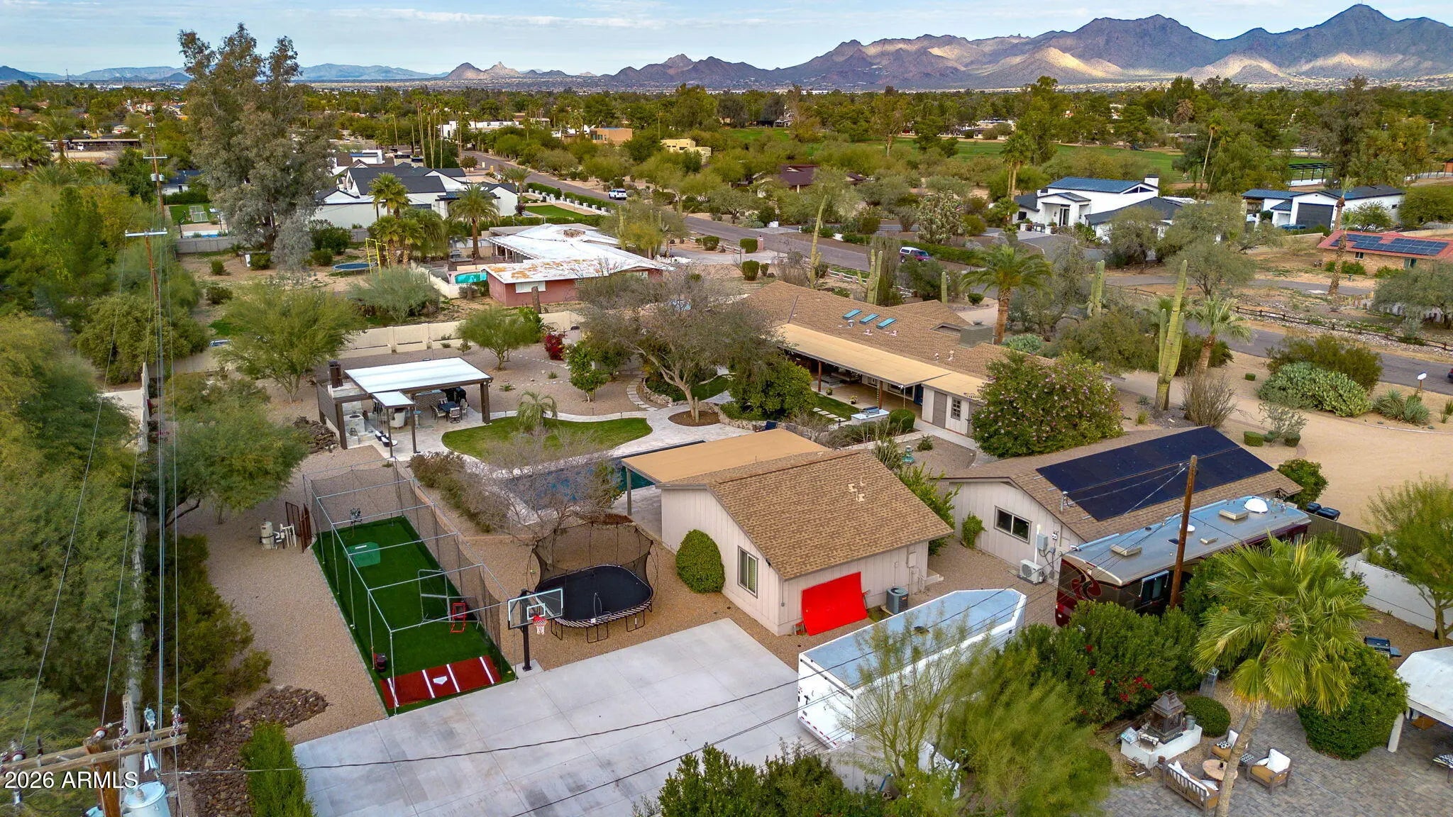 On a generous acre+ lot in the Cactus Corridor, this stunning rustic estate delivers privacy, functionality, and undeniable charm. With a fully equipped casita, expansive outdoor amenities, 20kw solar with battery back- up, and an additional RV/Toy garage space, this home offers everything needed for elevated Arizona living. The main residence offers approximately 2,973 square feet with 3 bedrooms and 2.5 bathrooms, complemented by a 682 square foot guest house built in 2016 with kitchen, living area, bedroom, and bathroom. Ideal for guests, extended family, or a private office. The kitchen features a 48-inch Thermador gas range with dual ovens, pot filler, veggie sink, wine fridge, and open flow to the family room. The backyard is designed for outdoor living with a pool, spa, sauna, covered patios, built-in barbecue, fire pit, wood fired pizza oven, wood fired wok, raised garden beds, and mature citrus and fruit trees. The primary suite includes a fireplace, sitting area, in-suite laundry, custom shoe closets, dual vanities, soaking tub, sauna, outdoor shower, and private patio access.