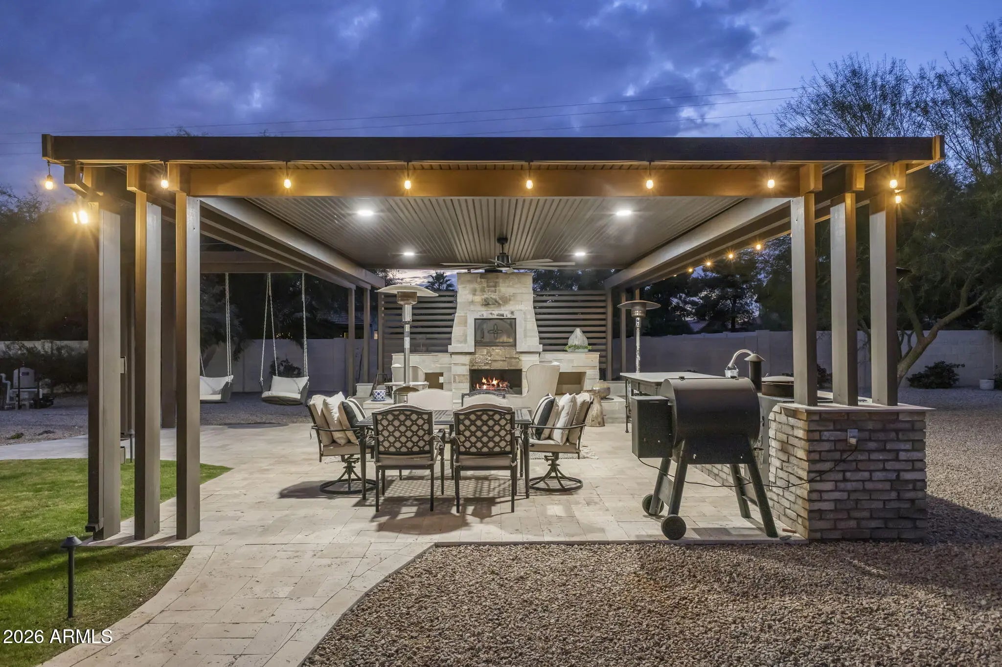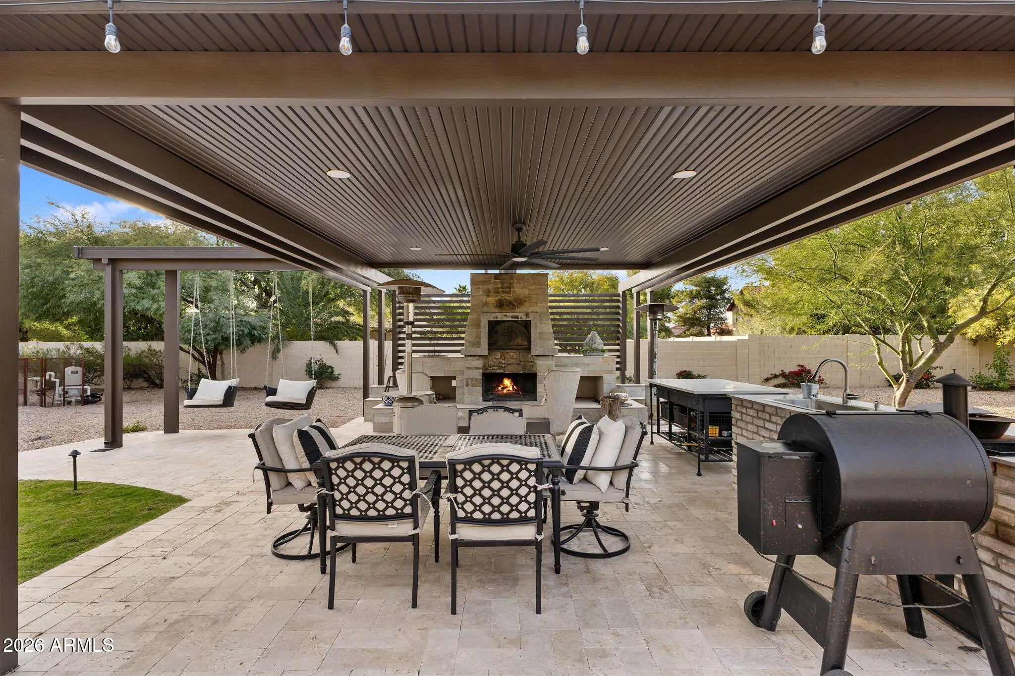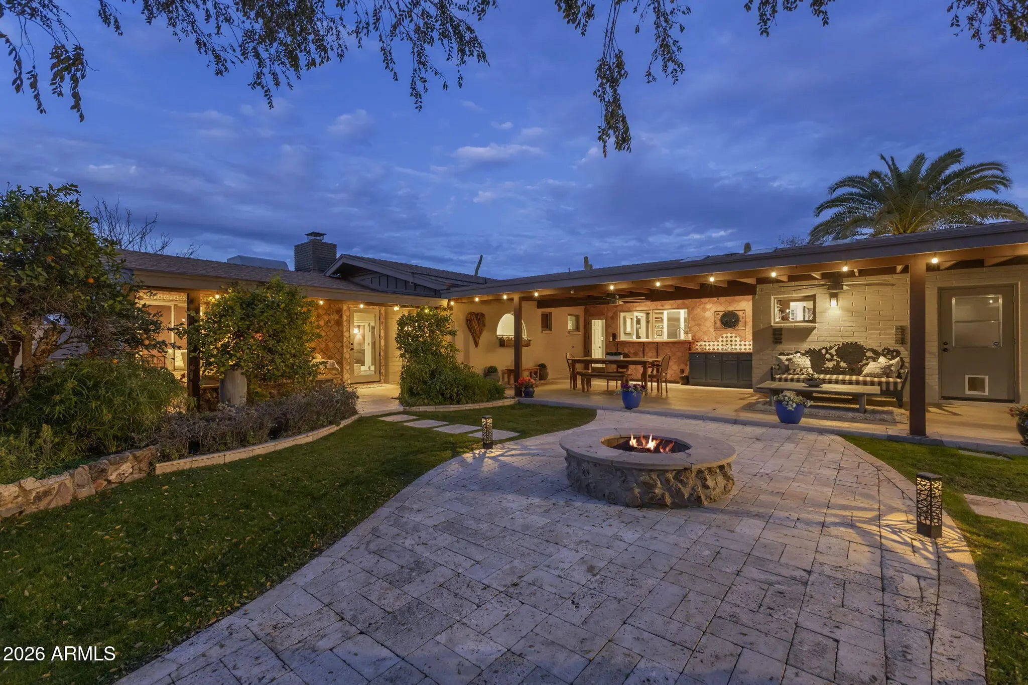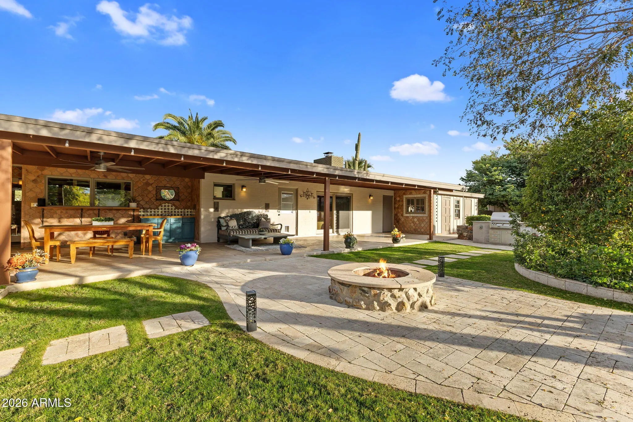 On a generous acre+ lot in the Cactus Corridor, this stunning rustic estate delivers privacy, functionality, and undeniable charm. With a fully equipped casita, expansive outdoor amenities, 20kw solar with battery back- up, and an additional RV/Toy garage space, this home offers everything needed for elevated Arizona living. The main residence offers approximately 2,973 square feet with 3 bedrooms and 2.5 bathrooms, complemented by a 682 square foot guest house built in 2016 with kitchen, living area, bedroom, and bathroom. Ideal for guests, extended family, or a private office. The kitchen features a 48-inch Thermador gas range with dual ovens, pot filler, veggie sink, wine fridge, and open flow to the family room. The backyard is designed for outdoor living with a pool, spa, sauna, covered patios, built-in barbecue, fire pit, wood fired pizza oven, wood fired wok, raised garden beds, and mature citrus and fruit trees. The primary suite includes a fireplace, sitting area, in-suite laundry, custom shoe closets, dual vanities, soaking tub, sauna, outdoor shower, and private patio access.
