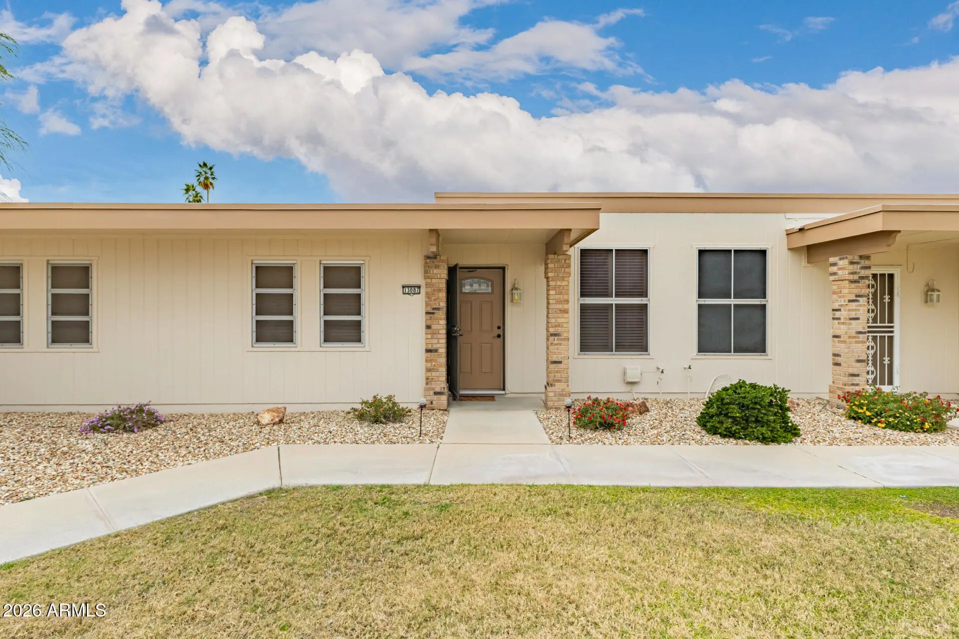 ASSUMABLE LOAN - Welcome home to this inviting 3-bedroom, 2-bath Sun City end-unit offering comfort, style, and easy living. The upgraded kitchen features a spacious wall pantry, while laundry is conveniently located inside the home. LVT and tile flooring flow throughout with no carpet, providing a low-maintenance lifestyle. Three skylights fill the home with natural light, creating a bright and airy feel. As an end unit, this property enjoys added privacy and extra windows. Step outside to the covered patio with a sleek epoxy floor, enhanced by colorful plants that add warmth and a welcoming atmosphere. A great property with thoughtful upgrades throughout. Buy today and start enjoying the Sun City lifestyle!