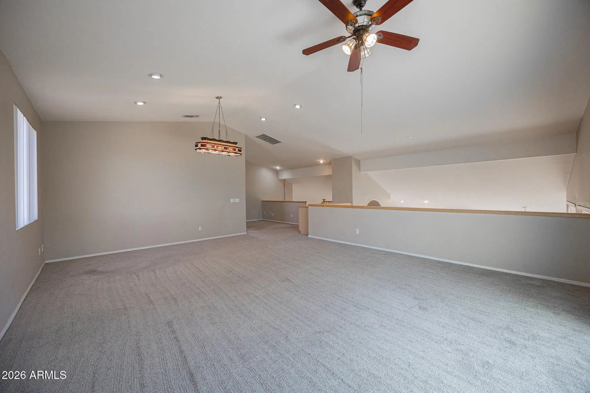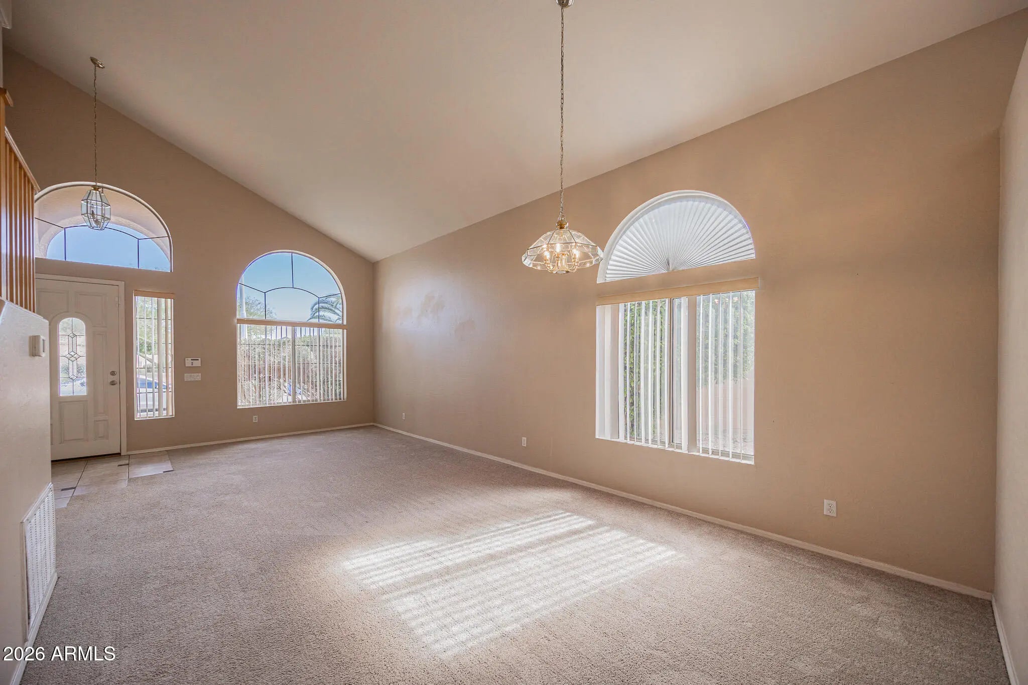 Indulge in the elegance of this absolutely stunning split-level Chandler 3/2.5 home. Marvel at the massive vaulted ceilings and updated paint that enhance the spaciousness of the living areas. Luxuriate in the plushness of the like-new carpeting underfoot as you explore the expansive kitchen, complete with an oversized island and seamless transition flow into the living room. Find versatility in the den/gaming area, perfect for entertaining or relaxation. Retreat to the huge split master bedroom with its enclosed dual sink bathroom and oversized walk-in closet. Upstairs, discover the oversized loft with balcony access, offering breathtaking mountain views. Additional amenities include an oversized lot, 2-car garage, washer and dryer hookups, and a covered patio.