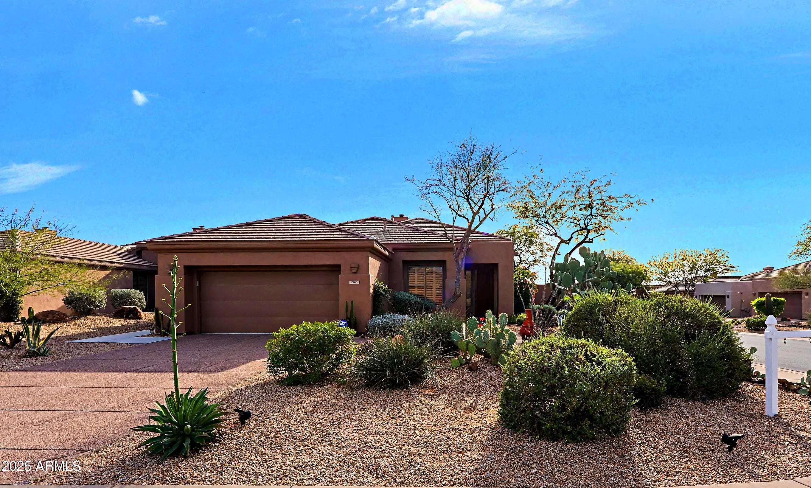 Crista Model home offers 2 bedrooms, 2 bathrooms, plus den. Fully turn-key, it comes complete with all furnishings and décor. Situated on a desirable corner lot, the backyard features coveted southern exposure, in ground spa, built in BBQ grill area, outdoor perfect for enjoying Arizona's abundant sunshine. Granite counters in kitchen, refinished and updated cabinets throughout the home. Stainless steel appliances. Split bedrooms with new engineered wood floor throughout. 3rd room den, office or bedroom for added guests. Beautifully landscaped both front and back with private in-ground spa for your relaxation. Recent enhancements include outdoor kitchen, garage update with cabinets & epoxy floors, extensive irrigation and concrete walk ways around the home, exterior paint, updated CLICK with cabinets & epoxy floors, extensive irrigation and concrete walk ways around the home, exterior paint, updated roof underlayment and HVAC. Additional features include a garage with built-in cabinets and a dedicated workbench, providing convenient storage & utility. Energy efficiency is a standout feature, with fully owned solar panels keeping the utility bill low. Homeowners enjoy access to Terravita' s amenities including the restaurant and events. Terravita has won many awards from Ranking Arizona for Best Master Planned Community & Golf Club.